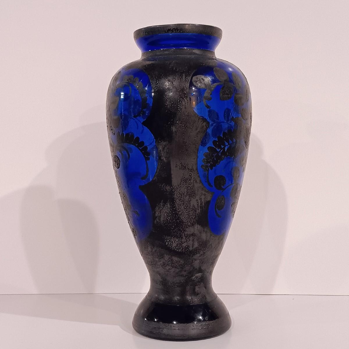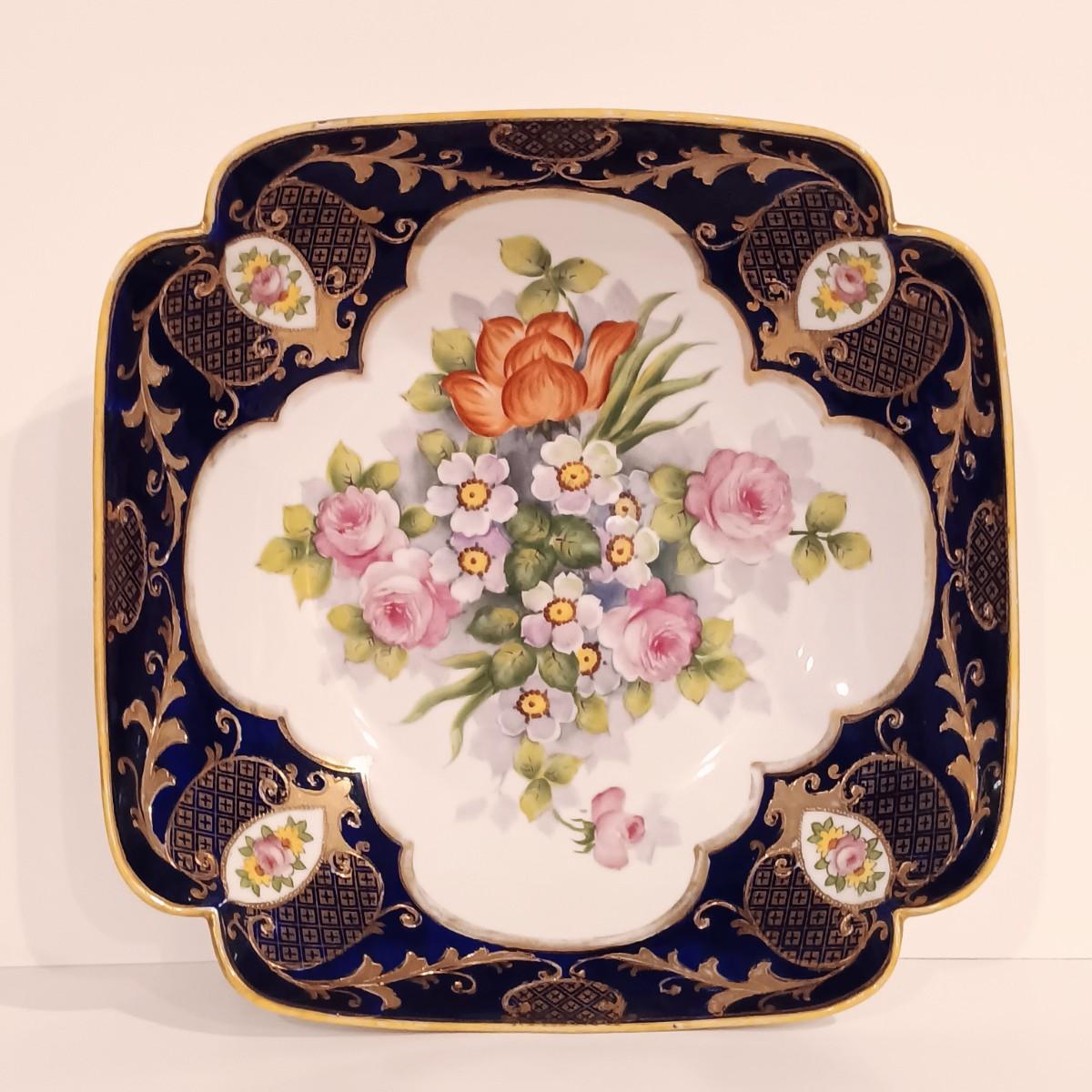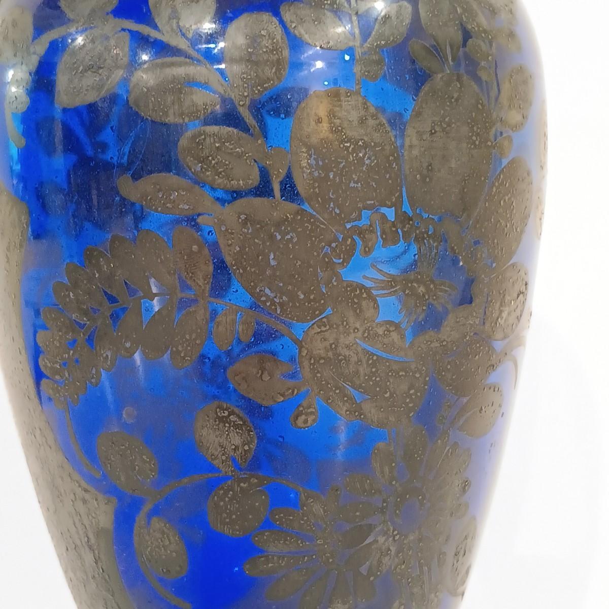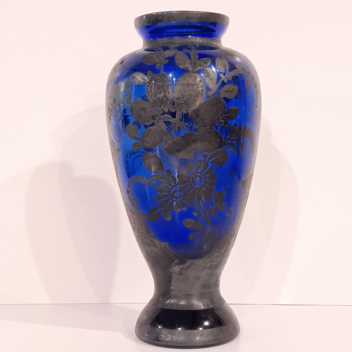 LOT 115; Cobalt Blue Vase with Silver-Tone Overlay & Noritake Cobalt Handpainted Plate
