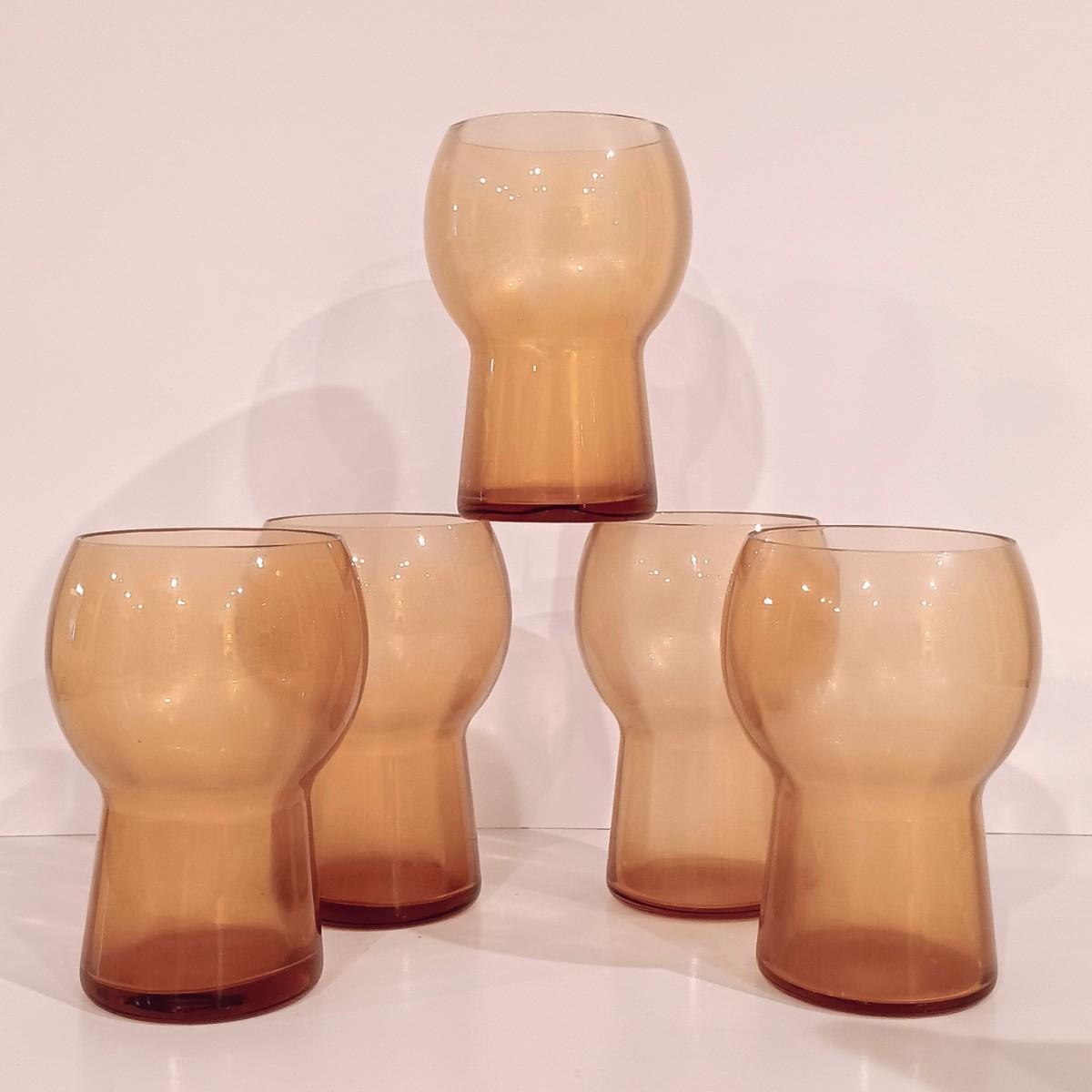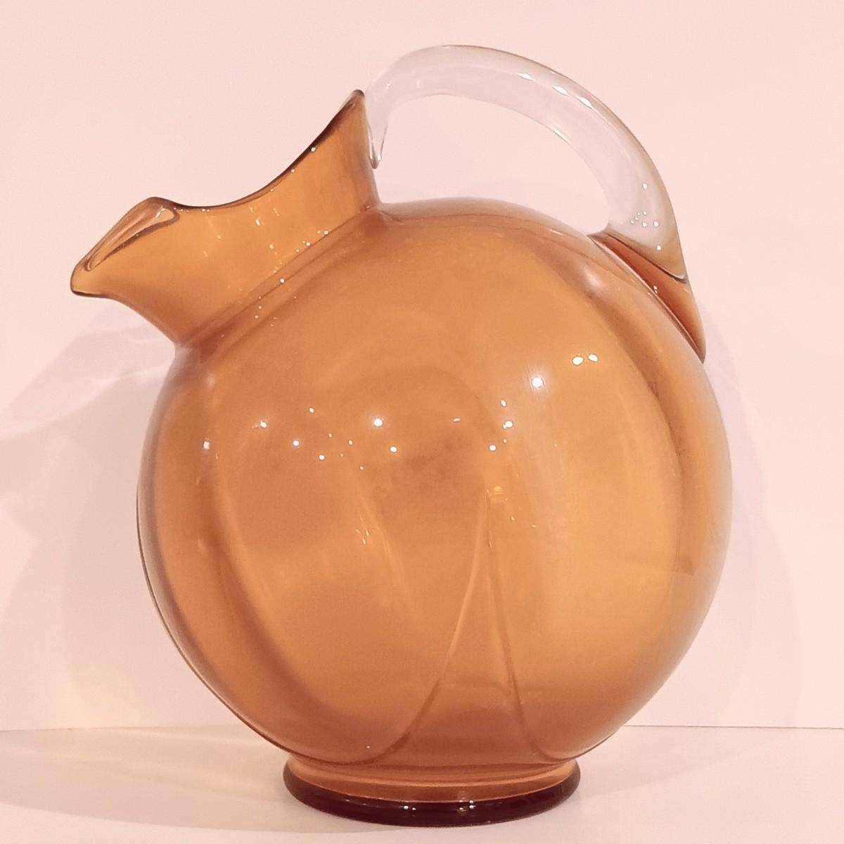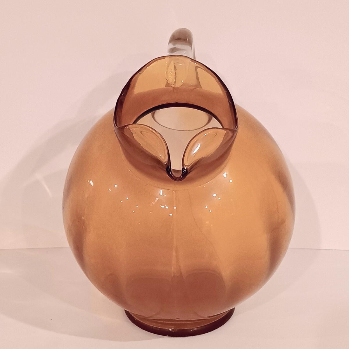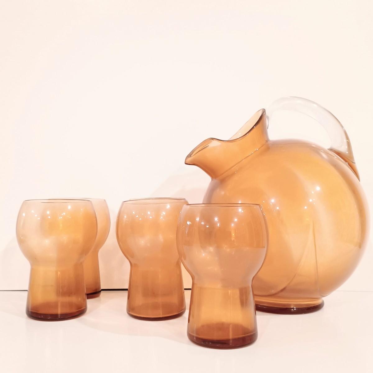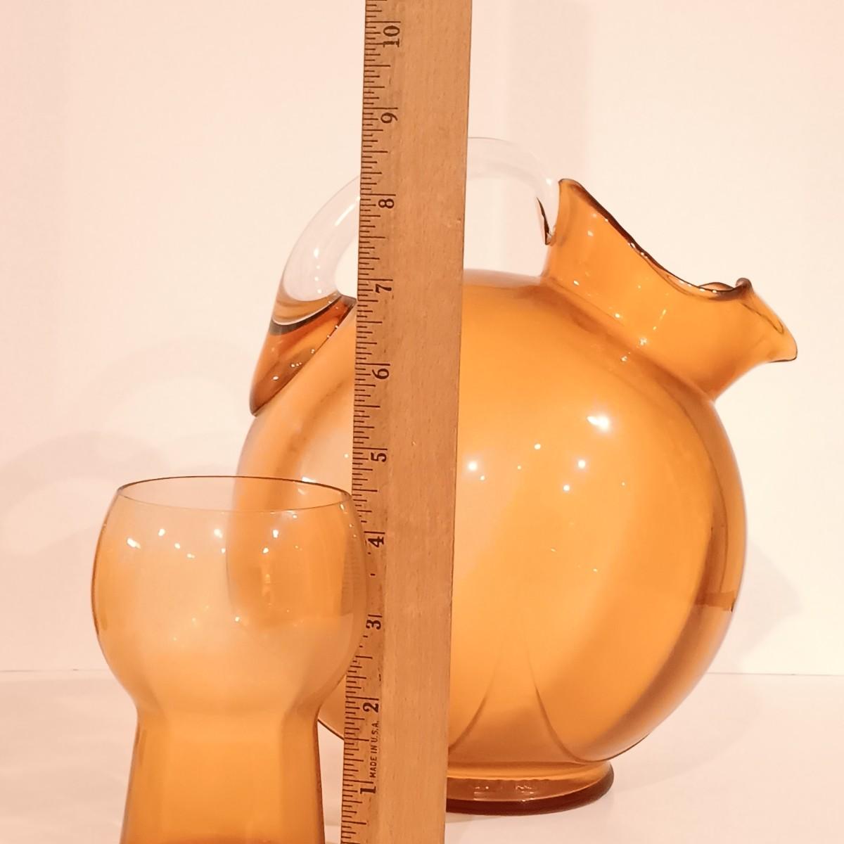 LOT 119: Vintage Cambridge-Style Amber Gold Glass Pitcher & Tumblers