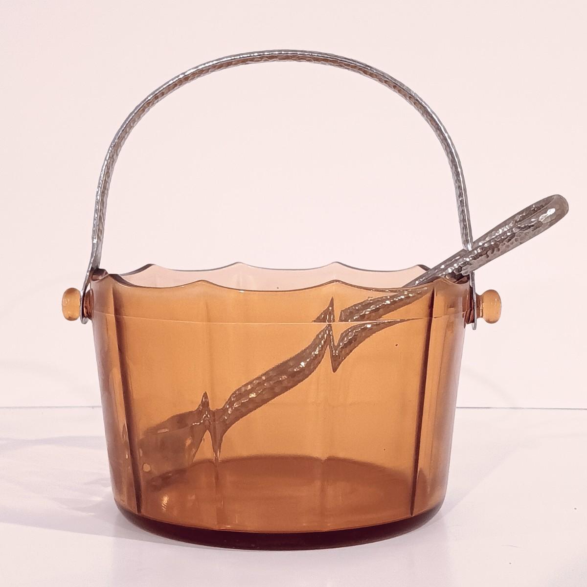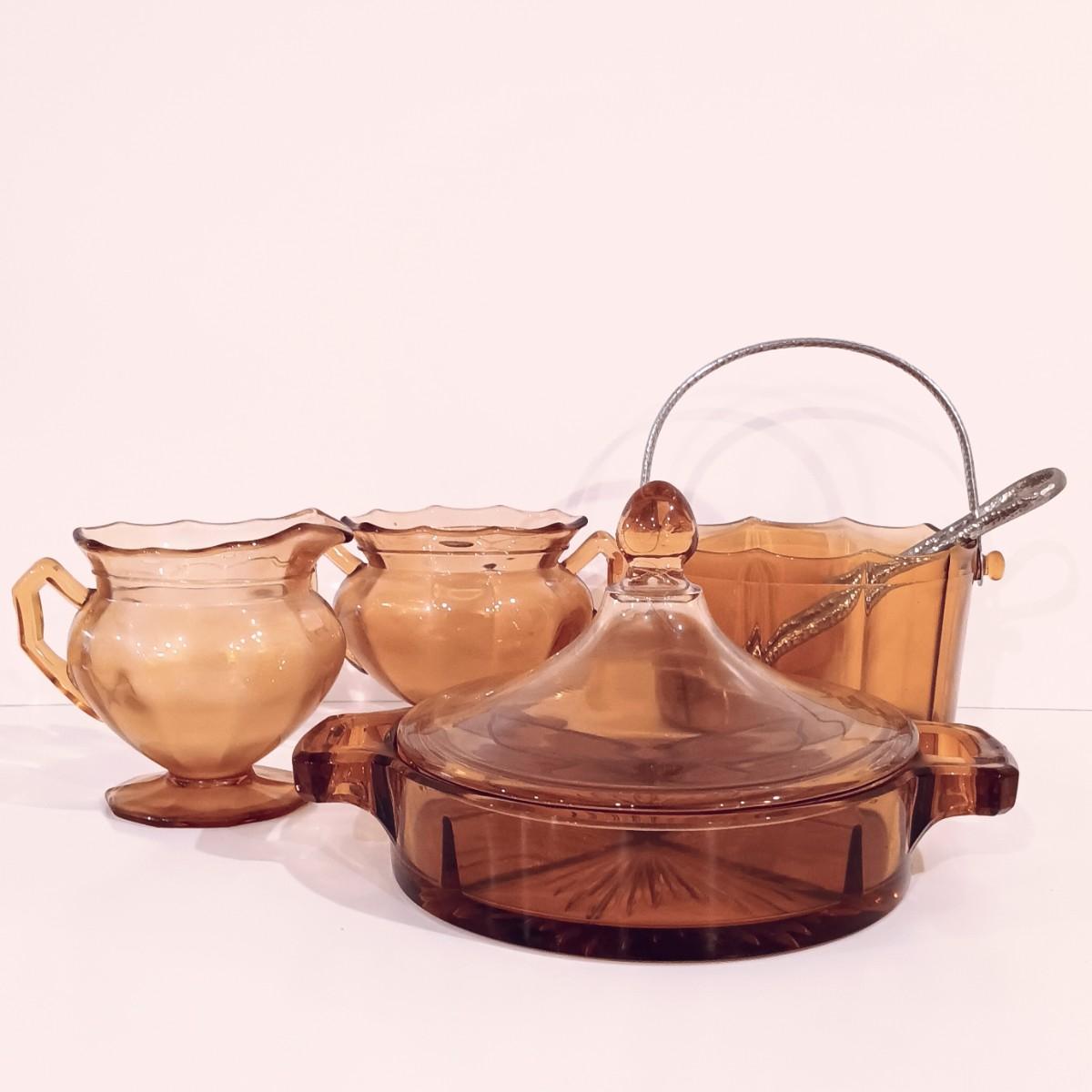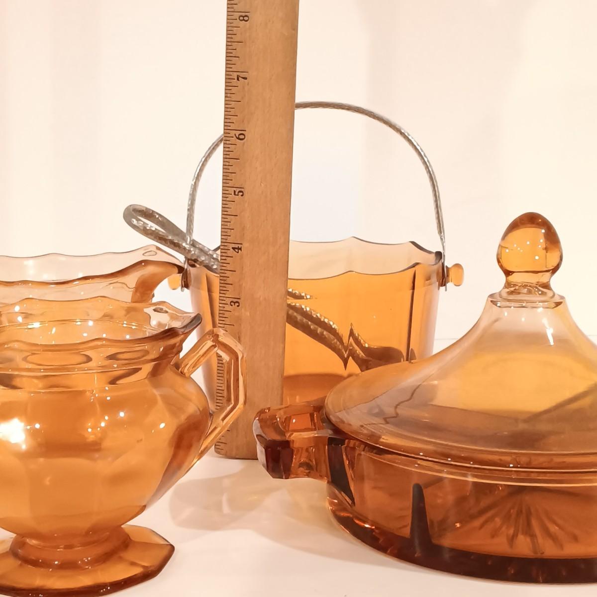 LOT 120: Vintage Cambridge-Style Amber Gold Ice Bucket, Sugar Bowl, Creamer & More