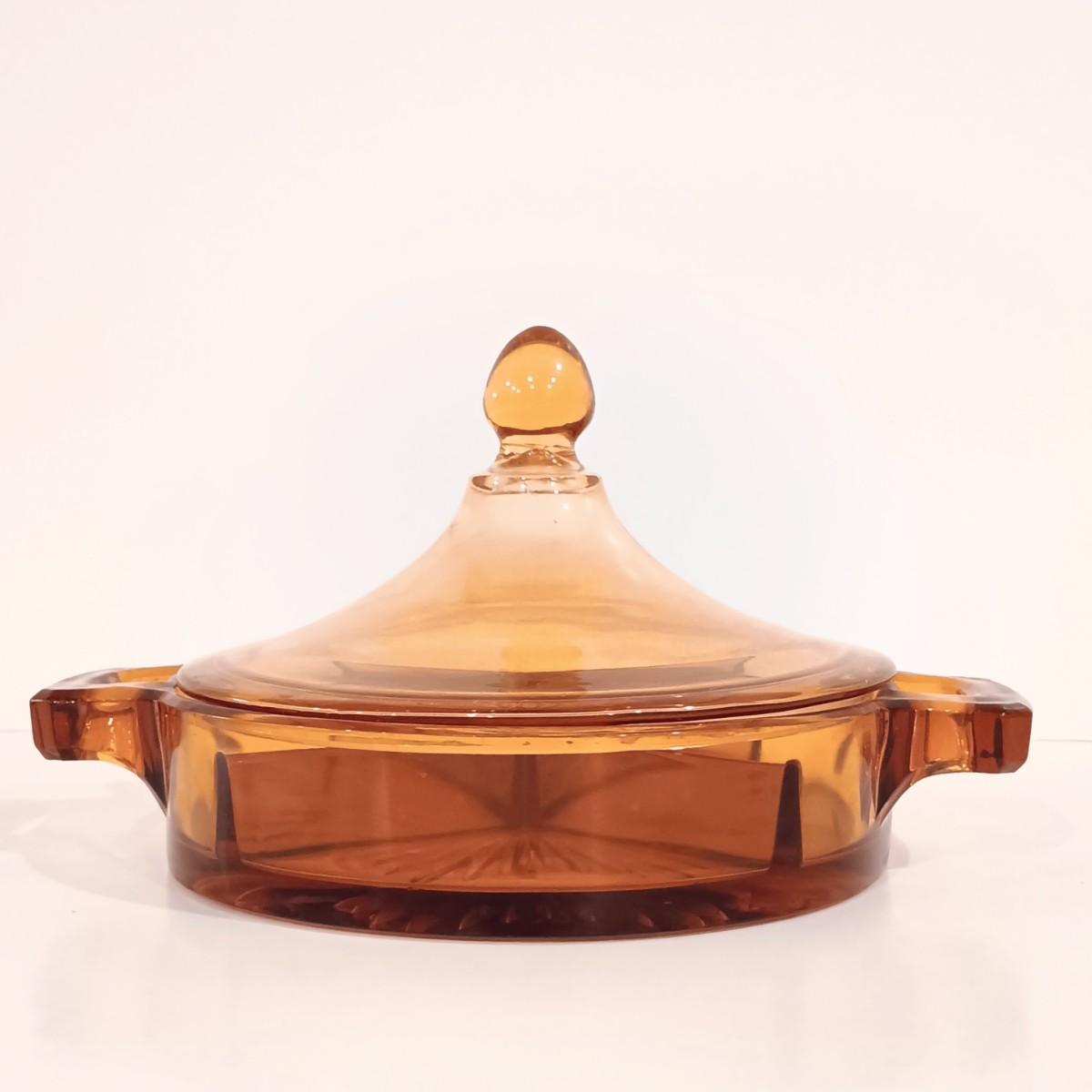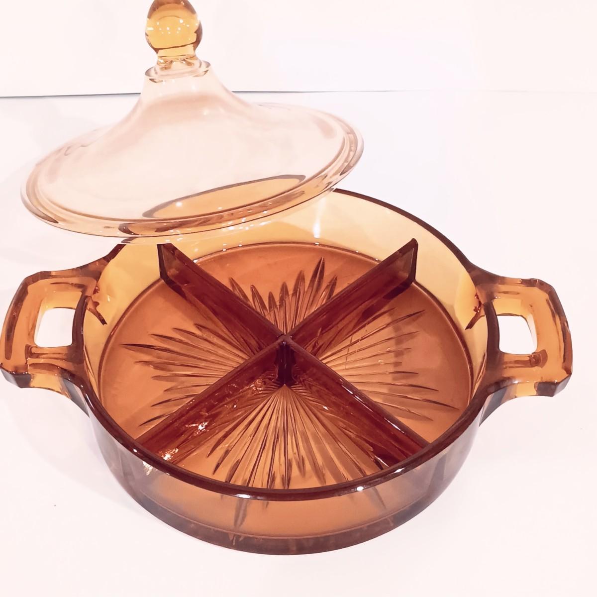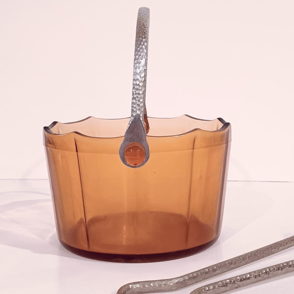 LOT 120: Vintage Cambridge-Style Amber Gold Ice Bucket, Sugar Bowl, Creamer & More