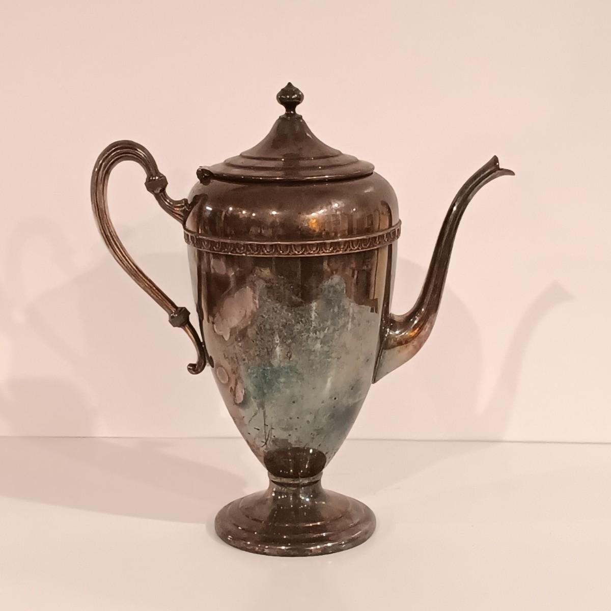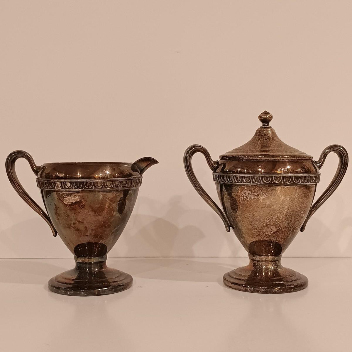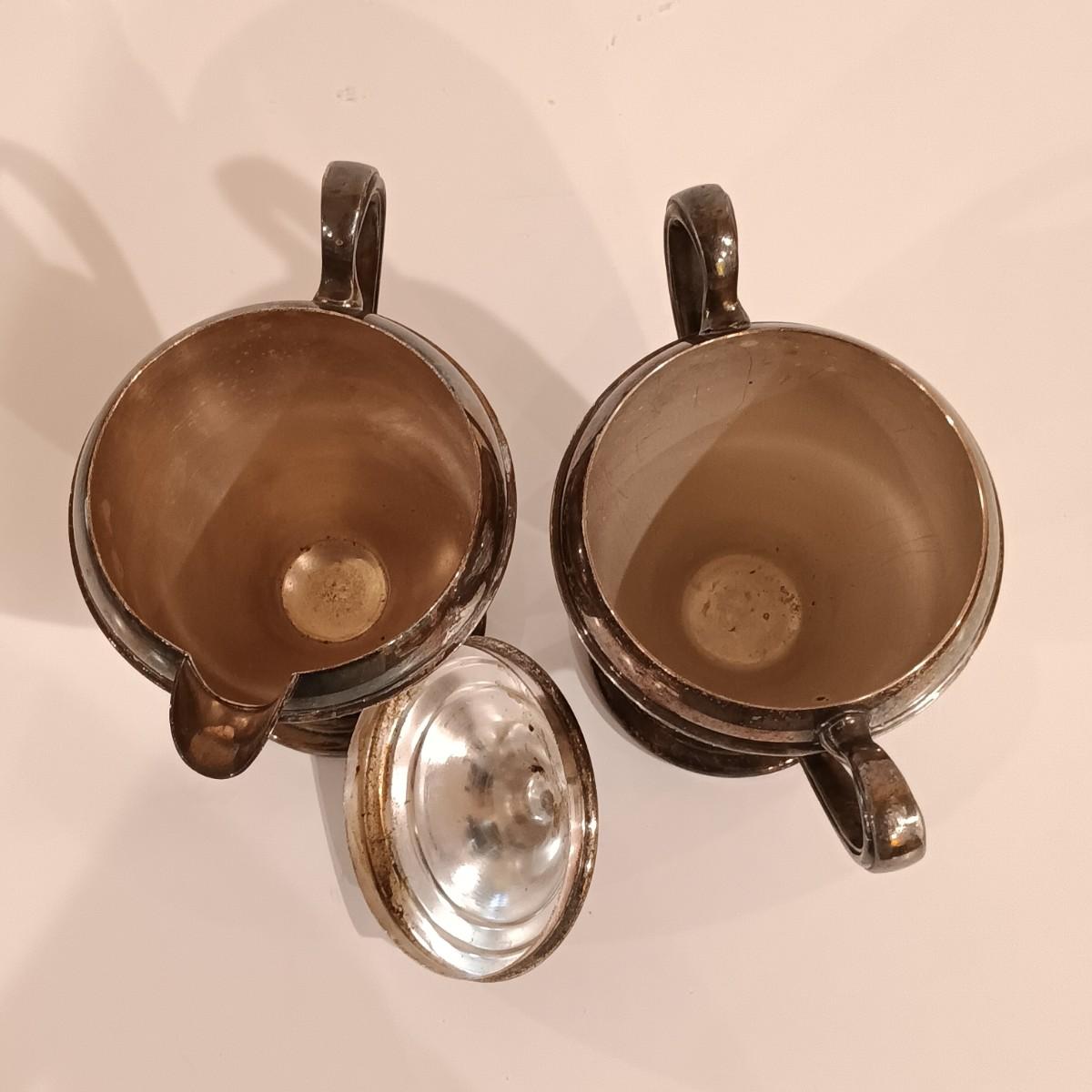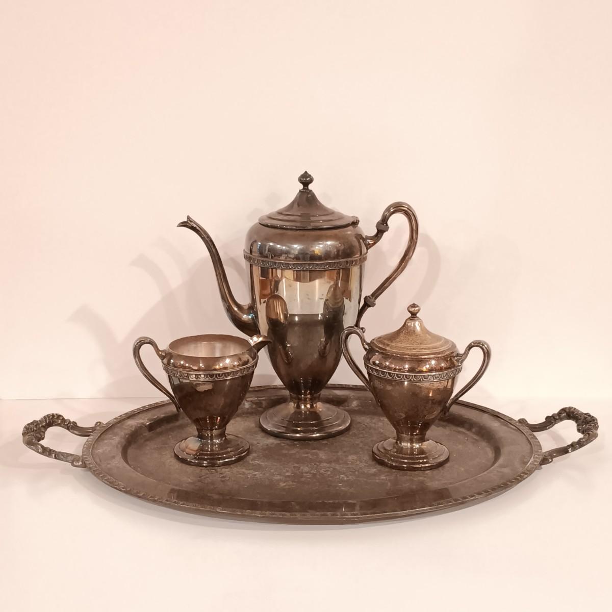 LOT 128: Silver on Copper Teapot, Creamer, Sugar Bowl & Tea Tray