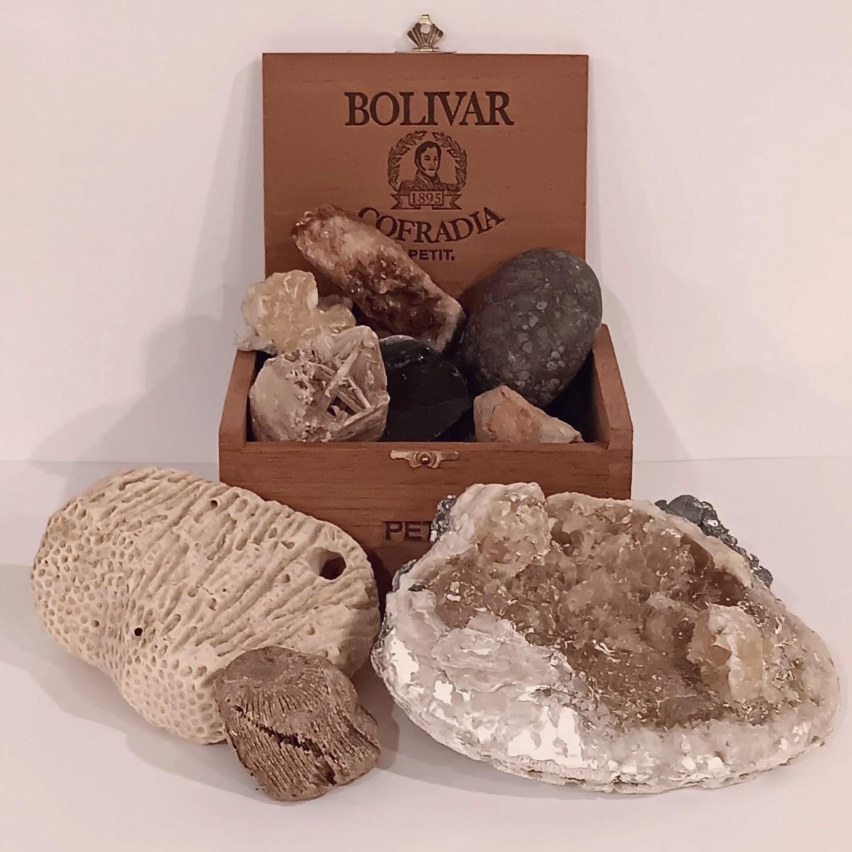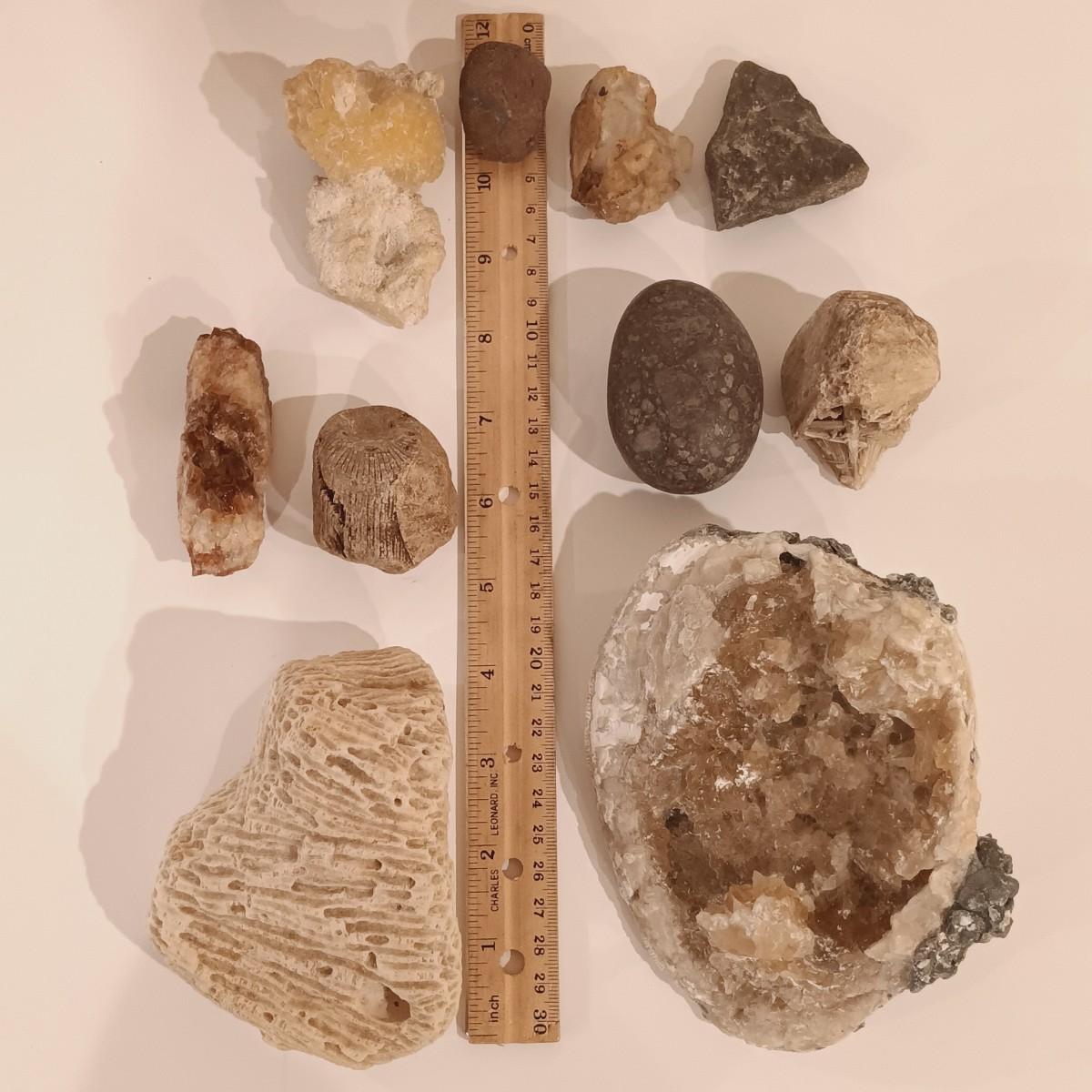 LOT 133: Calcite Crystals in a Fossilized Clamshell with Fossilized Coral & More