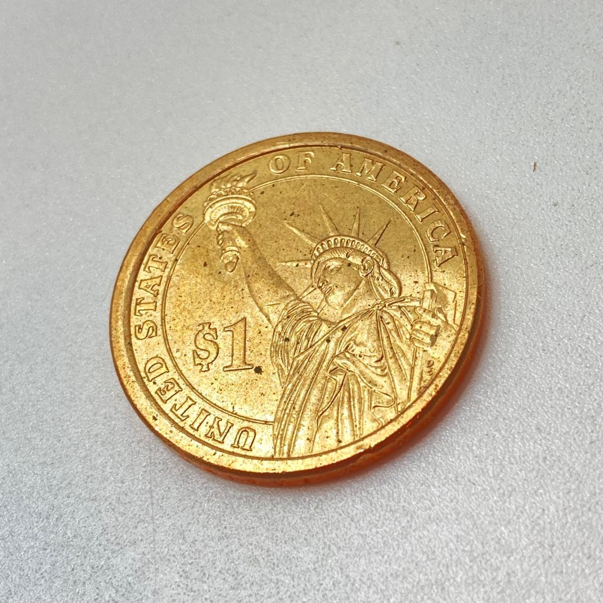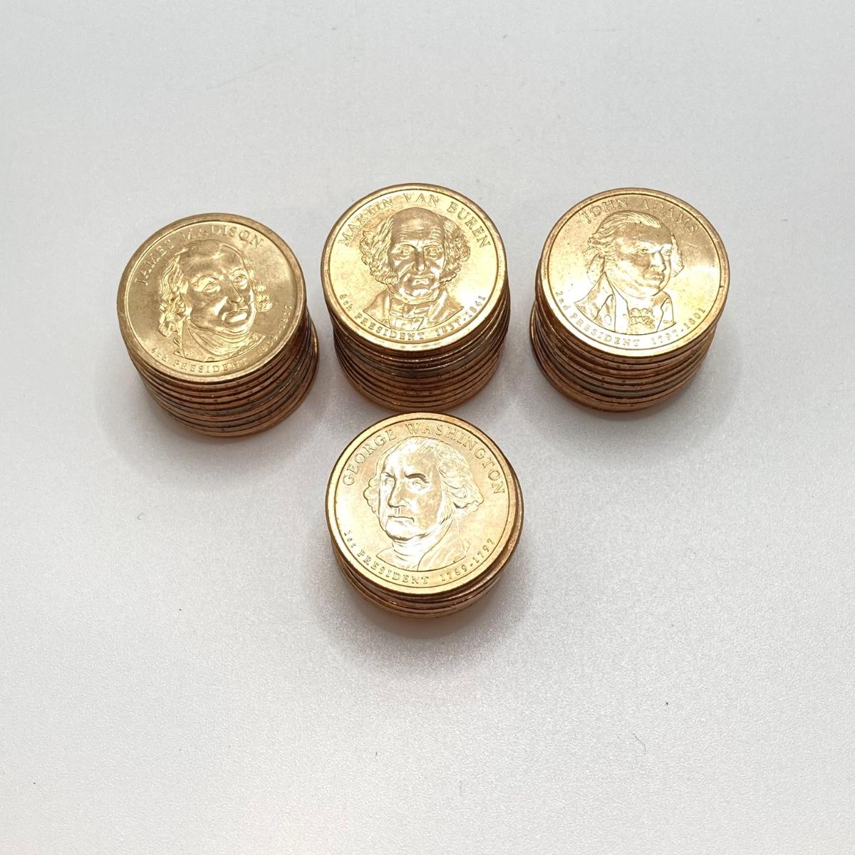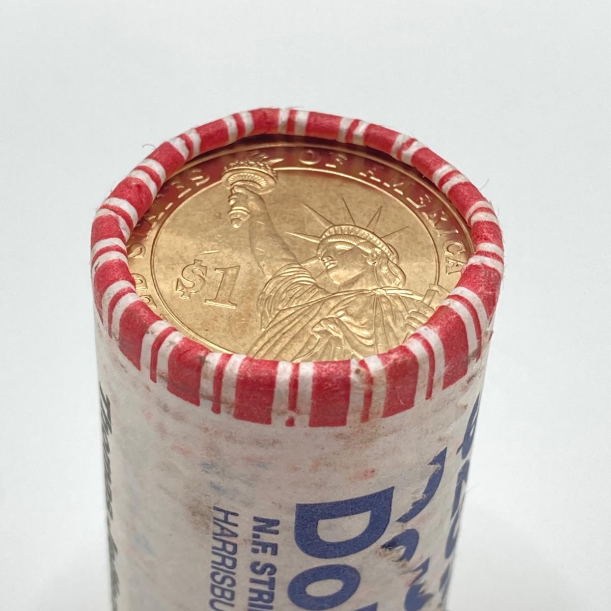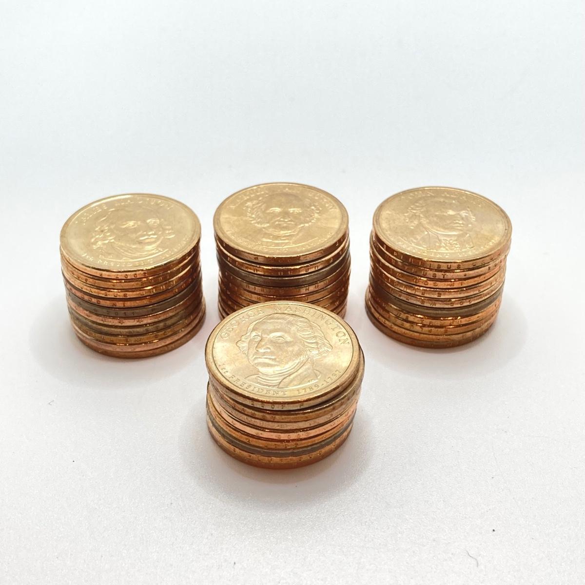 LOT 136: Collection of US President One Dollar $1.00 Loose Coins with $25 Uncirculated Roll of Thomas Jefferson Dollars in Cigar Box