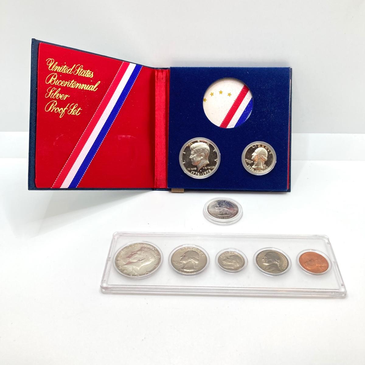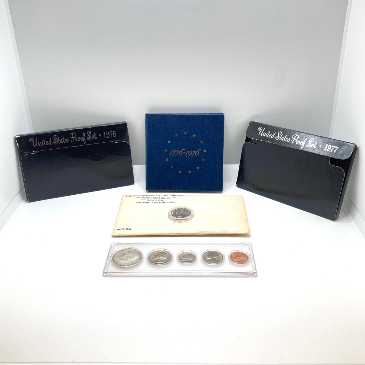 LOT 137: Coin Collection - 1965 Set, Bicentennial Silver Proof Kennedy Half Dollar / Quarter, 1972 Treasury Set, 1975 Proof Set, 1977 Proof Set and State Quarter