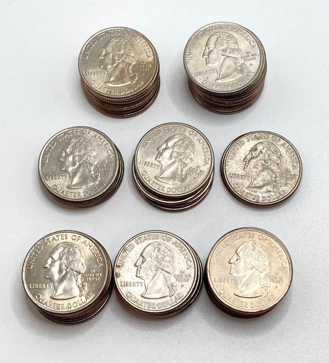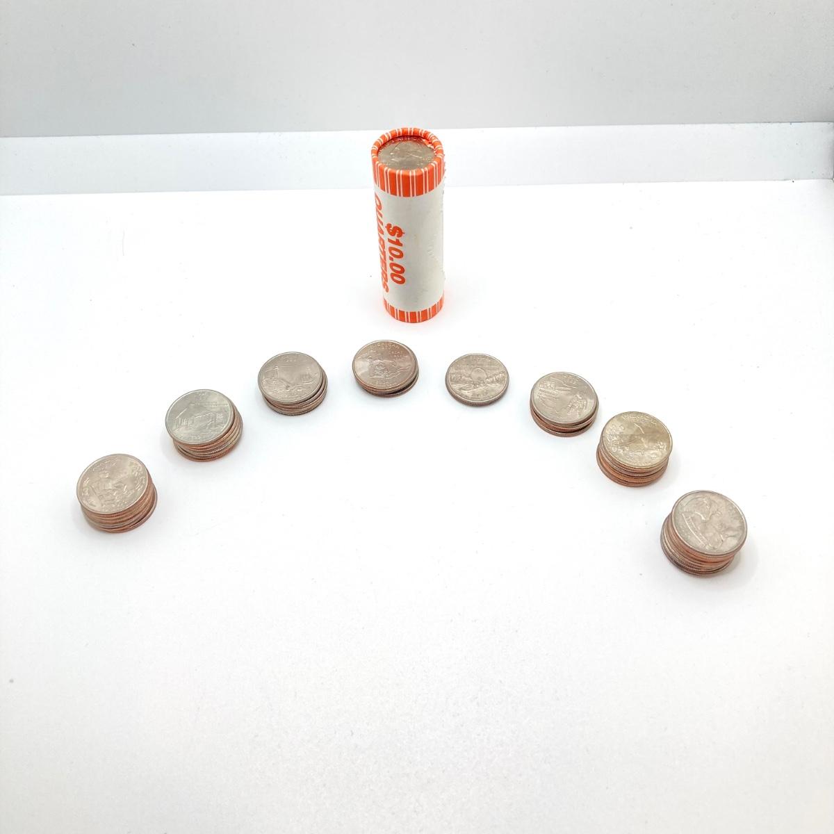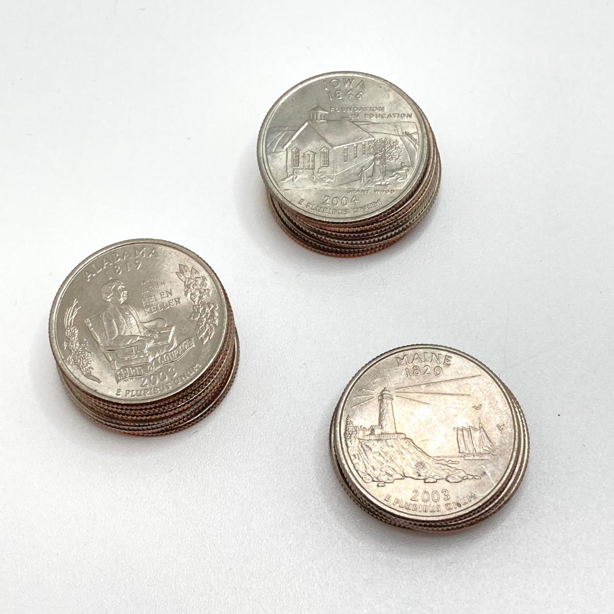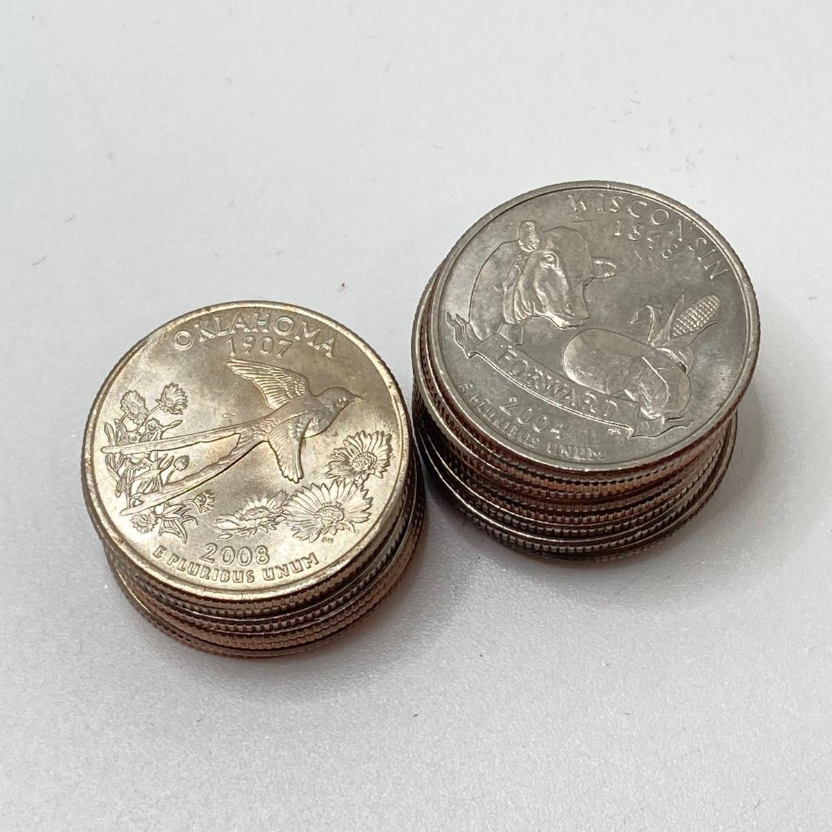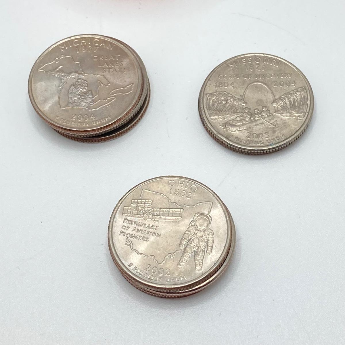LOT 138: US State Quarter Collection - Alabama, Iowa, Maine, Michigan, Missouri, Ohio, Oklahoma, Wisconsin and Roll of Forty ($10)