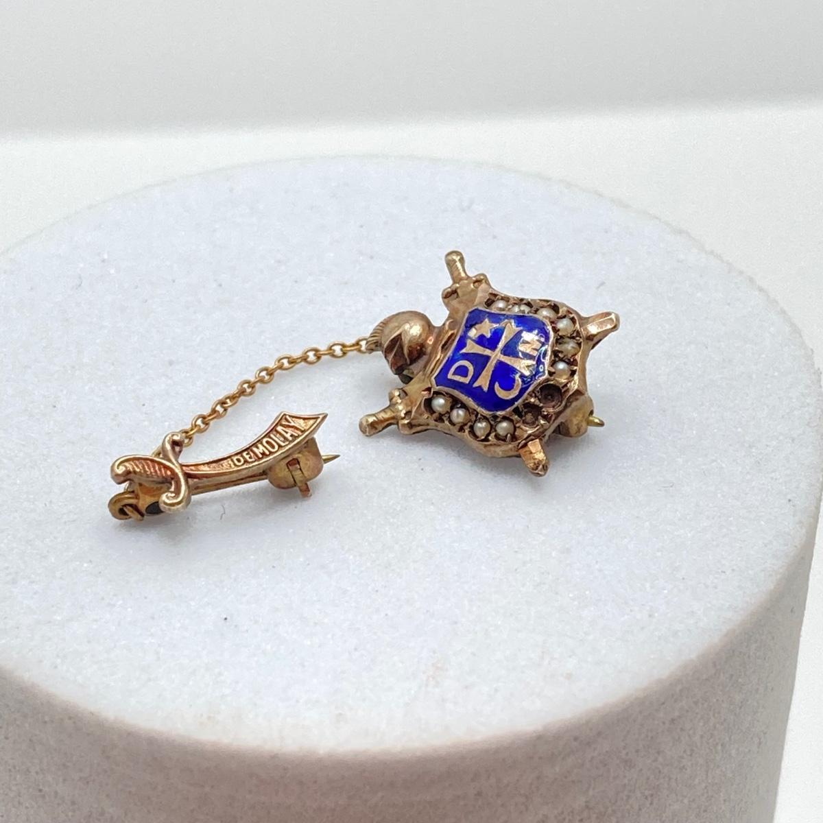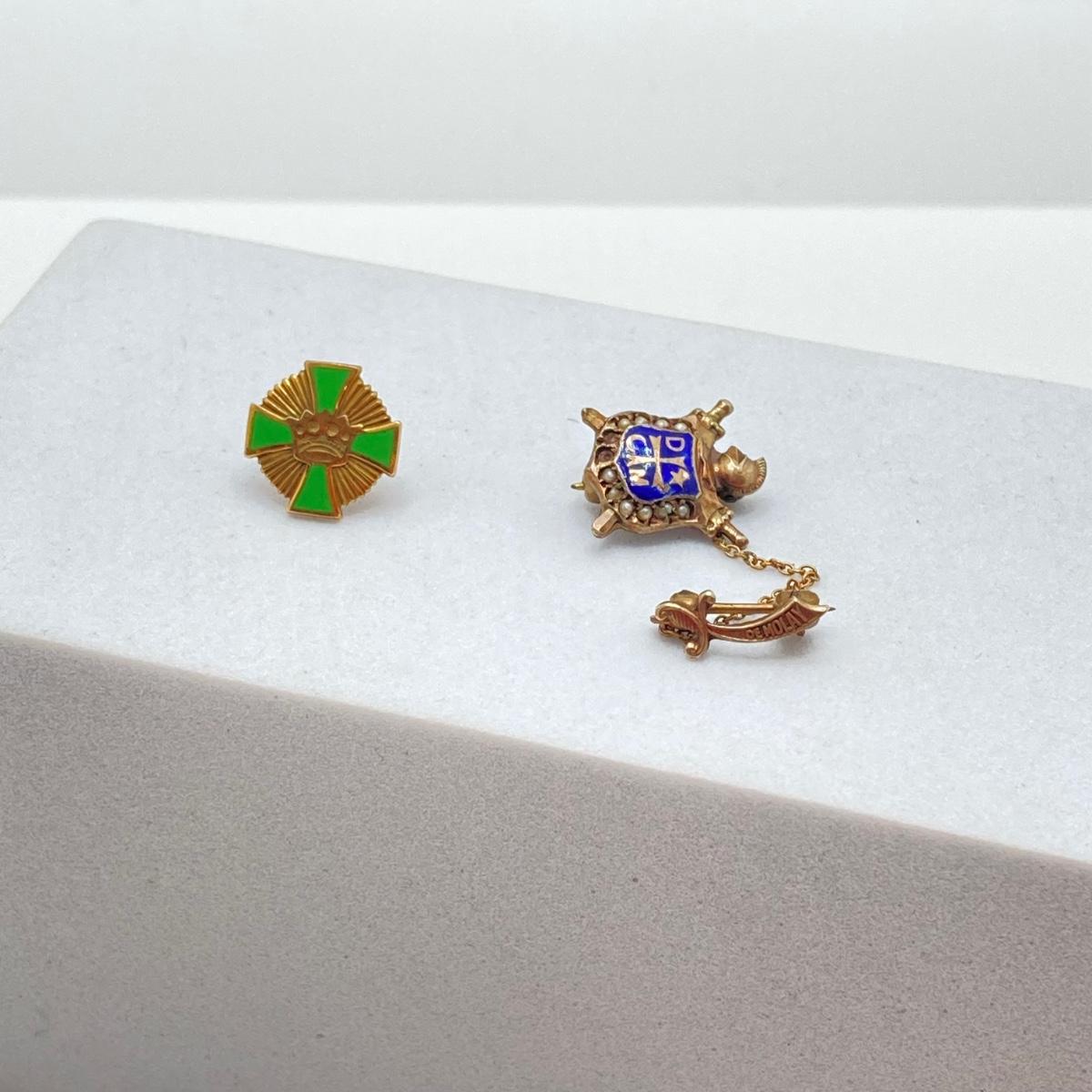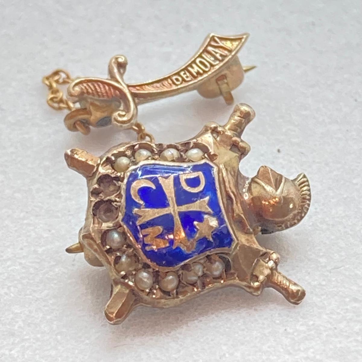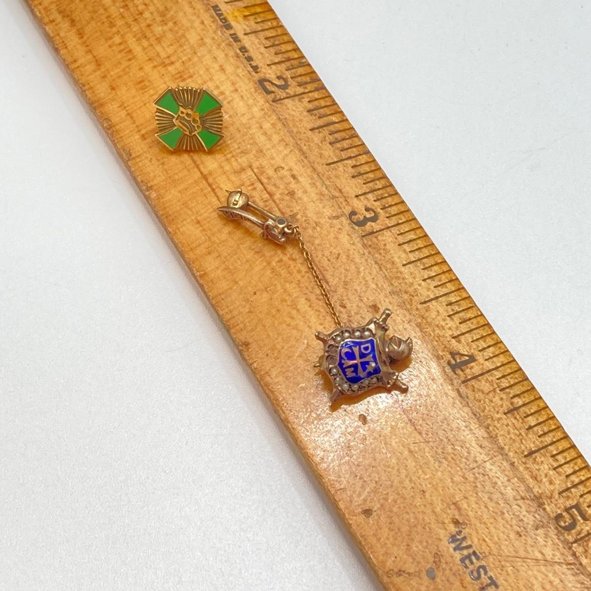 LOT 142: Vintage Gold Pins (Free Mason Presidential Crown and Demolay Masonic Pin with Pearls)- 10KT, 2.0 gtw