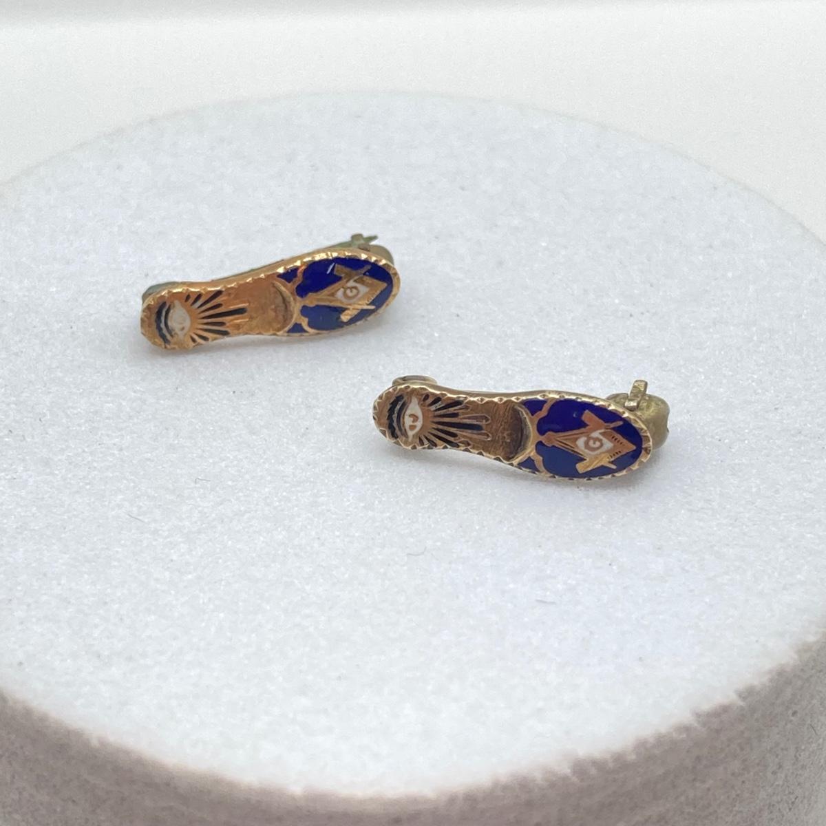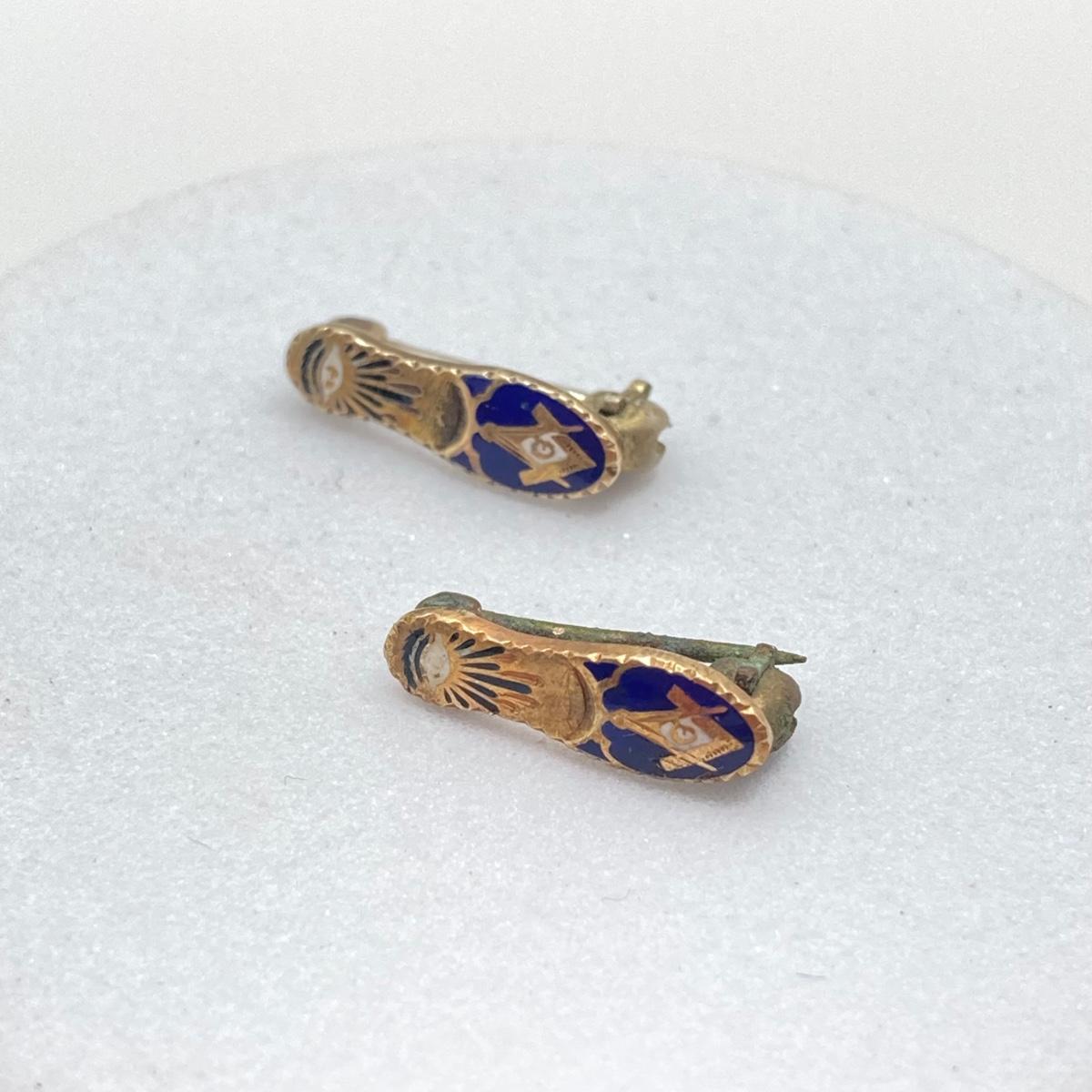 LOT 143: Gold and Enamel Blue Slipper Masonic Lapel Pins - 14KT, 1.40 gtw