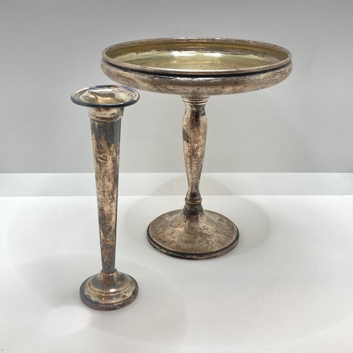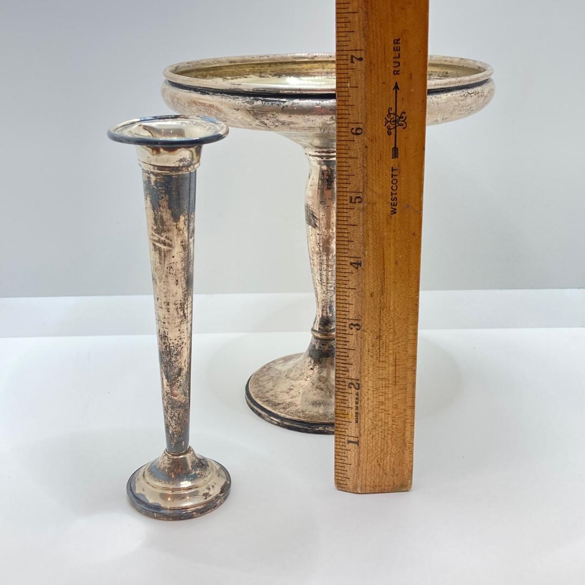 LOT 148: Weighted Sterling Acme Pedestal Bowl and Lunt's Candlestick Holder