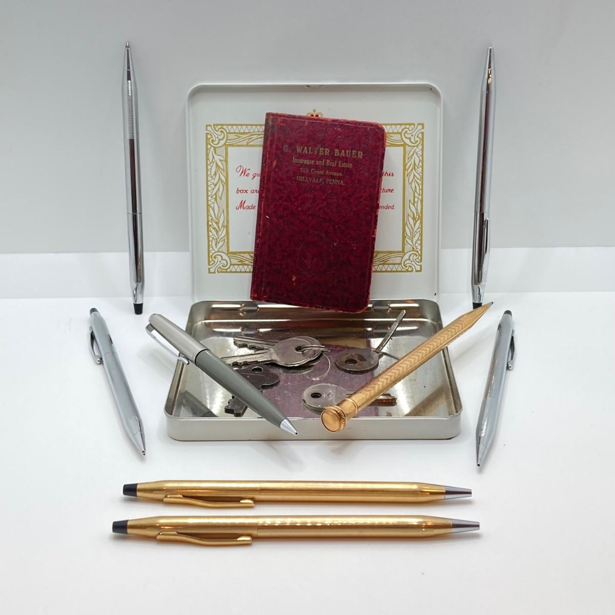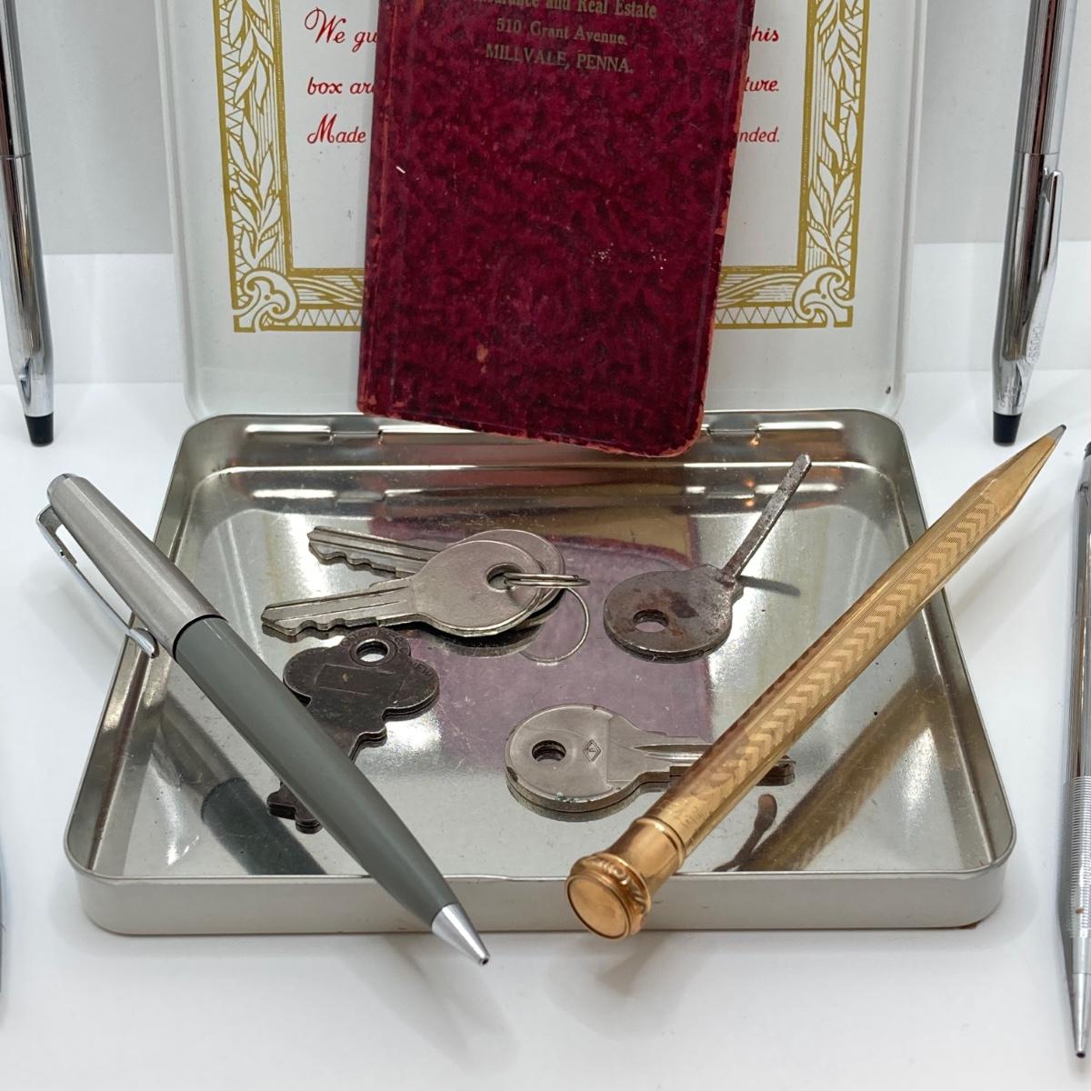 LOT 150: Collection of Vintage Writing Utensils, Keys and More - Cross, Parker and Wahl Eversharp Gold Plated Included