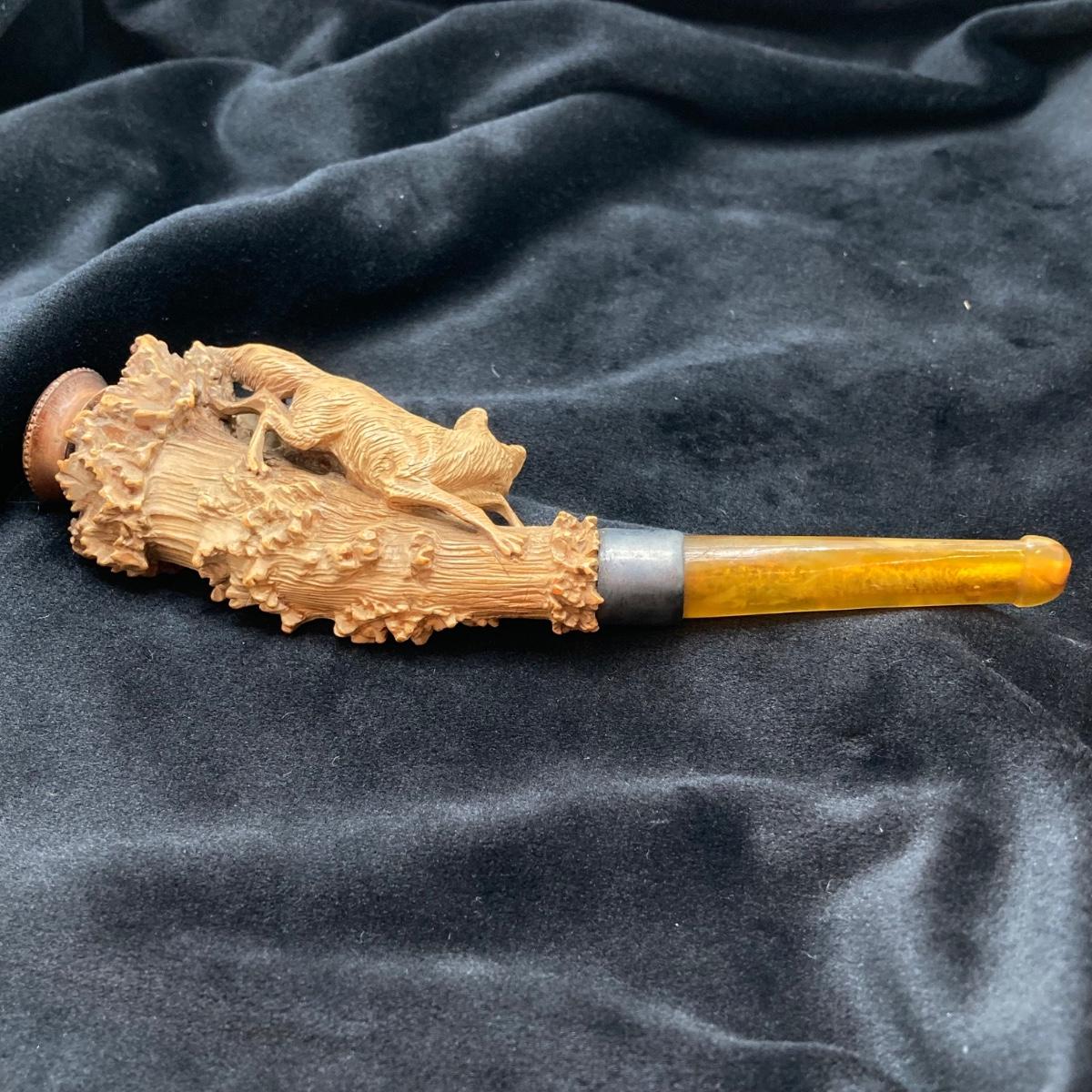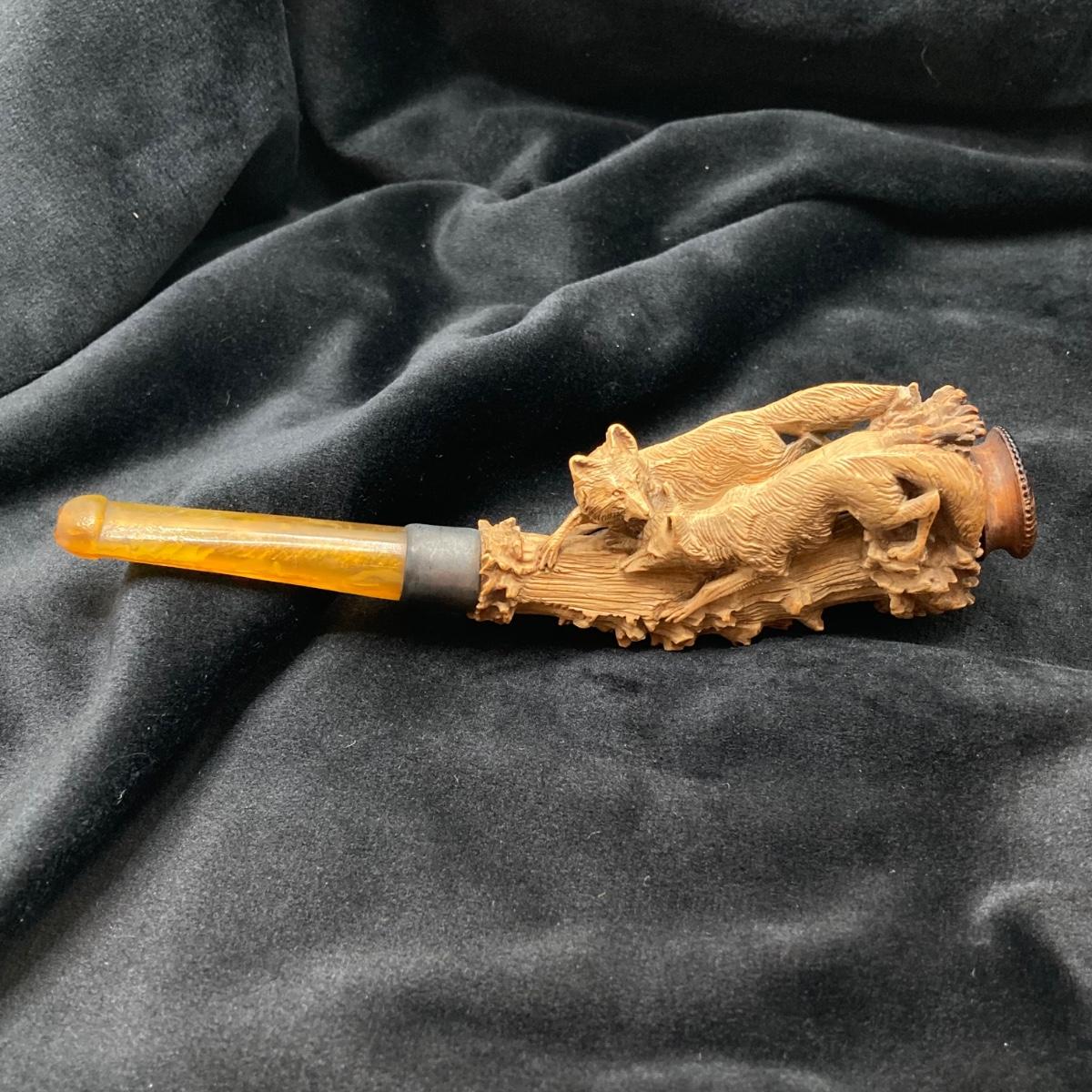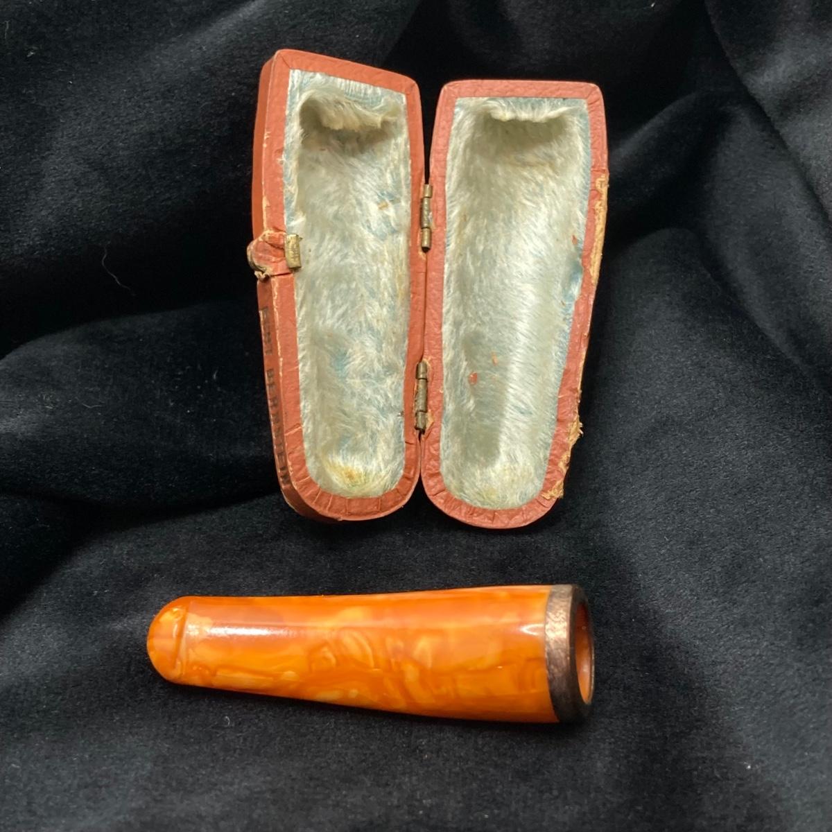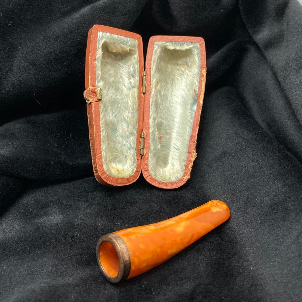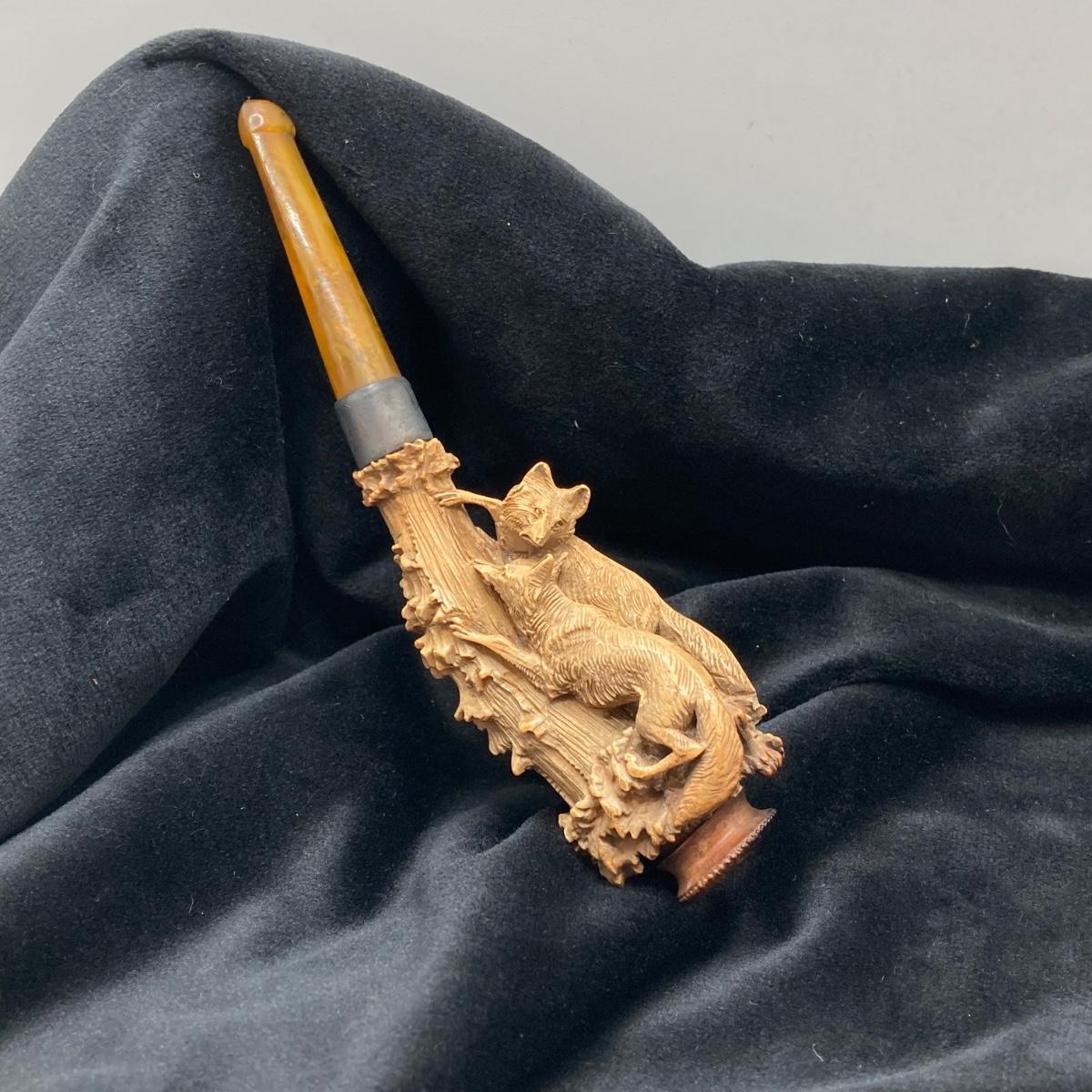 LOT 154: Vintage /Antique Unique Carved Foxes Cigar/Cigarette Holder, Echt Bernstein Case with Tip and Denicotea Holder