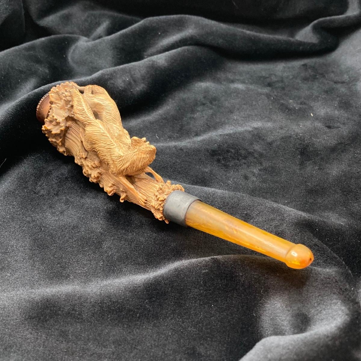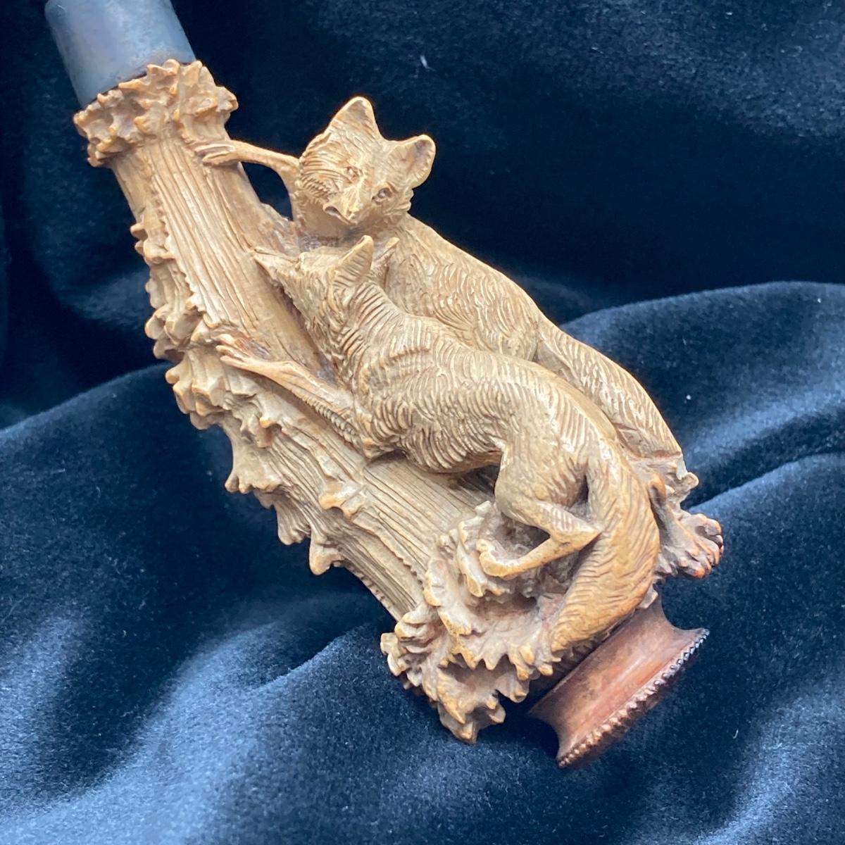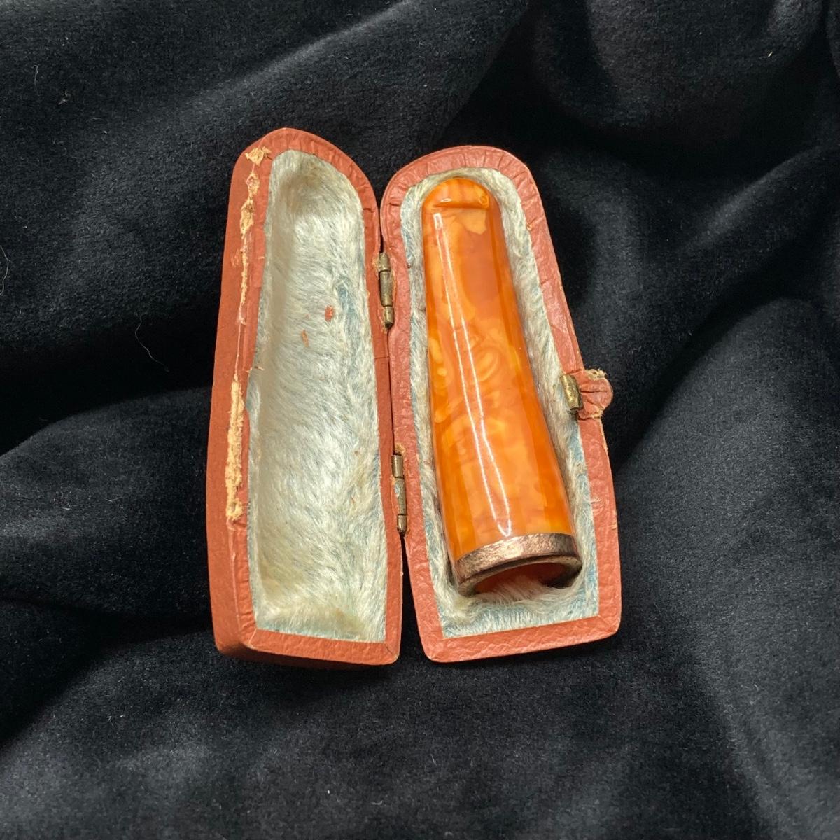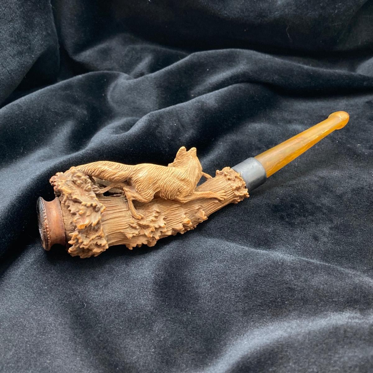LOT 154: Vintage /Antique Unique Carved Foxes Cigar/Cigarette Holder, Echt Bernstein Case with Tip and Denicotea Holder