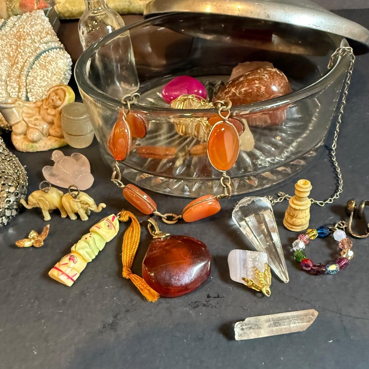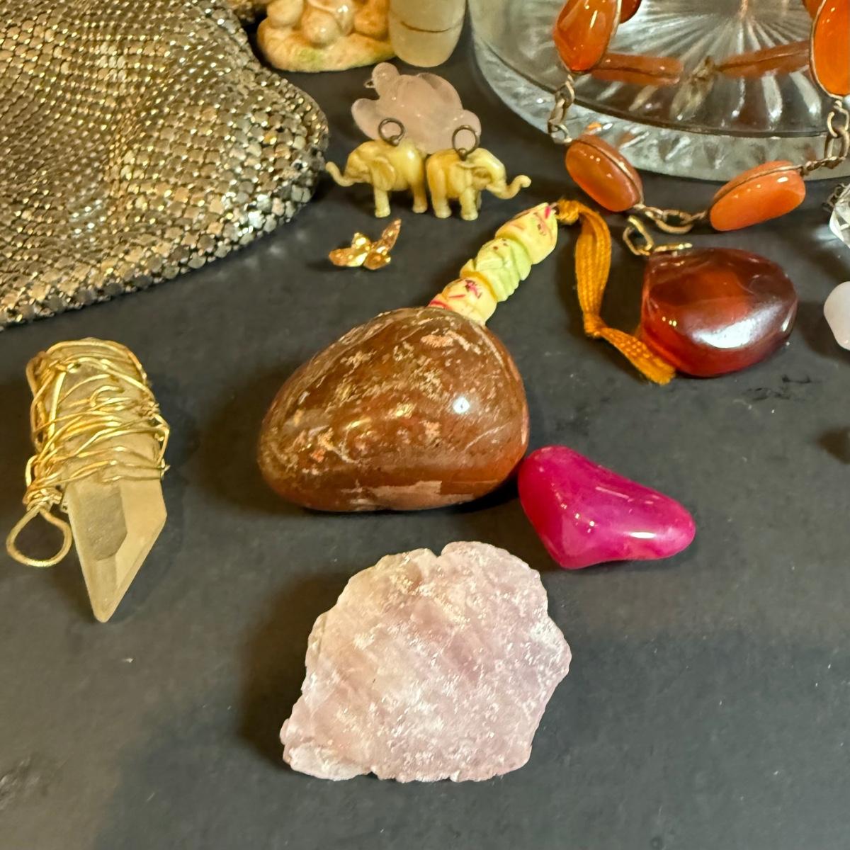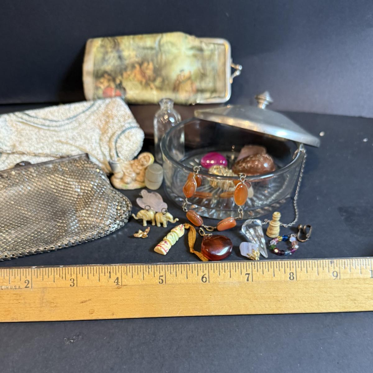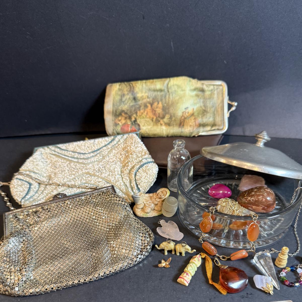 LOT Vintage Metal and Beaded Purses, Eyeglass Case and a Bunch of Baubles and More