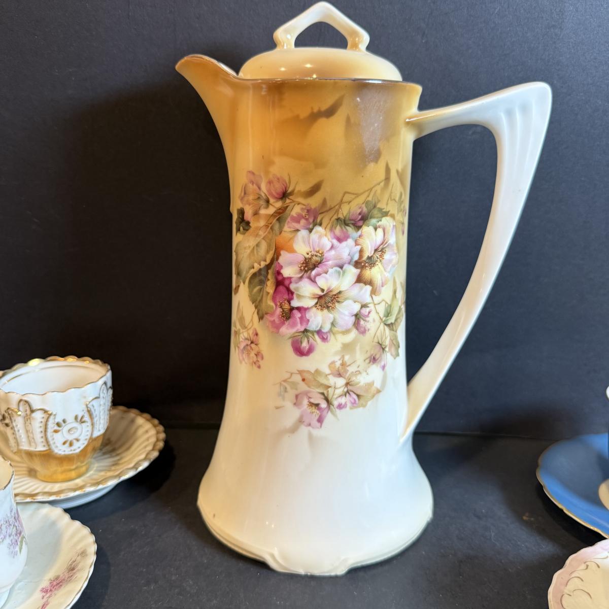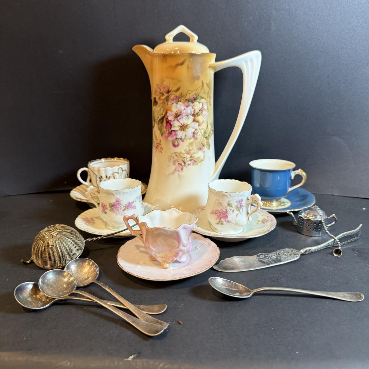 LOT 179: Vintage Hot Chocolate Pot and Demi Teacups an Saucers, Tea Bobbers and Spoons