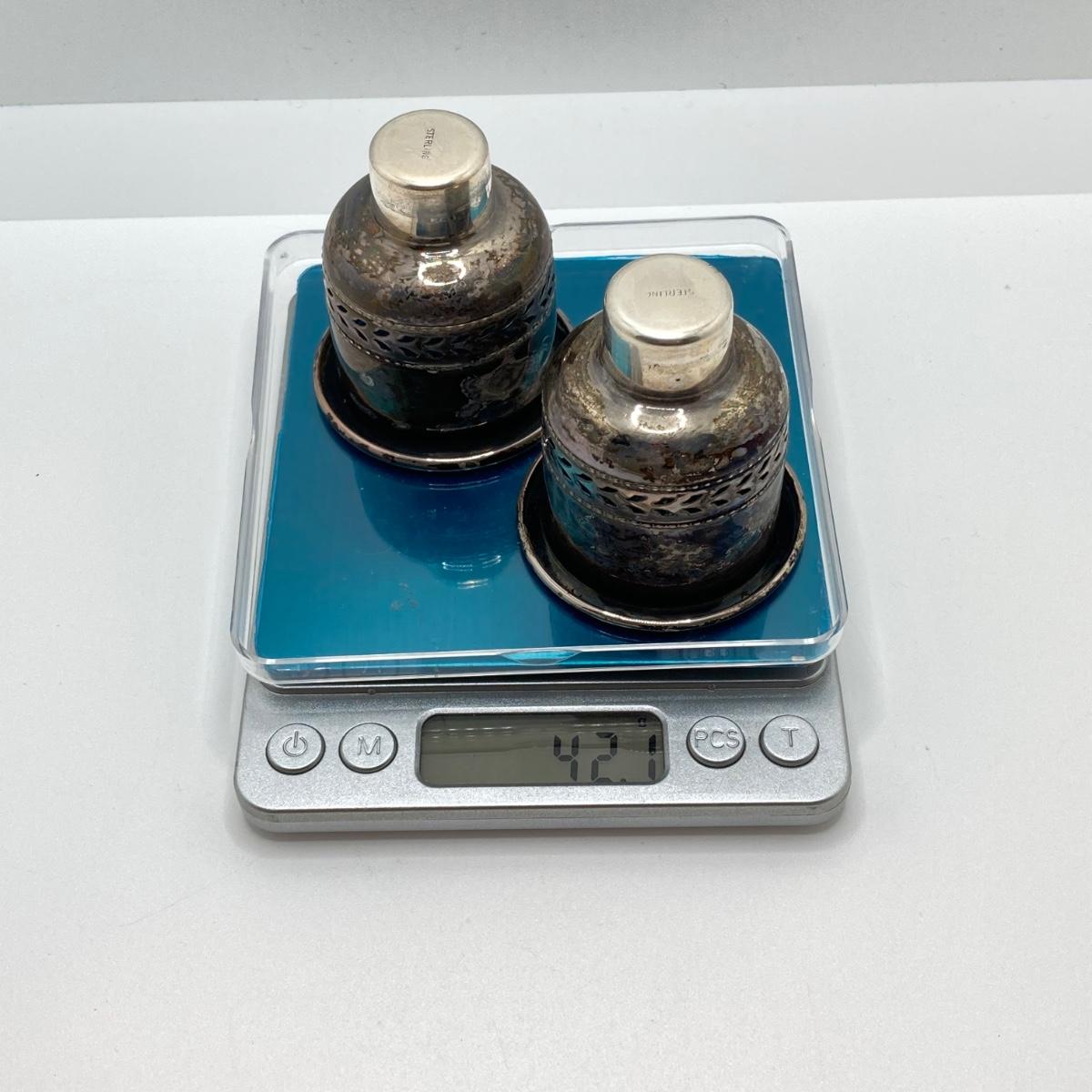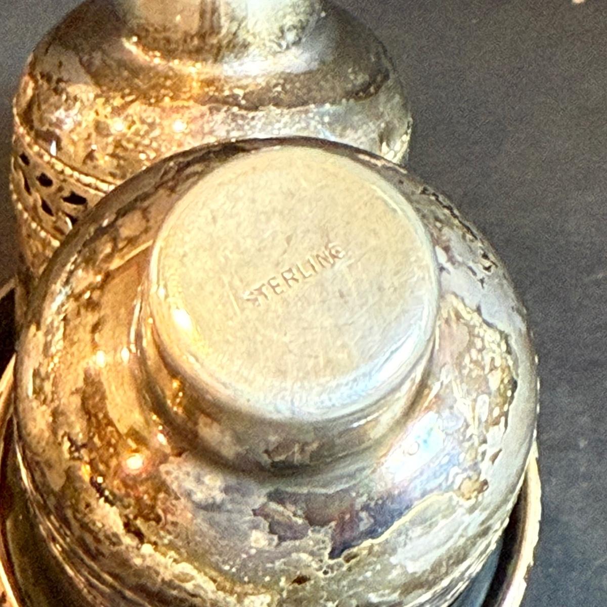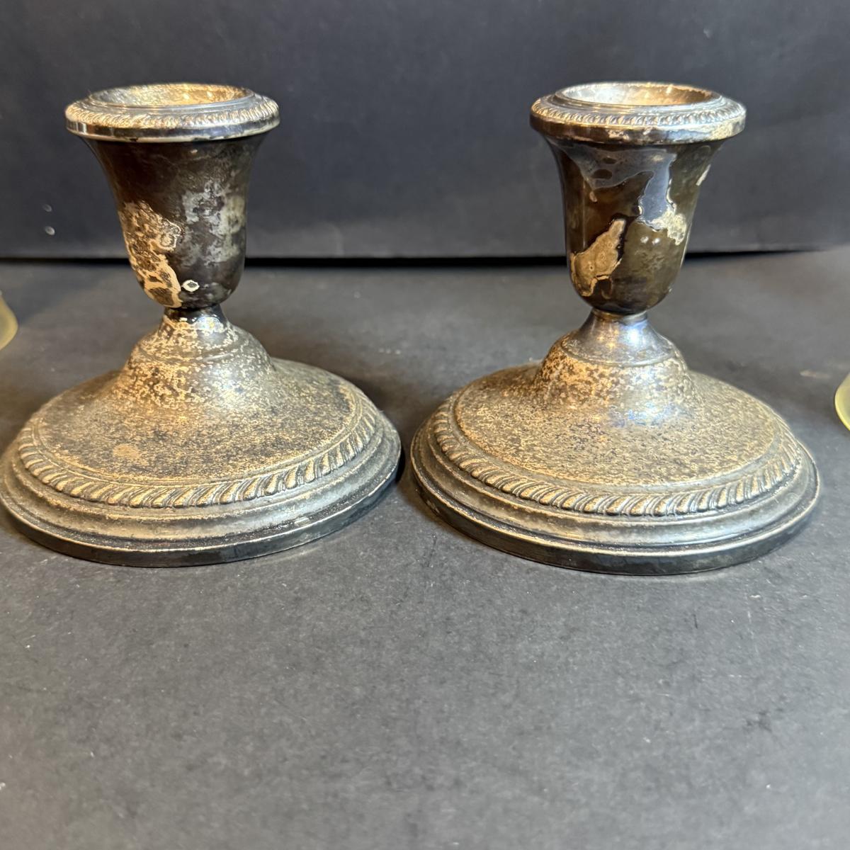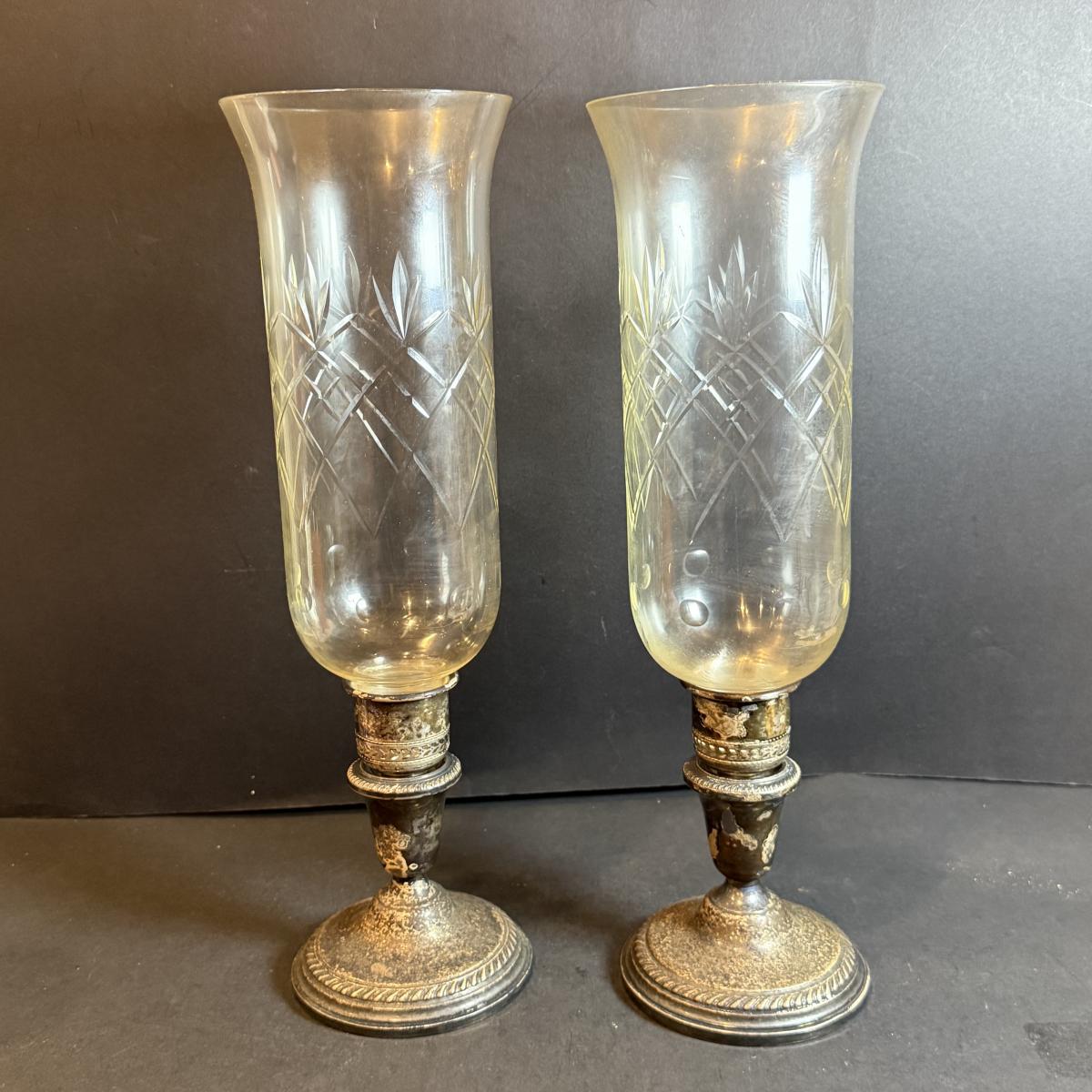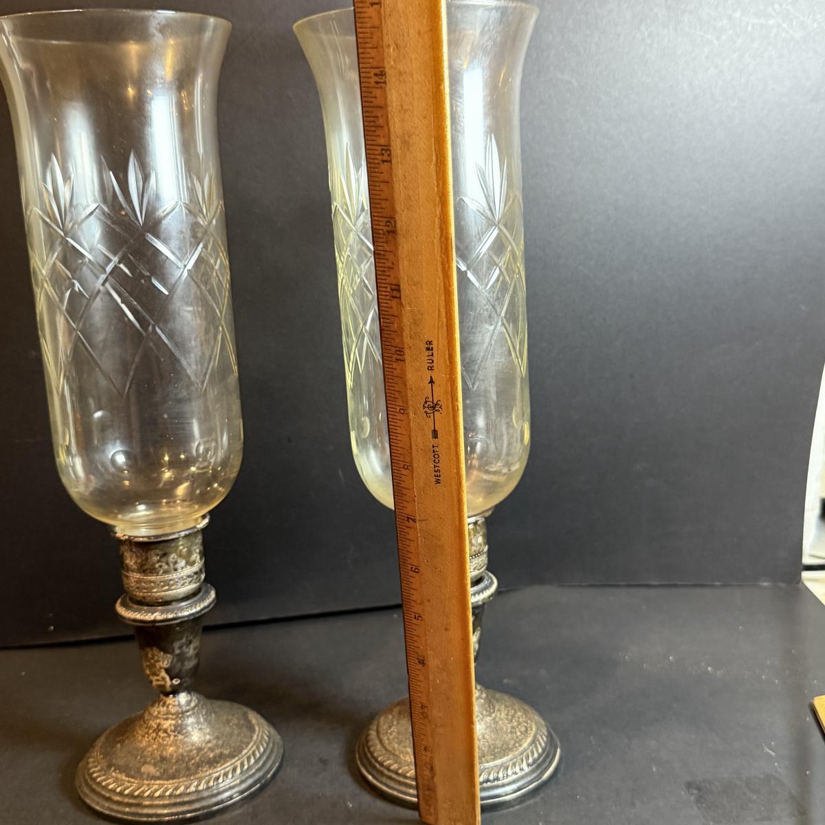 LO 181: Weighted Sterling Silver Candle Sticks with Hurricane Glass with Silver Base 42.1 g for both base