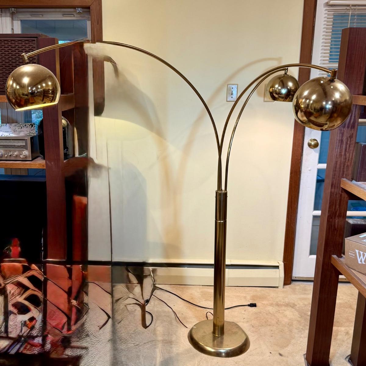 LOT 184: Mid Century Italian Style Brass Arc Floor Lamp