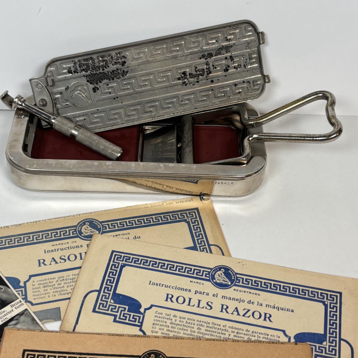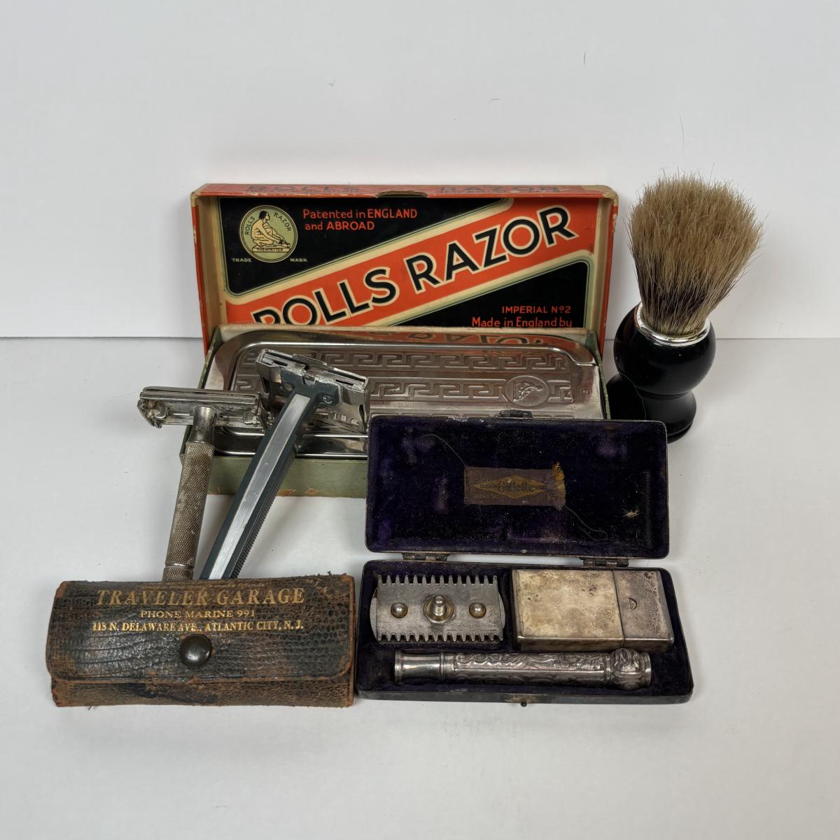 LOT 224: Vintage Razors Featuring a 1900's Gillette Pocket Edition 3 Piece Razor Set w/Original Case, Rolls Razor and More