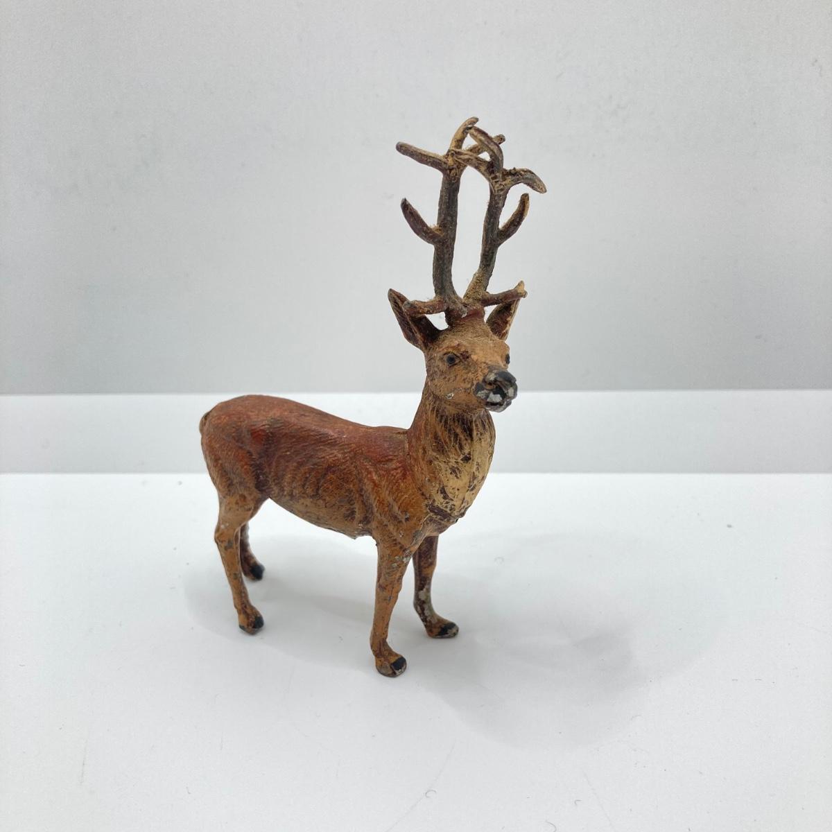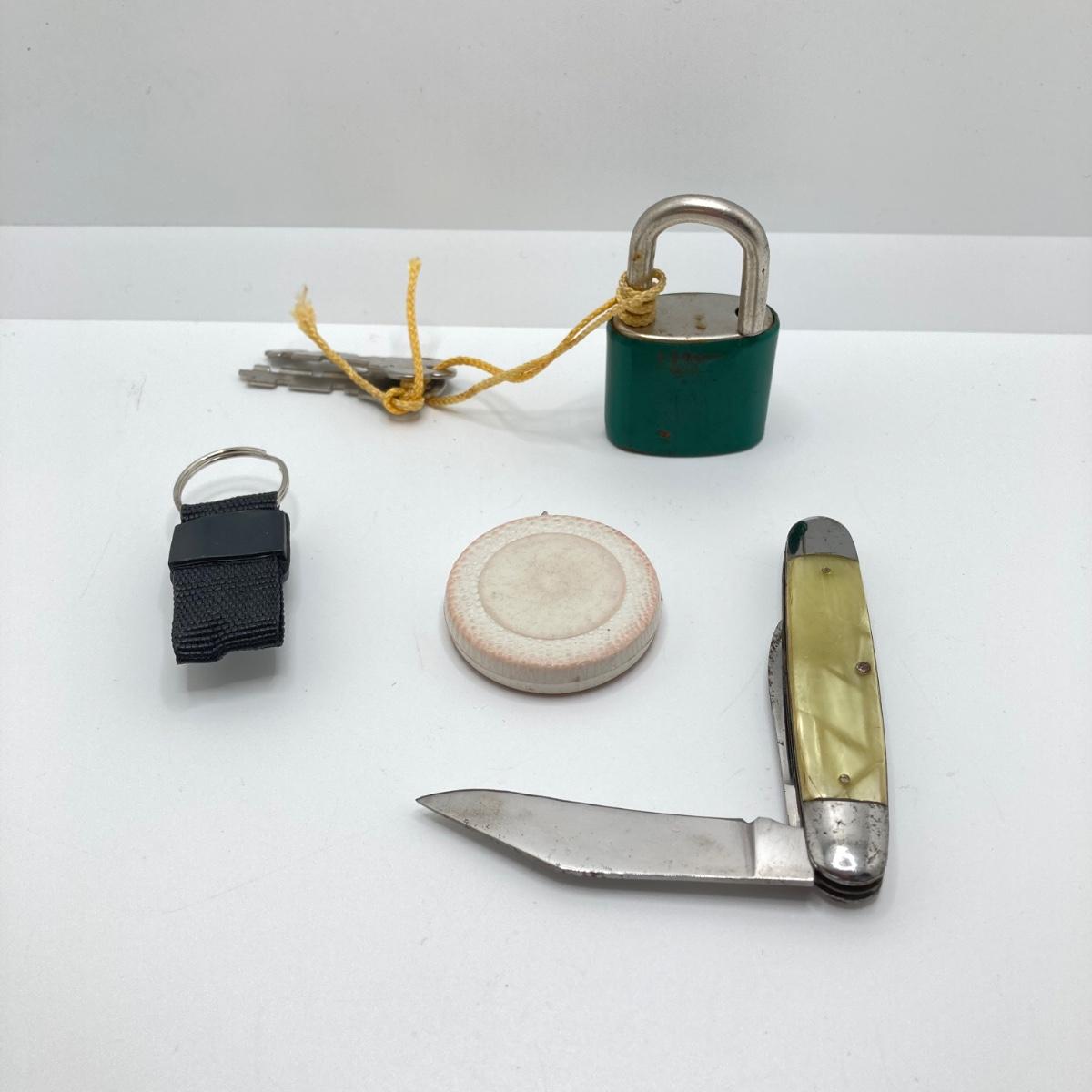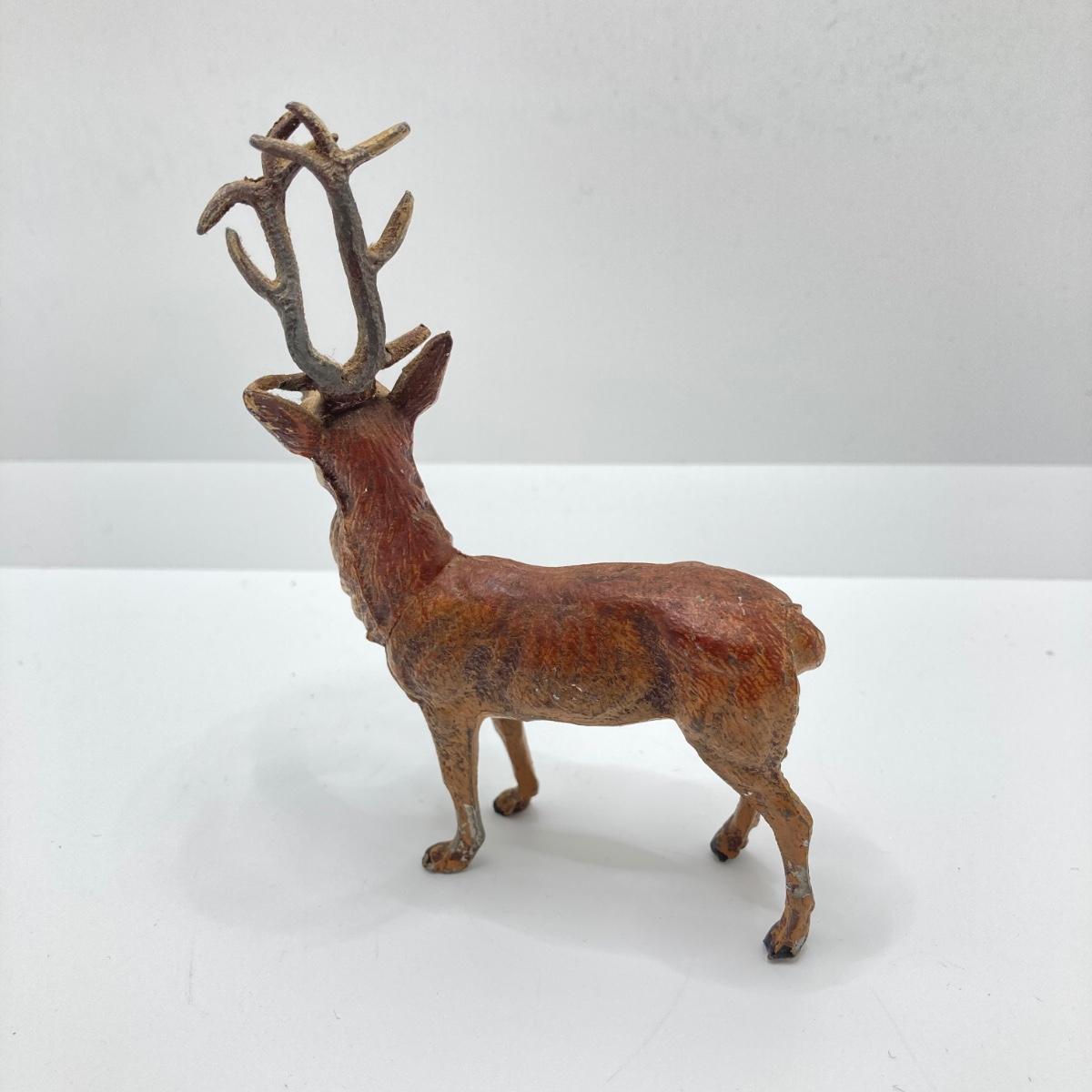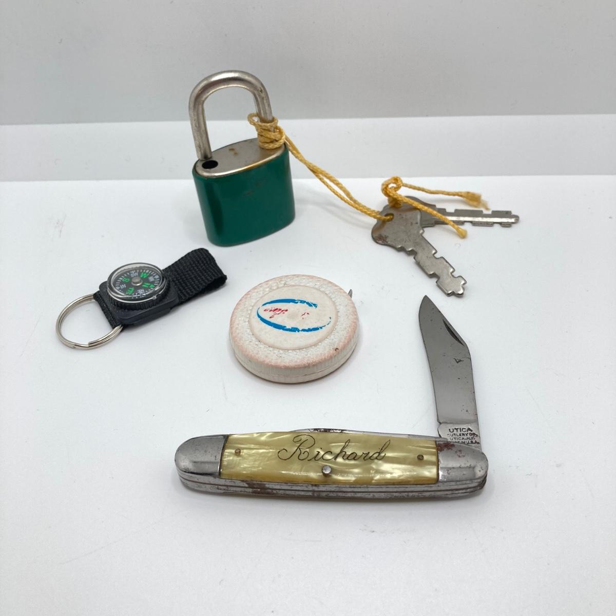 LOT 186: Vintage Sporting Goods Collection - Cast Iron Reindeer / Buck Figurine Made in Germany, Articulated Snake, Fishing Charts, Stanley Aladdin Thermos, Folding Pocket Knife and More