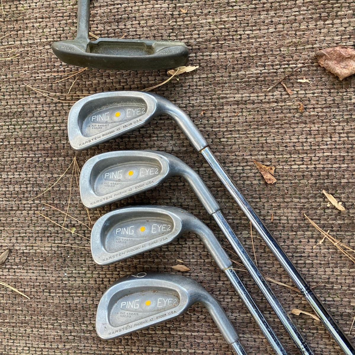 LOT 191: Ping Golf Clubs - Eye2 Yellow Dot Irons with Anser Putter