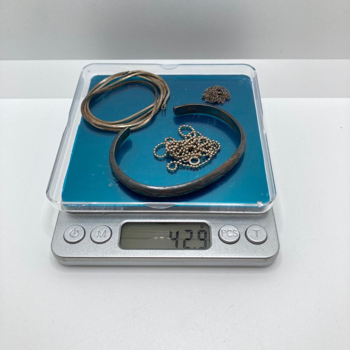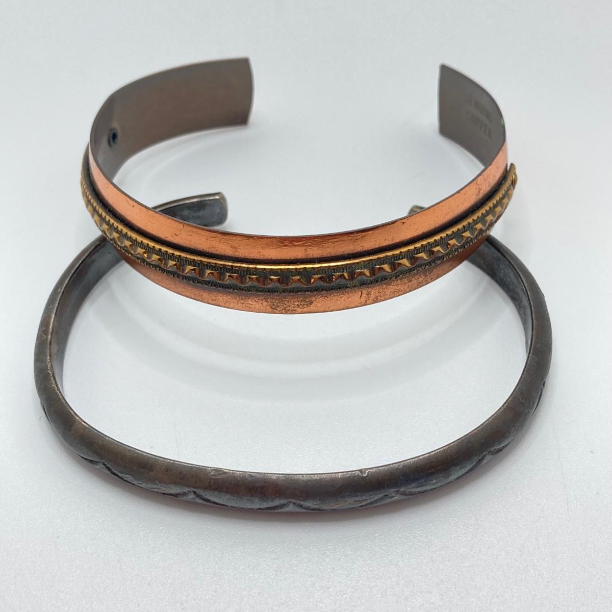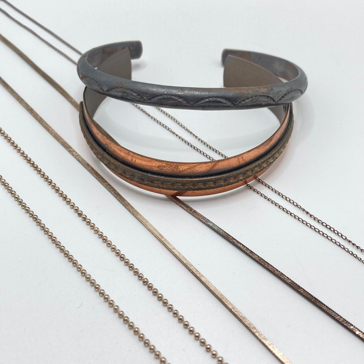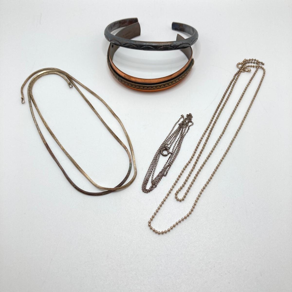 LOT 503: Sterling and Copper Jewelry - Cuff Style Bracelets and Chains for Repair