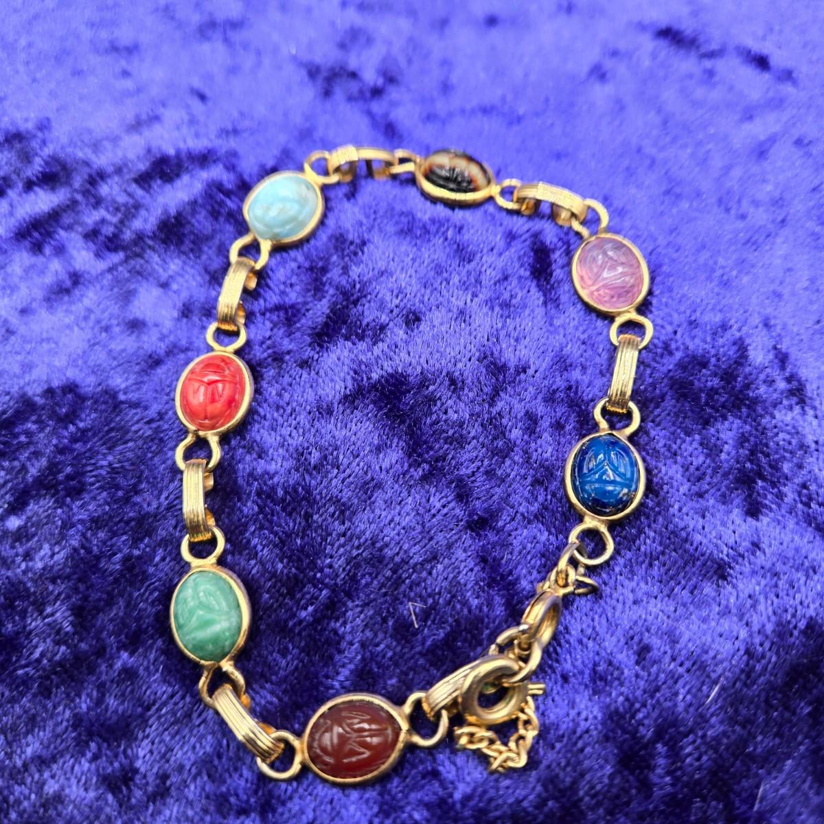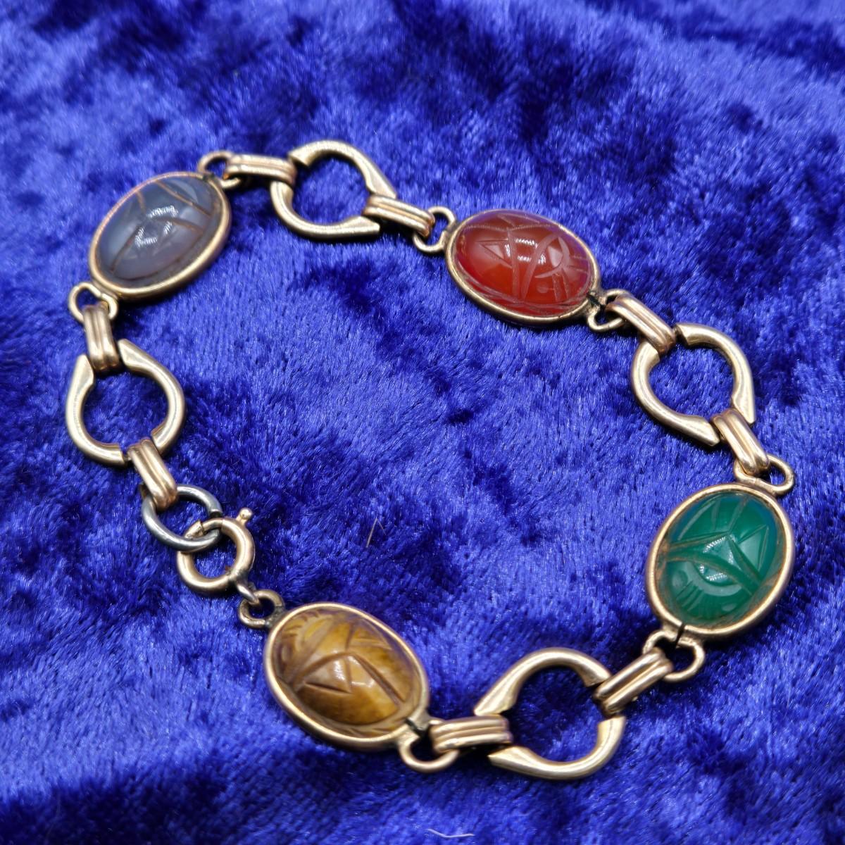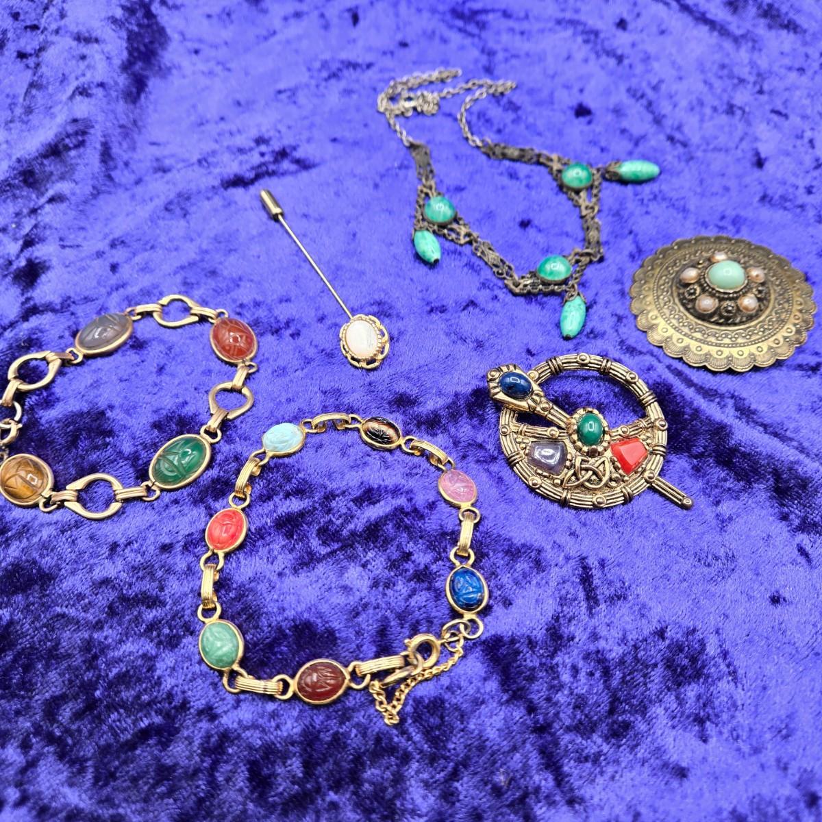 LOT 21J: Two Scarab Bracelets, Opal Stick Pin, and More