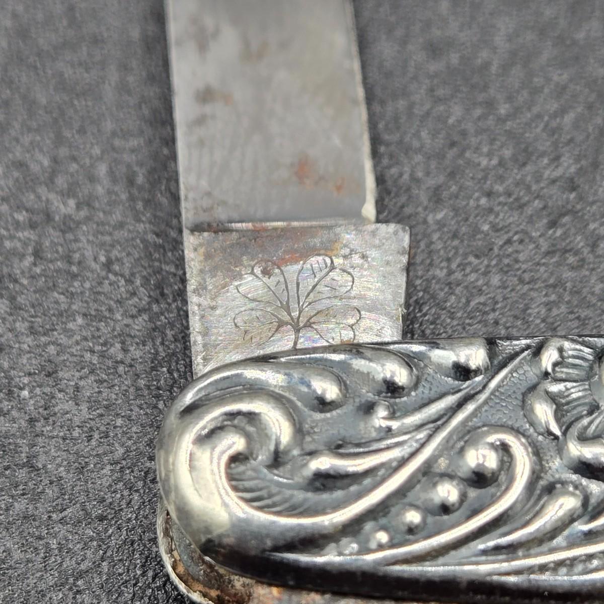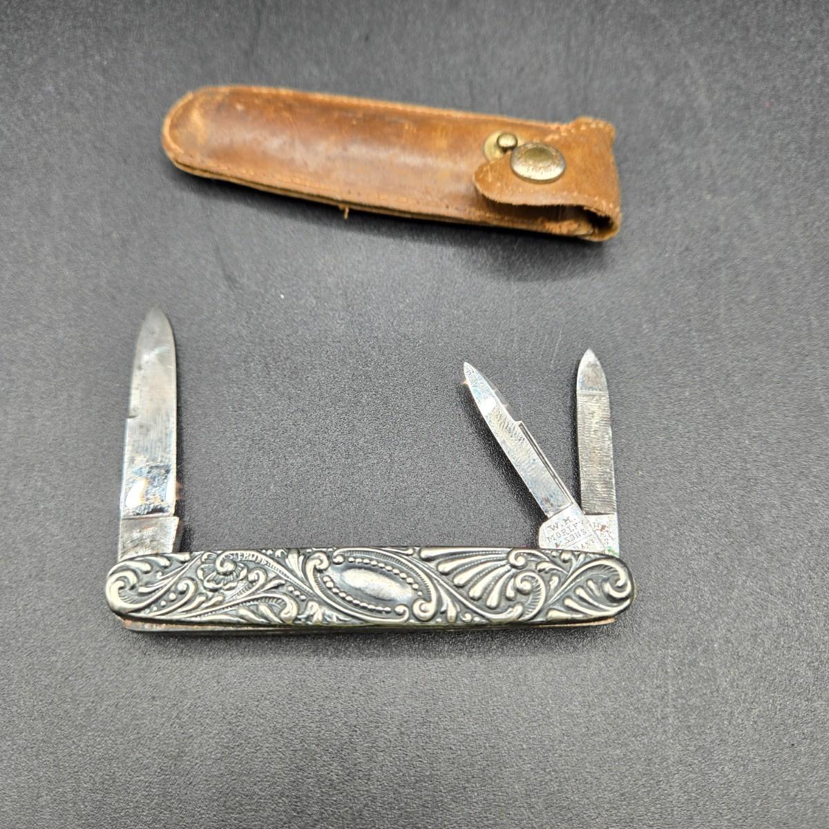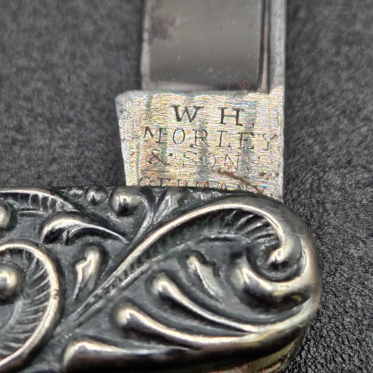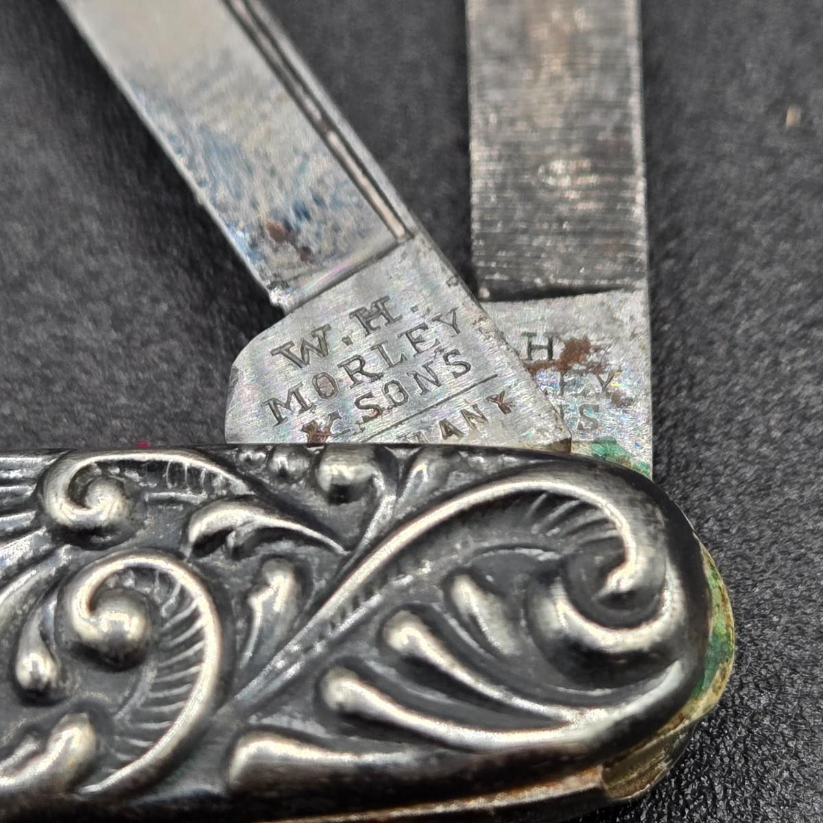 LOT 22J: Two Pairs of Antique Rimless Eyeglasses in Cases, WH Morley & Sons Pocket Knife with Case, Tiny Book Locket, and More