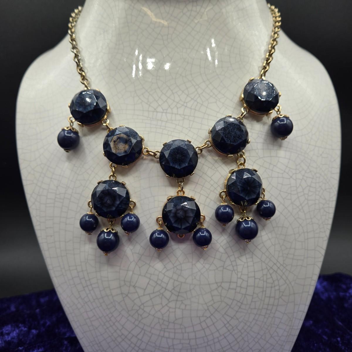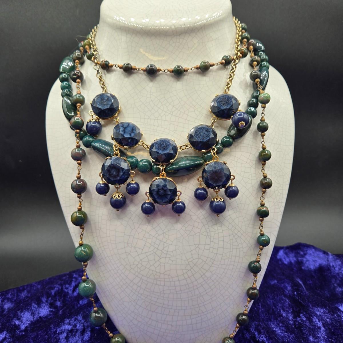 LOT 47J: Collection of Blues and Greens Beaded Costume Jewelry Necklaces