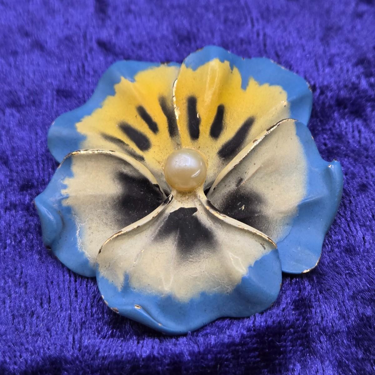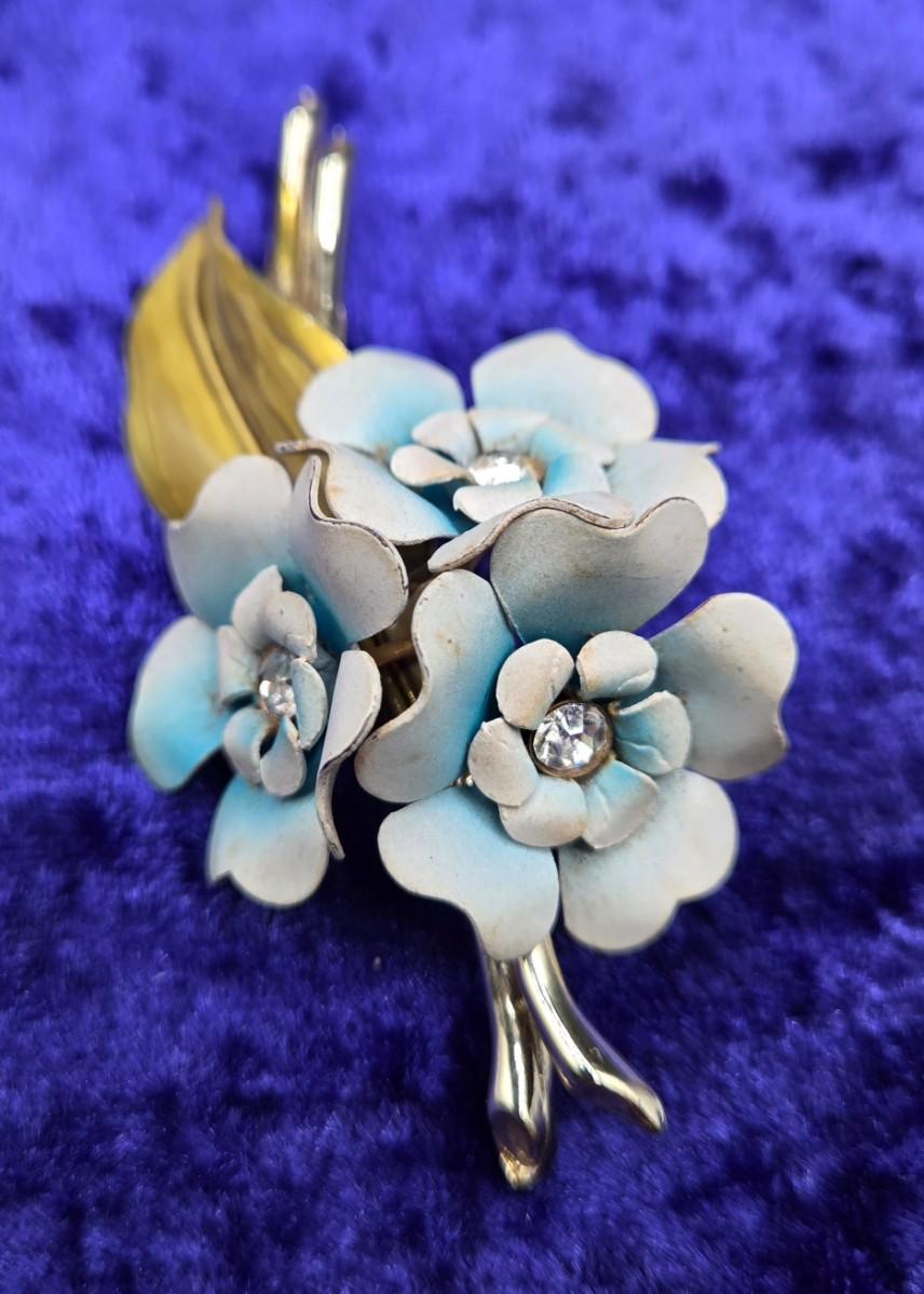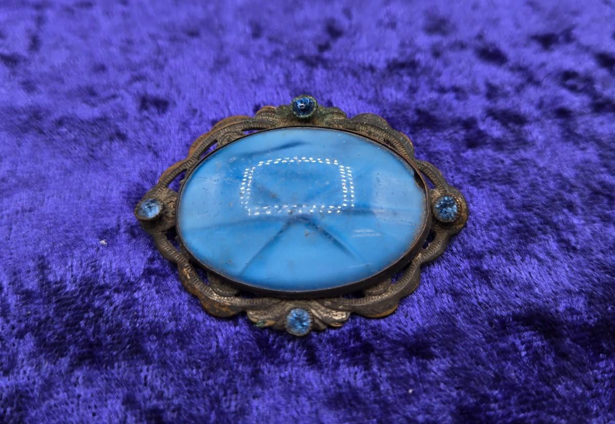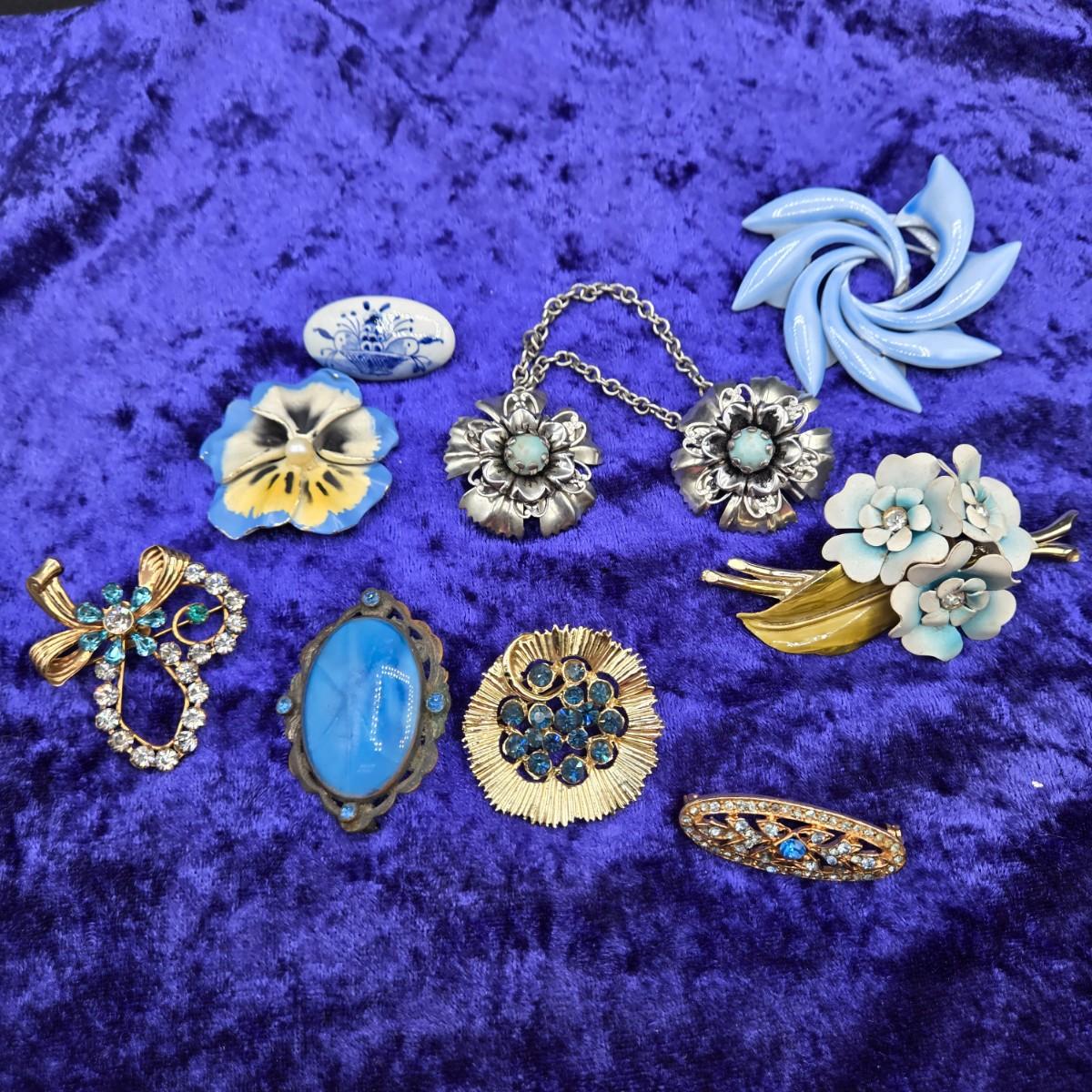 LOT 55J: Beautiful Blue Brooches Including Ceramic Flower, Delfts, and More