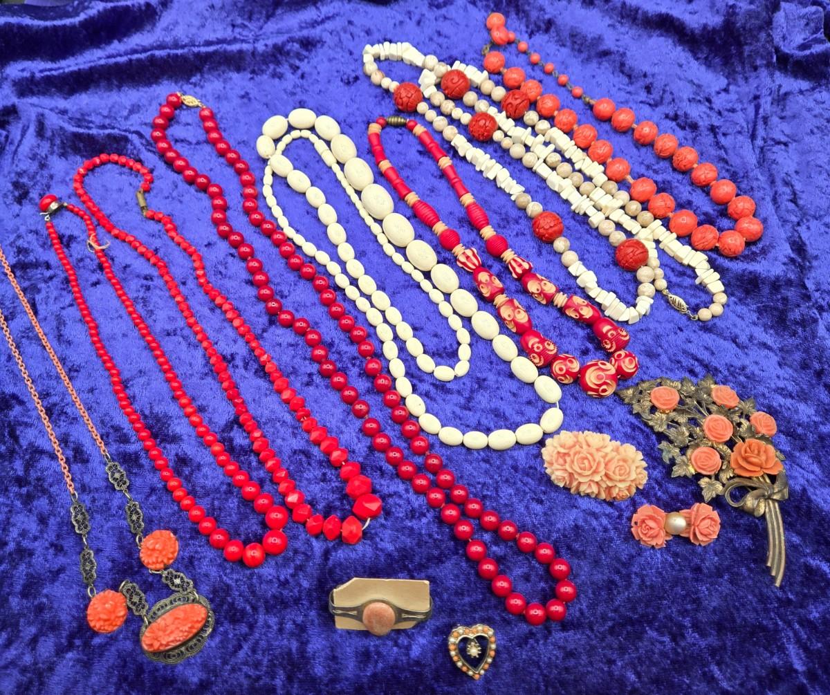 LOT 58J: Antique Vintage Necklaces, Brooches, and More