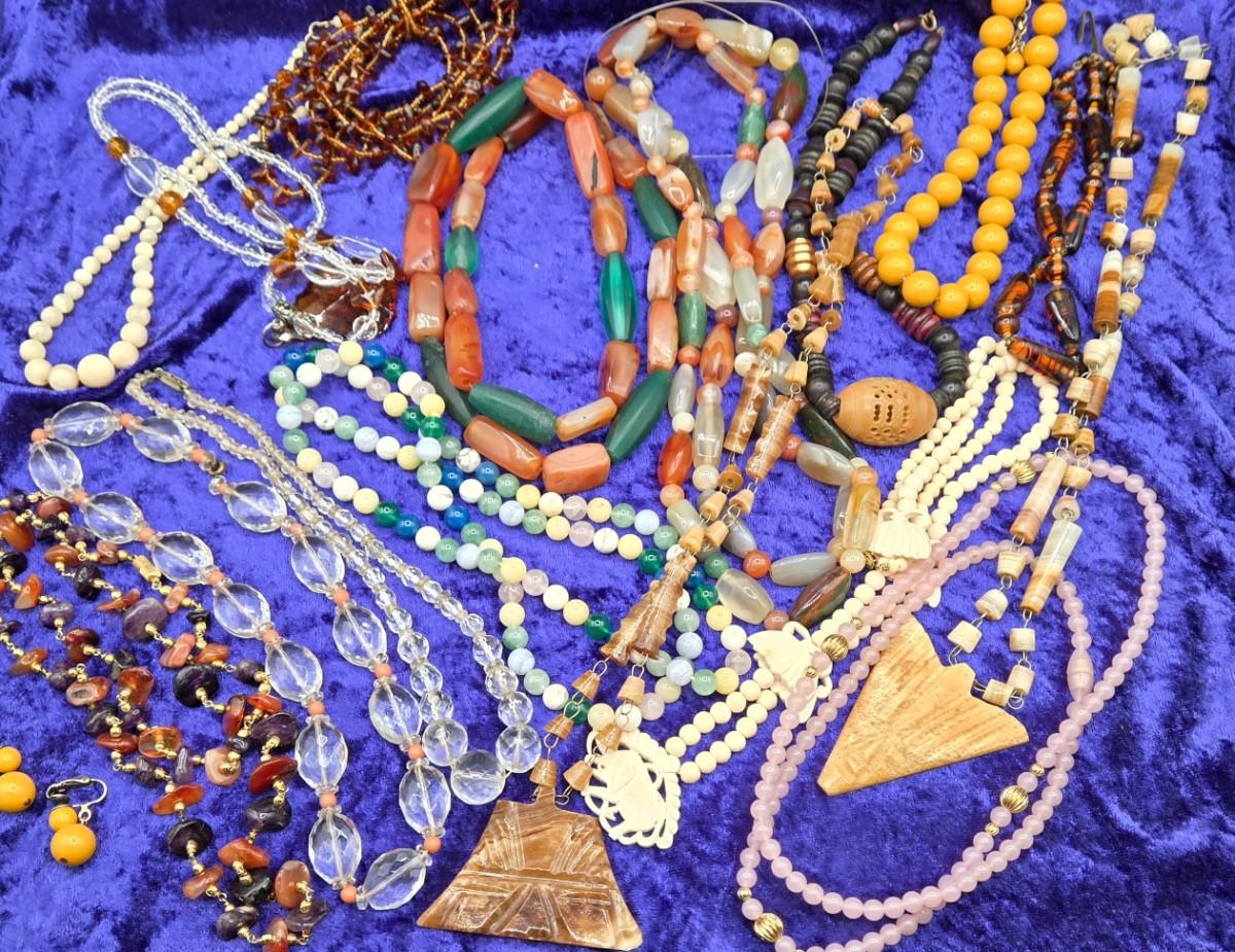LOT 63J: Multiple Necklaces of Many Styles Including Beads, Wood, and More