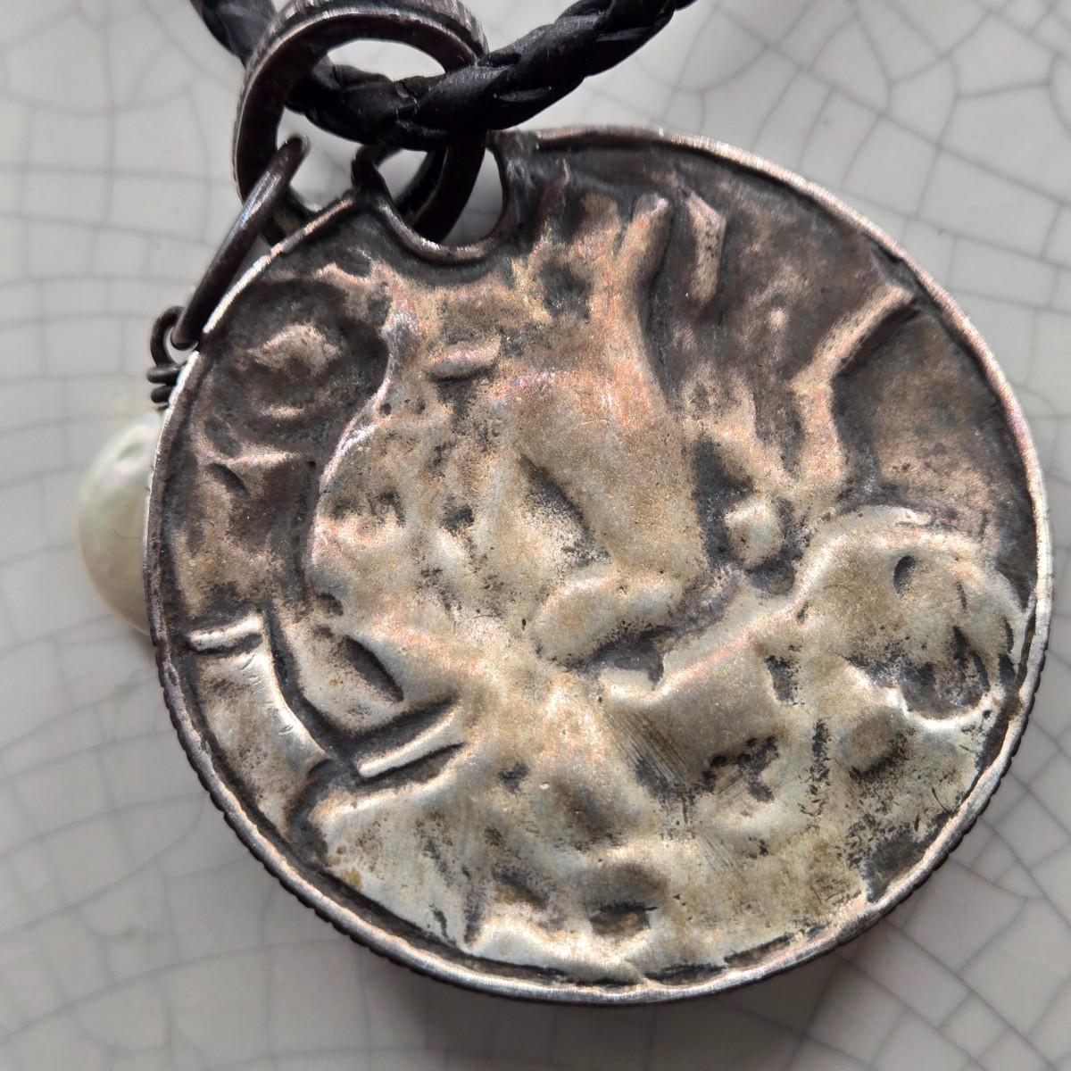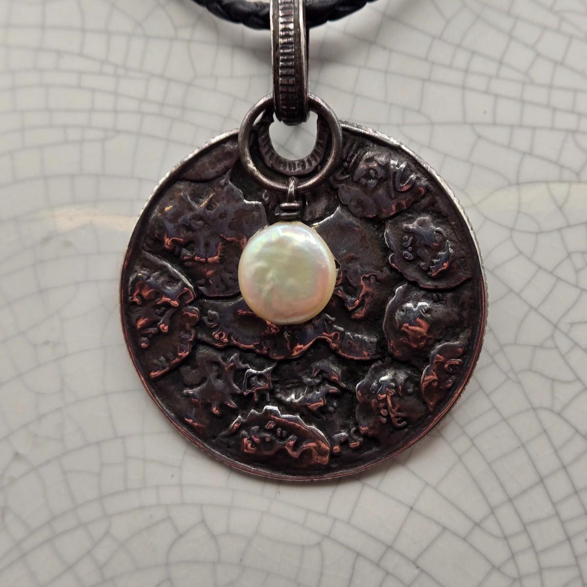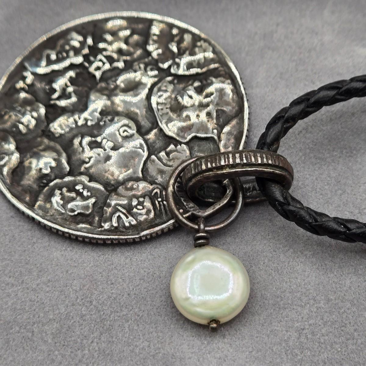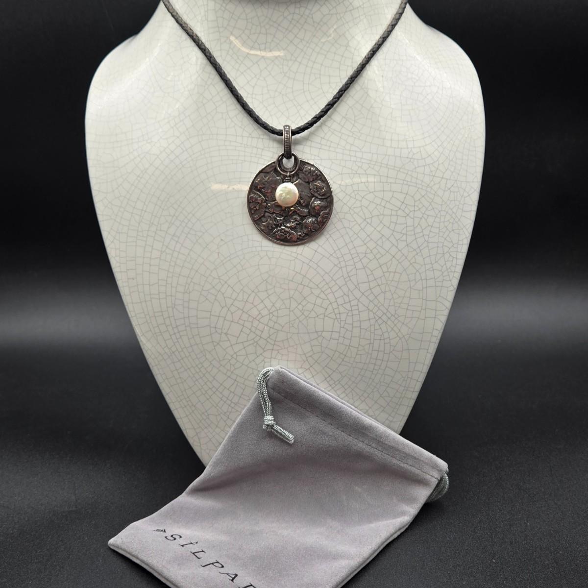 LOT 69J: 925 Silver Silpada 14 Inch Necklace with Round Hammered Pendant with Coin Pearl