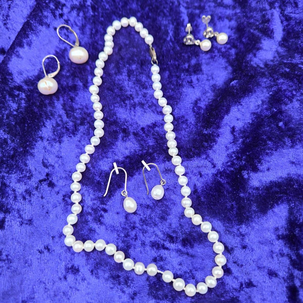 LOT 70J: 925 Silver and Pearl Pierced Earrings and Faux Pearl Necklace