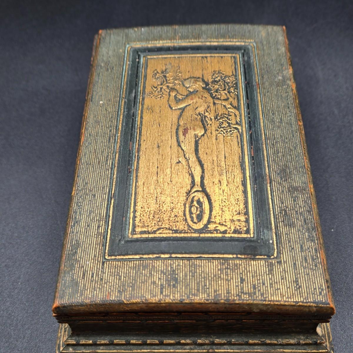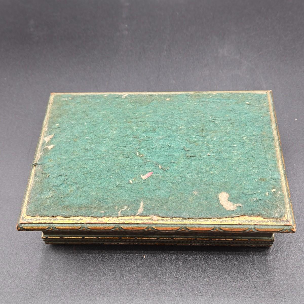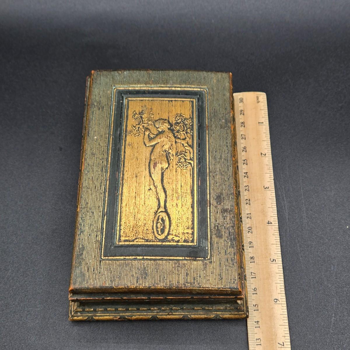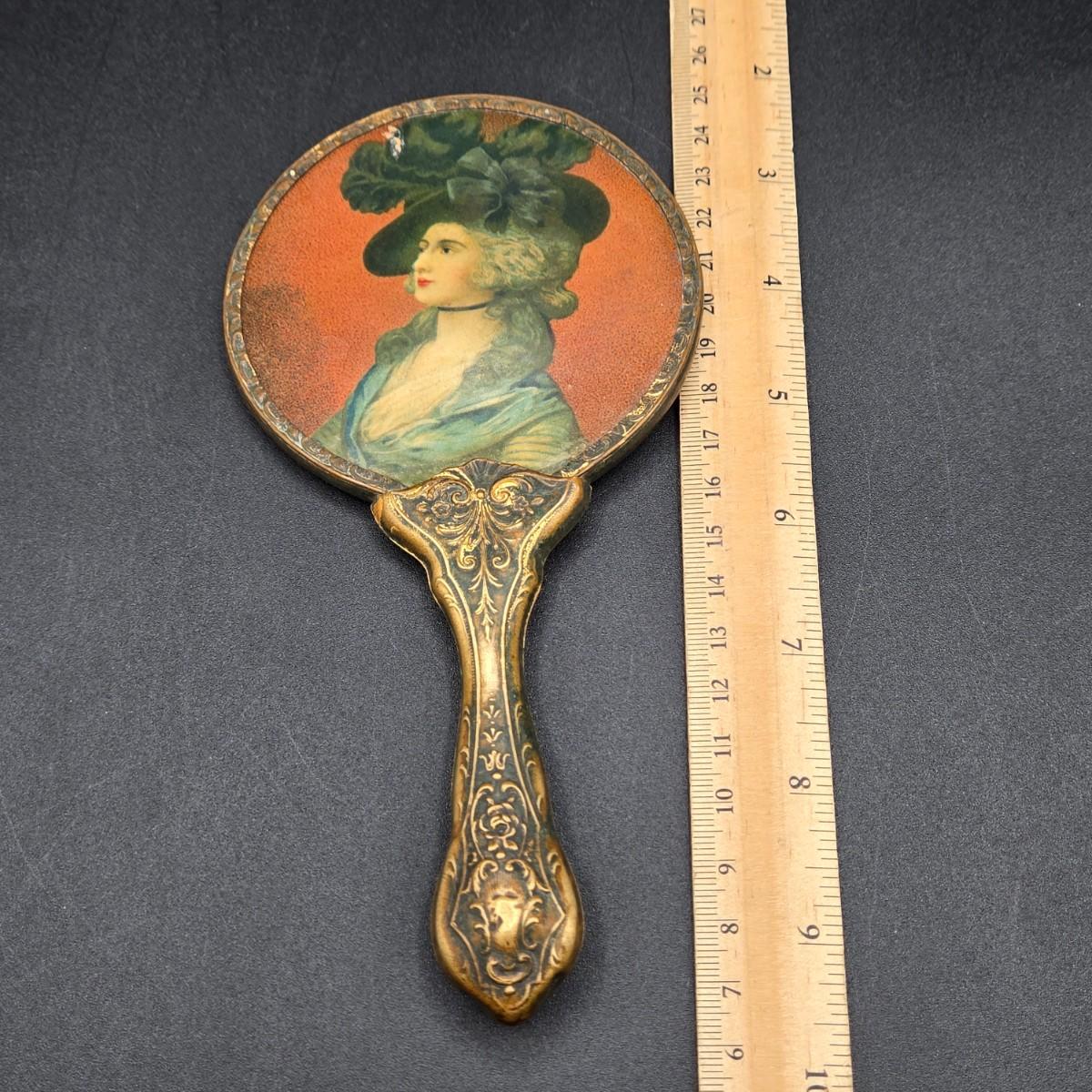 LOT 81: Mid Century Duchin Creation Etched Glass Bud Vase with Weighted Sterling Base, Vintage Faux Burlwood Card Holder, Two Pair of White Leather Gloves, and Vanity Hand Mirror