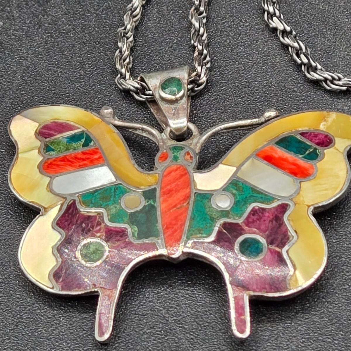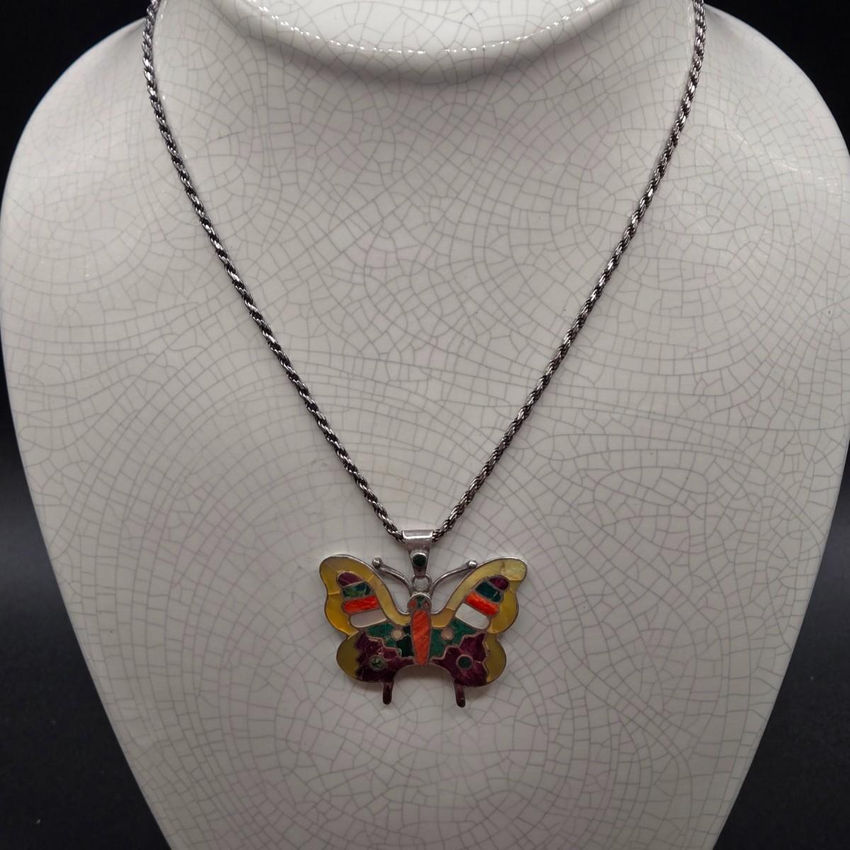 LOT 90J: 18.5 Inch Sterling Silver Inlaid Butterfly Necklace / 17.7 gtw