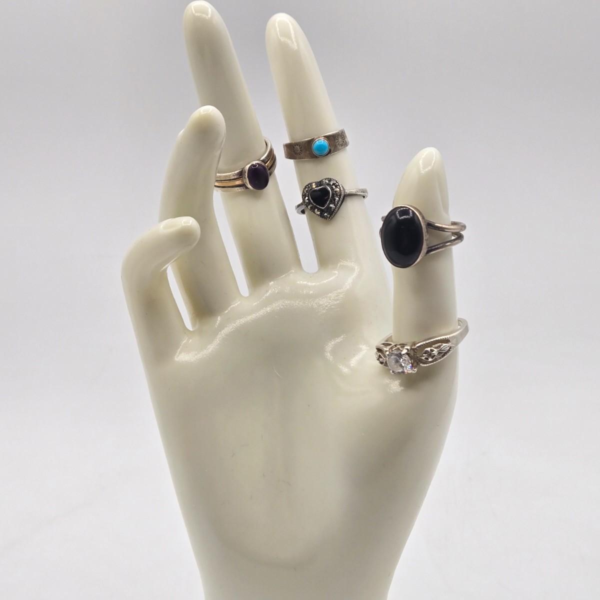 LOT 97J: Four Sterling Silver Rings and One Adjustable Toe Ring / 14.5 gtw