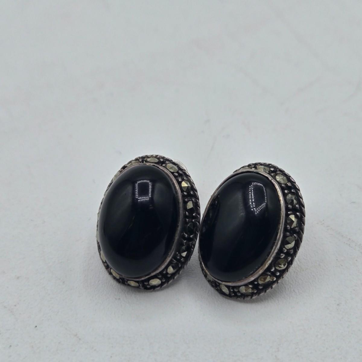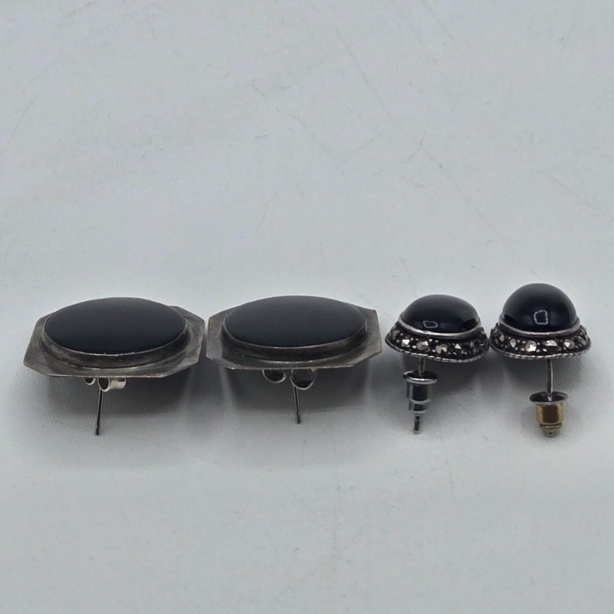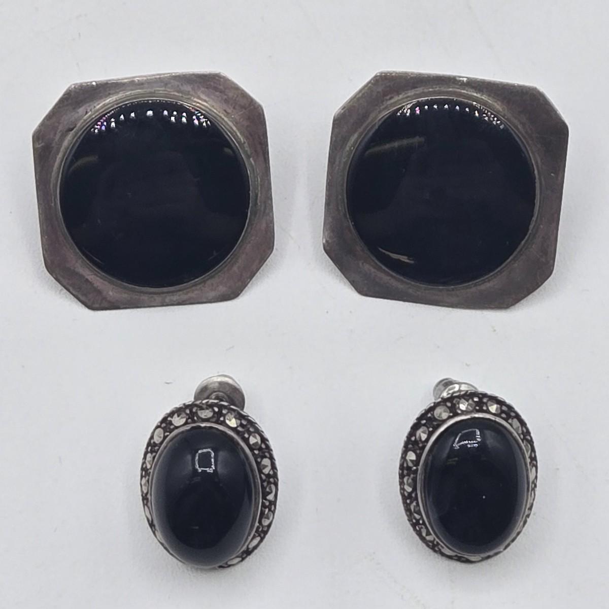 LOT 103J: Two Pair of sterling Silver Earrings with Black Stones / 18.6 gtw