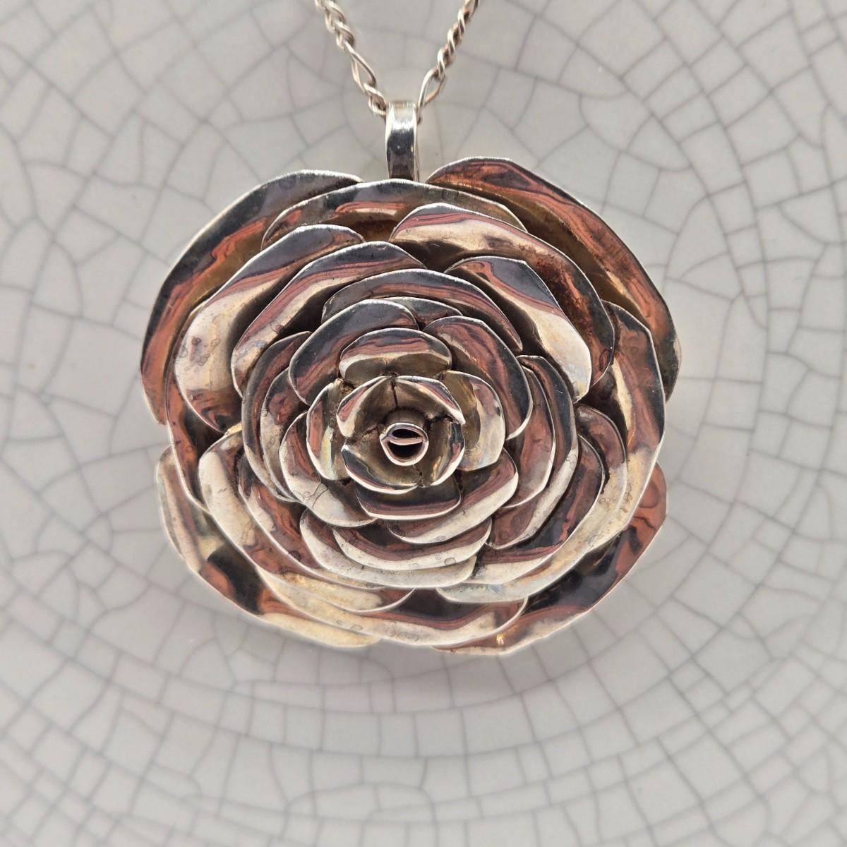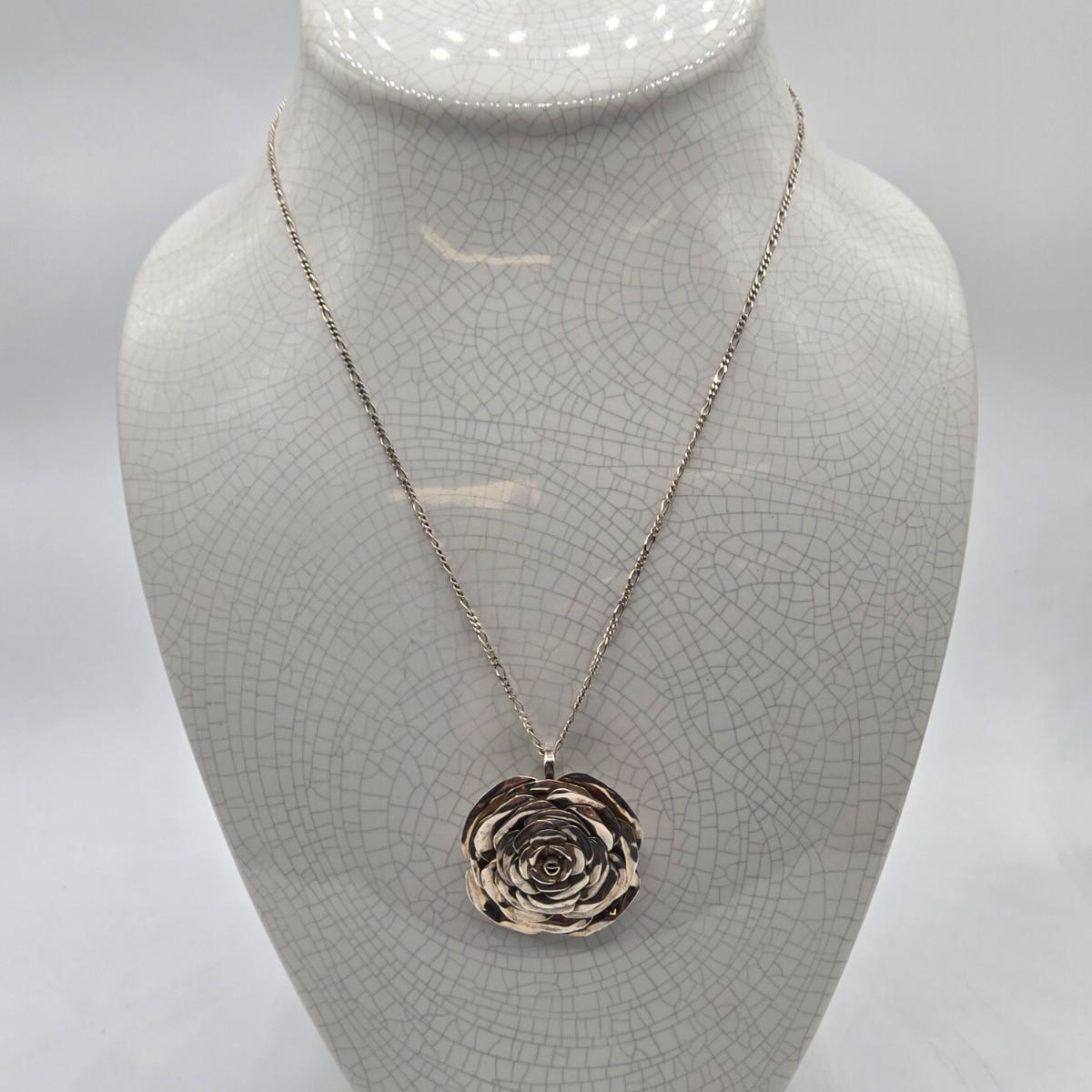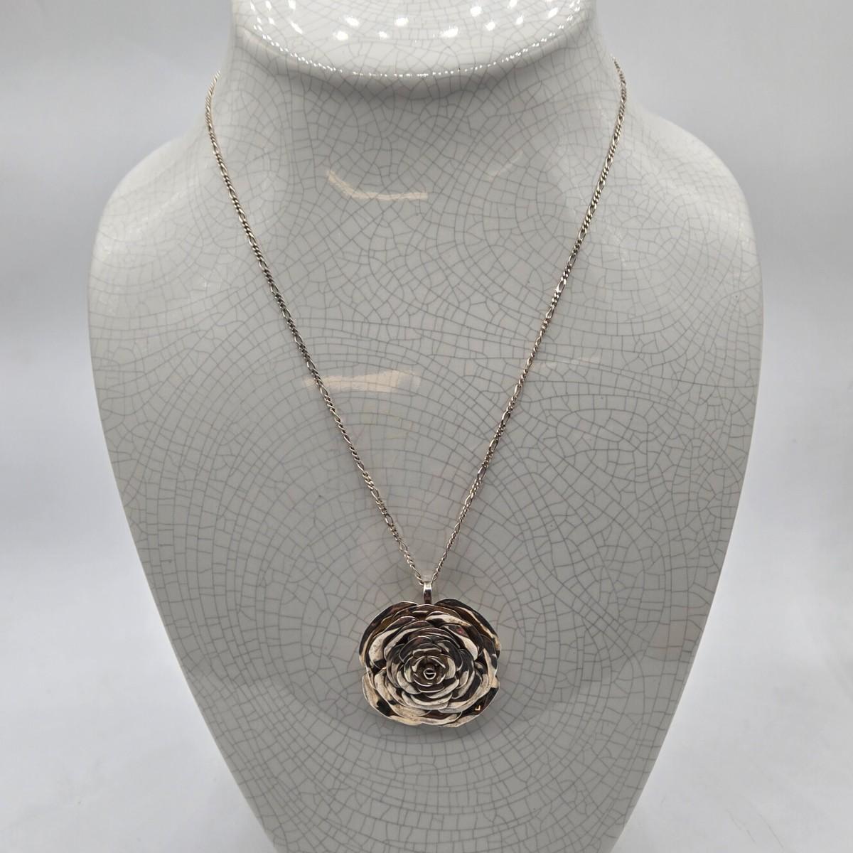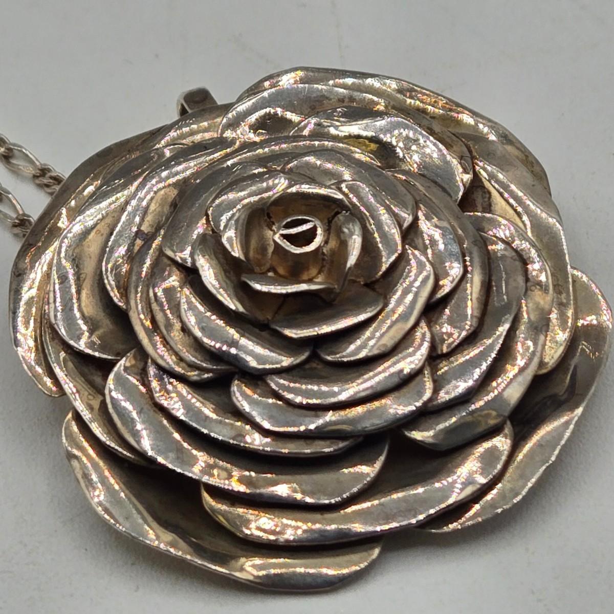 LOT 110J: Beautiful Silver Rose Pendant on 20 Inch Sterling Silver Chain / 23.2 Grams