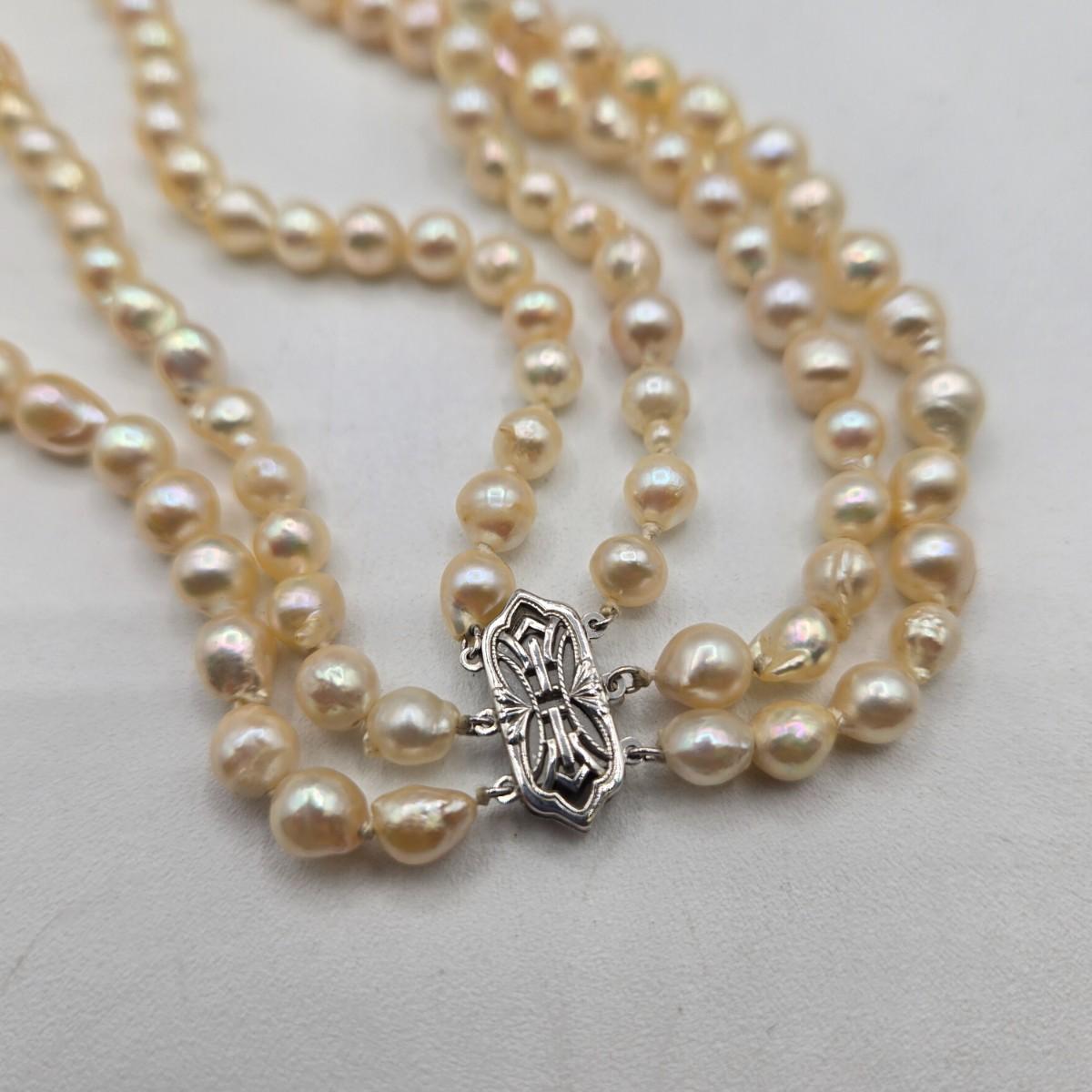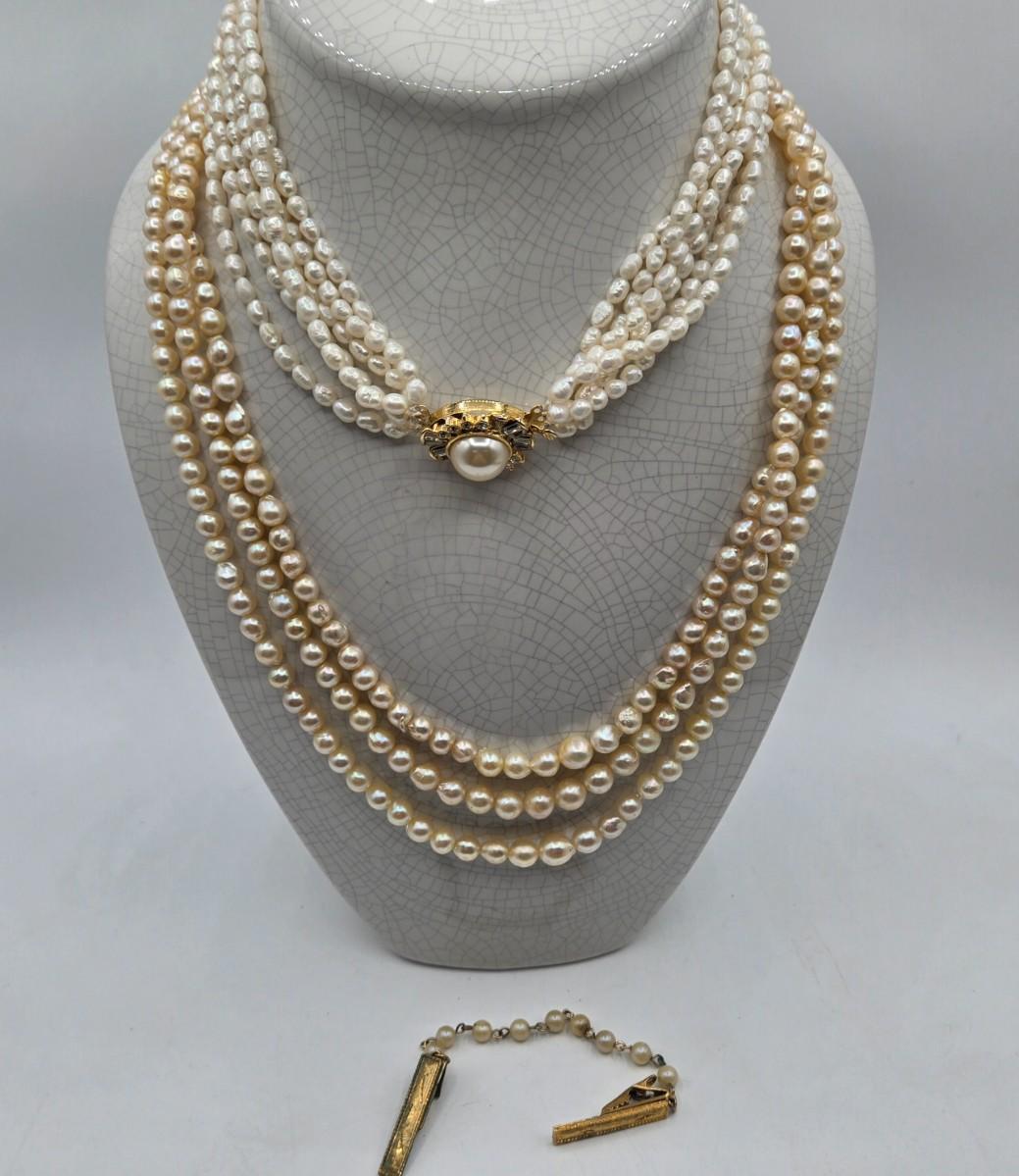 LOT 115J: Two Multistrand Faux Pearl Necklaces and Sweater Clip