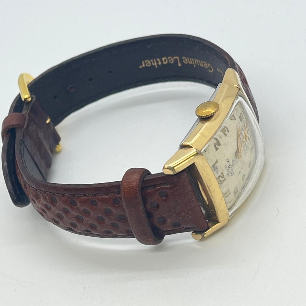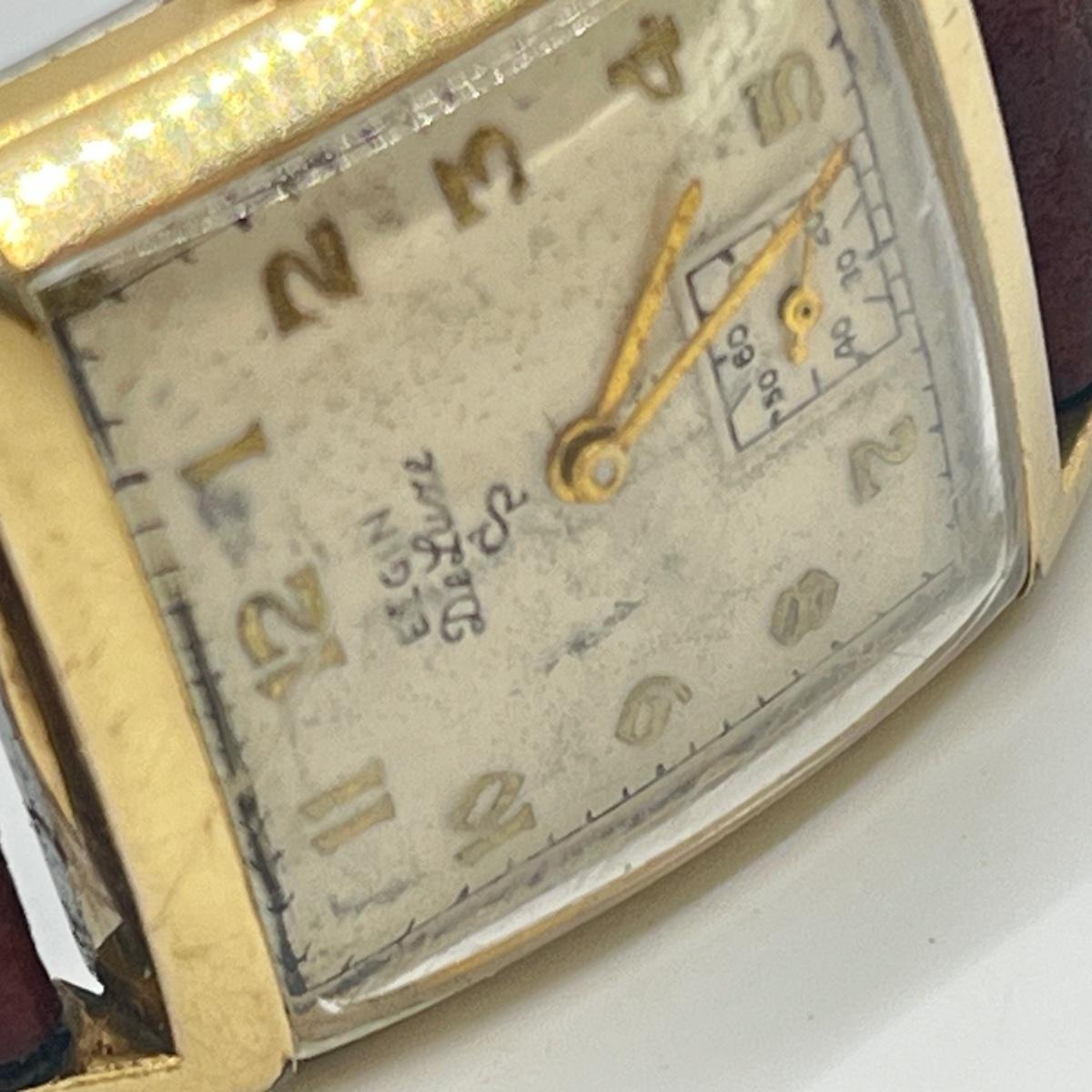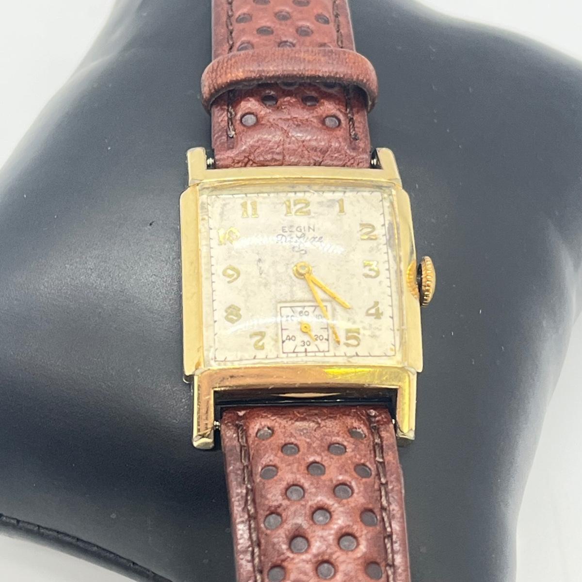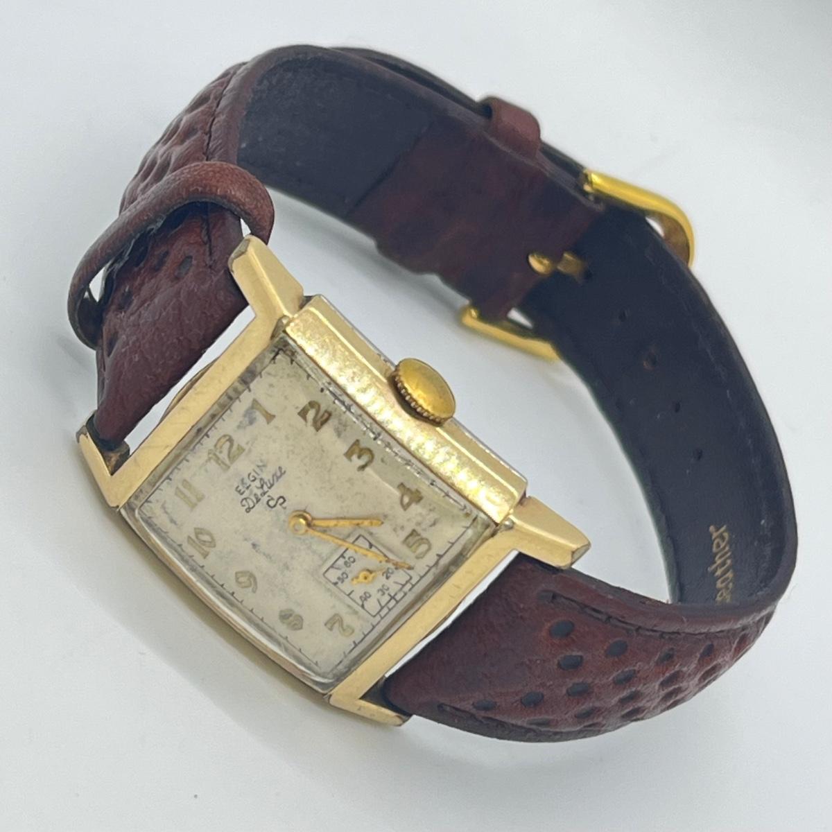 LOT 122: Vintage Elgin DeLuxe Men's Watch w/ 10K Gold Filled Bezel and Leather Band - Winds and Ticks