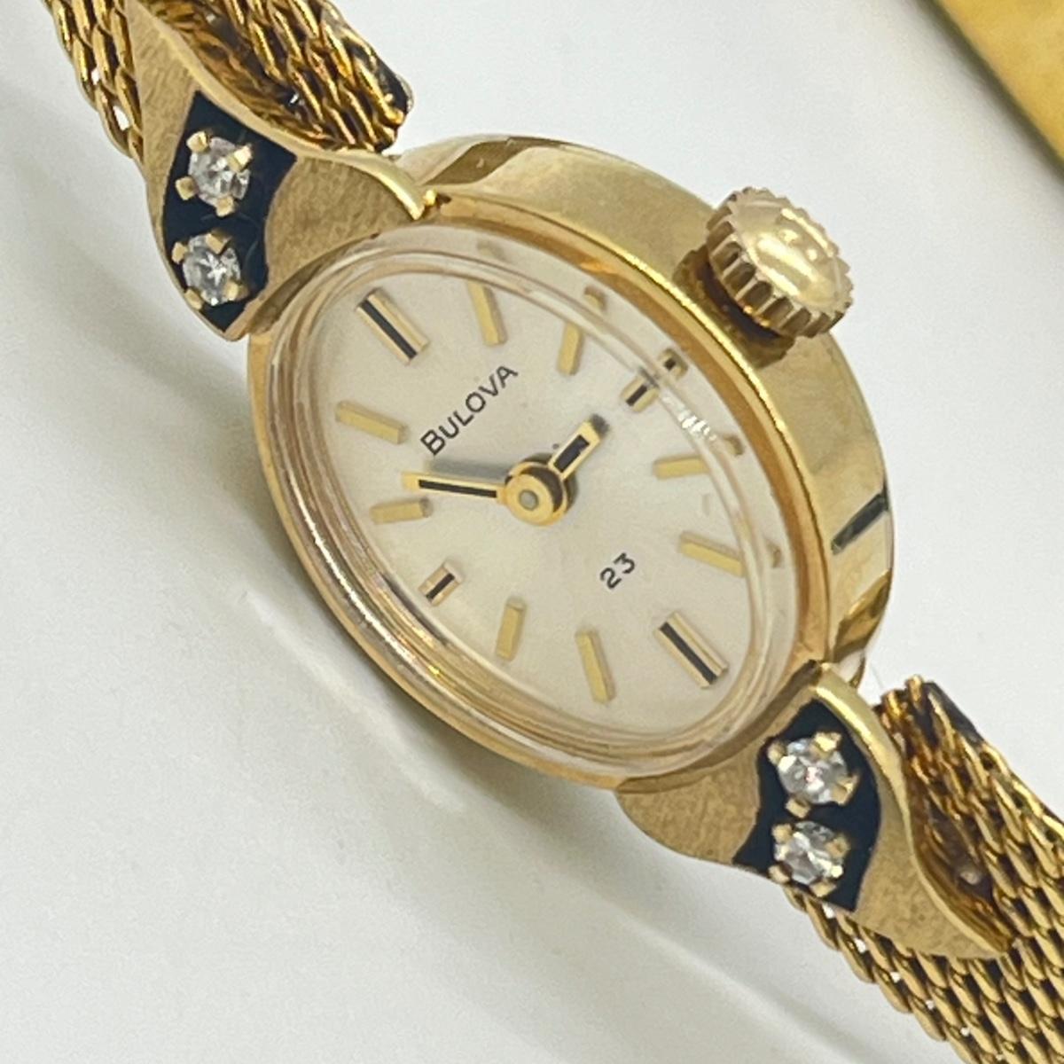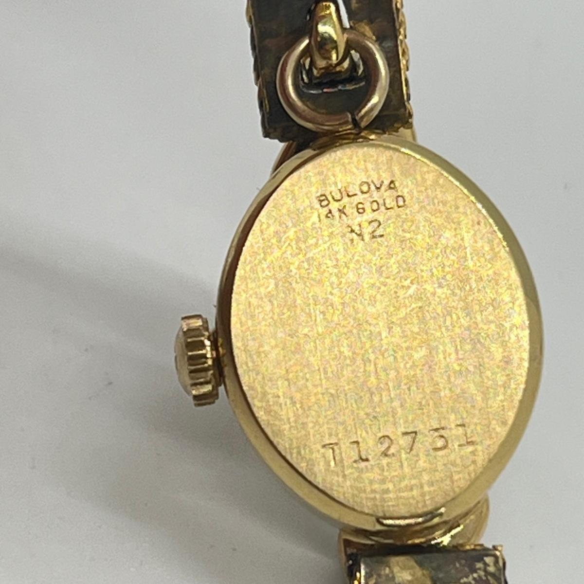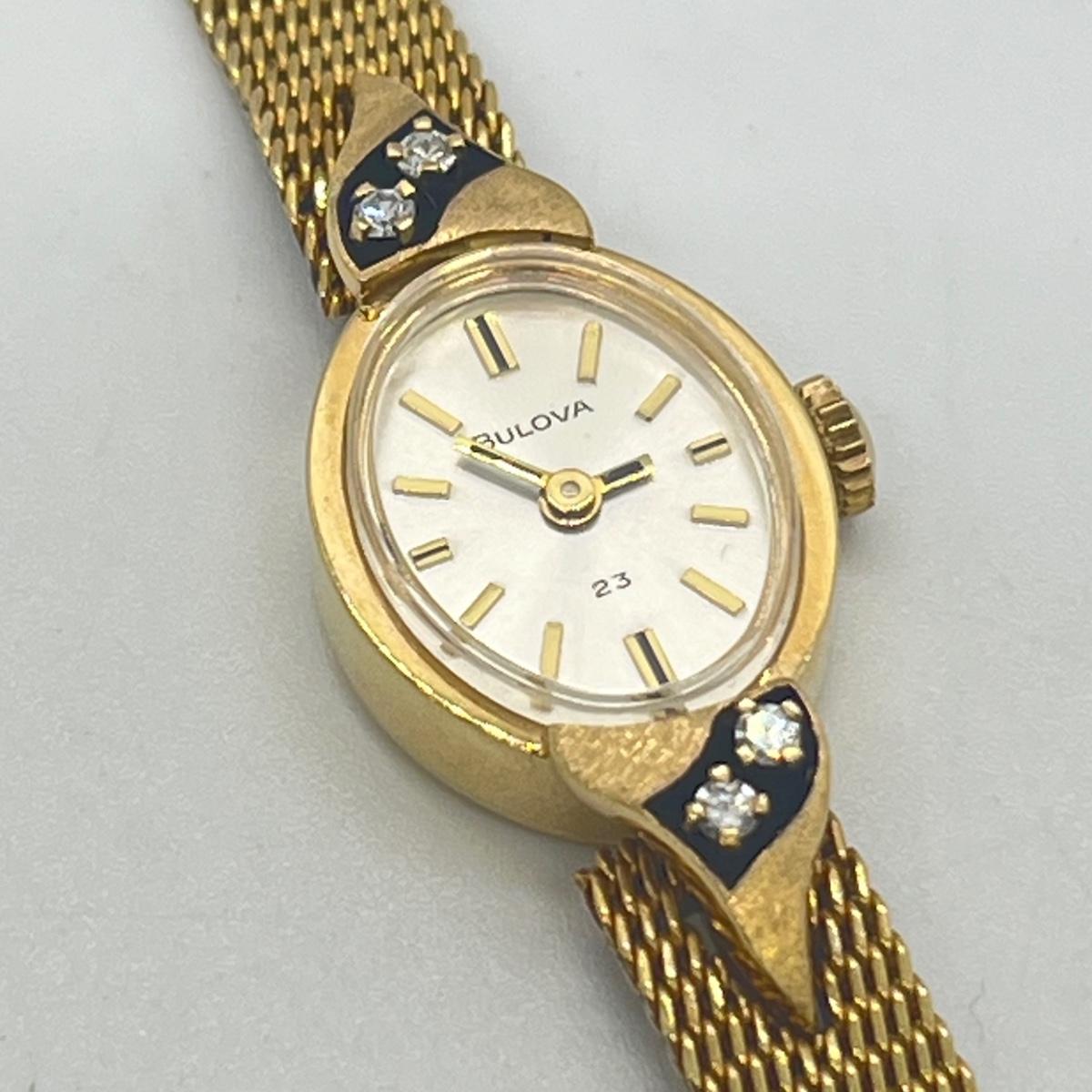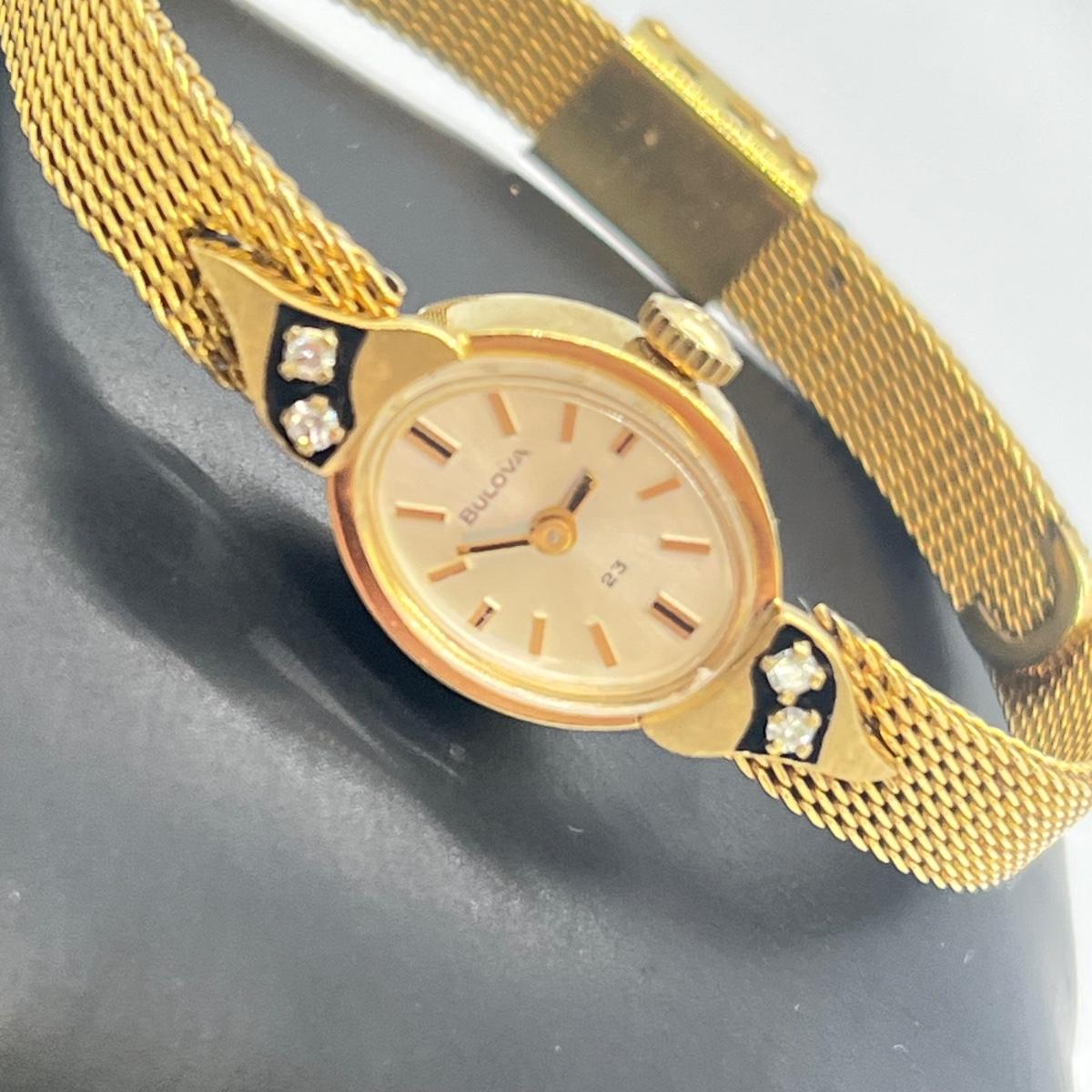 LOT 12: 14K Gold Bulova Ladies Watch w/ Diamonds on Gold Filled Band - Winds and Ticks