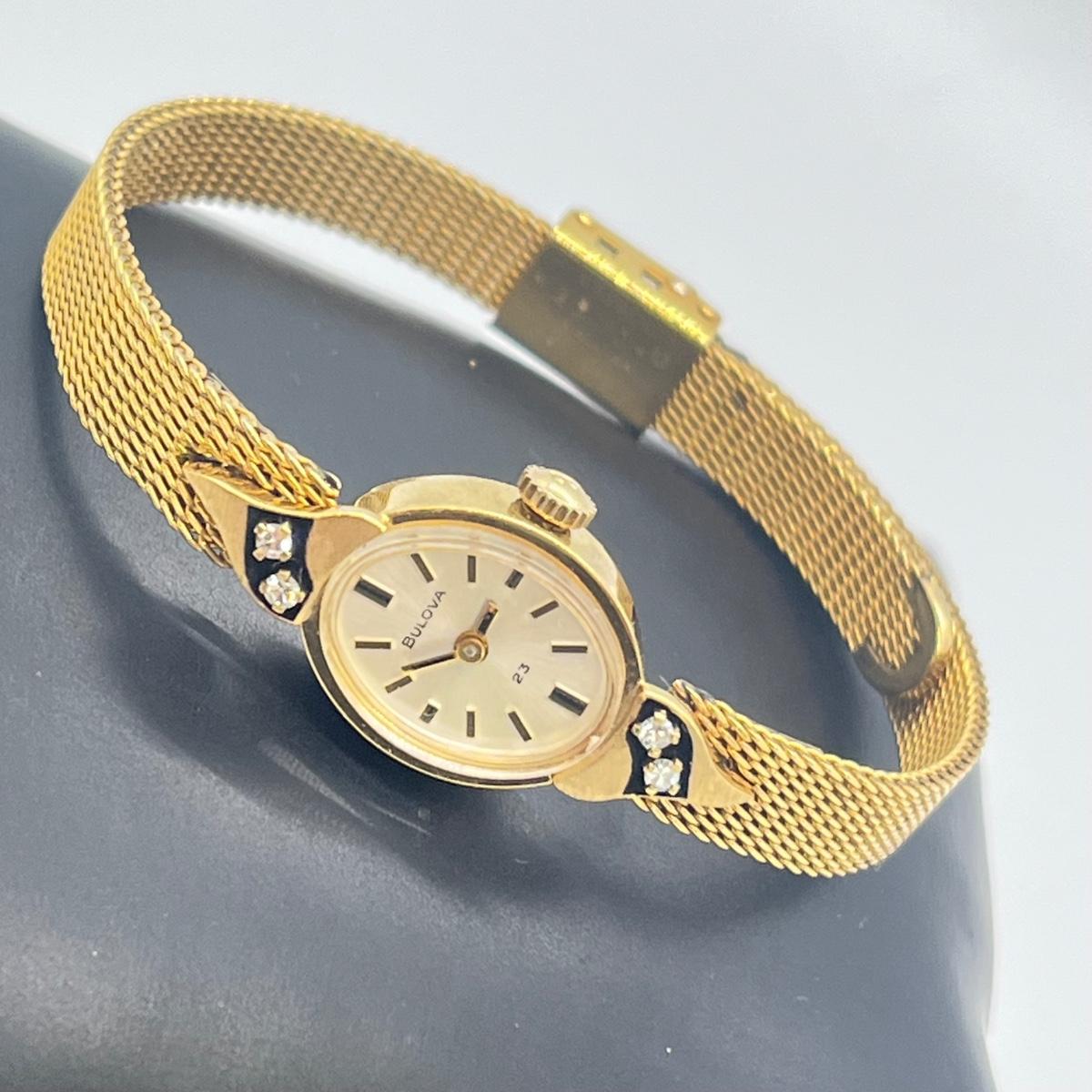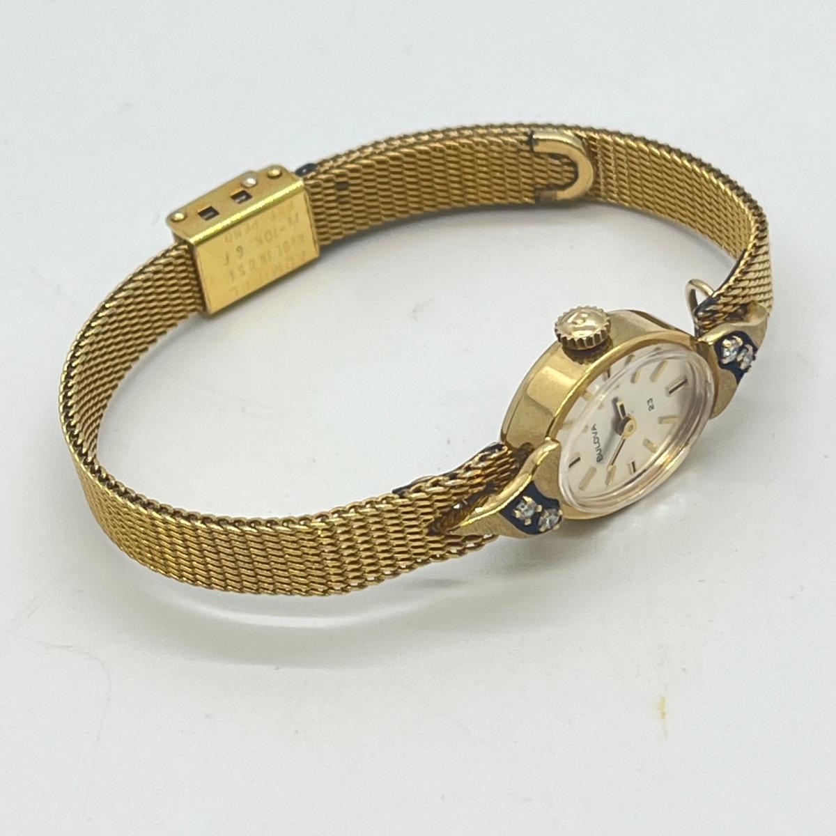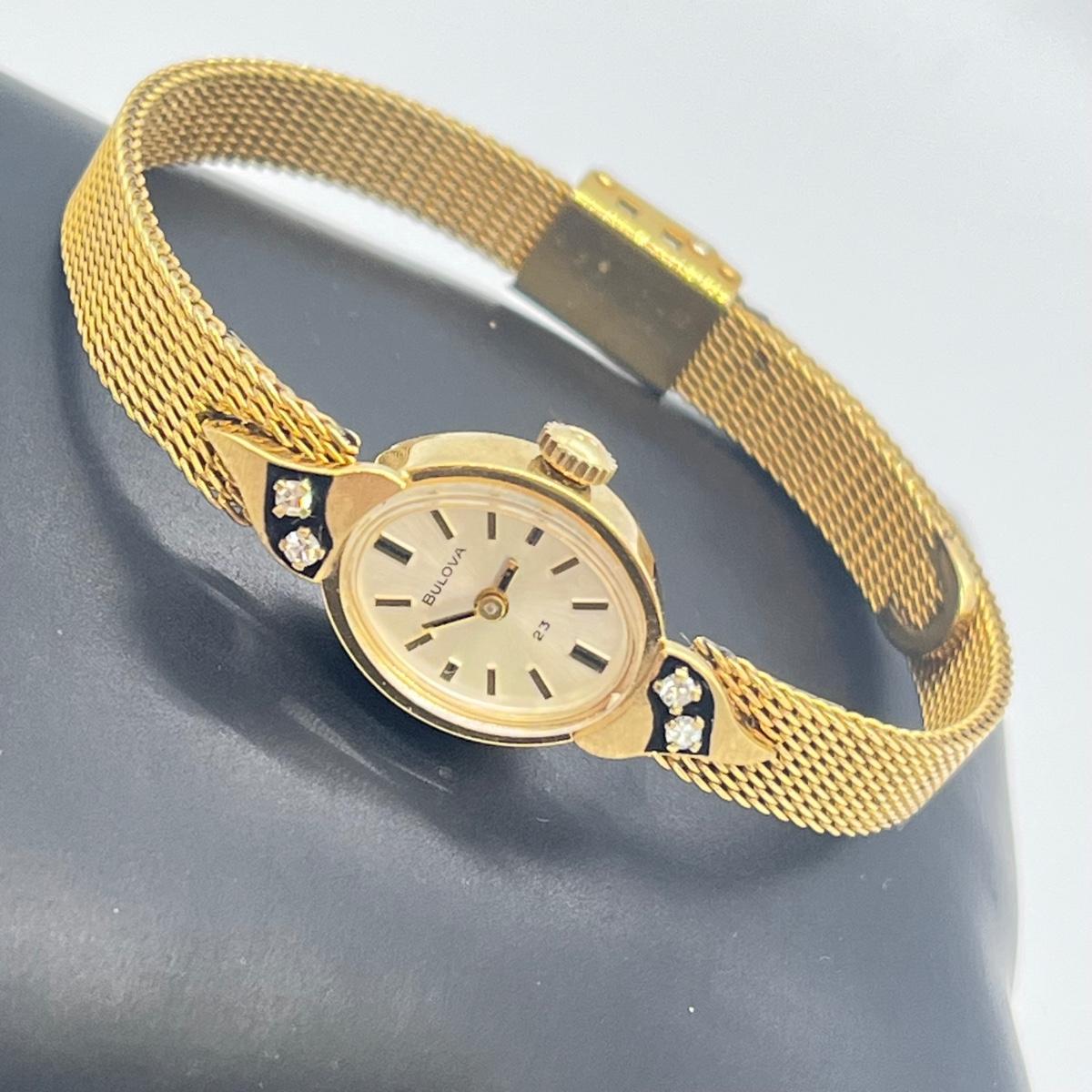 LOT 12: 14K Gold Bulova Ladies Watch w/ Diamonds on Gold Filled Band - Winds and Ticks