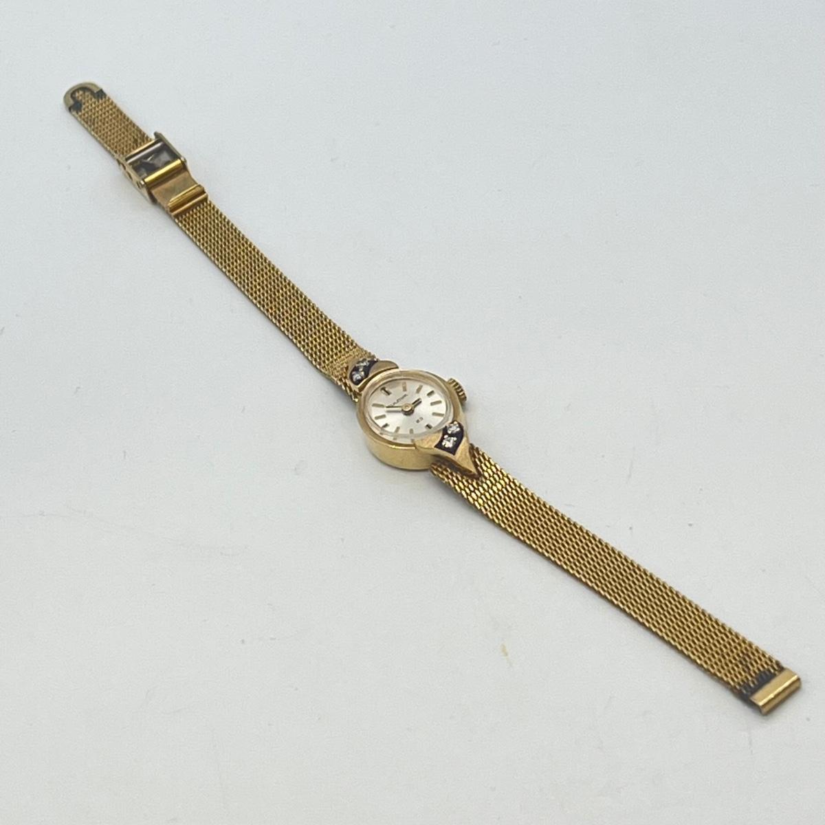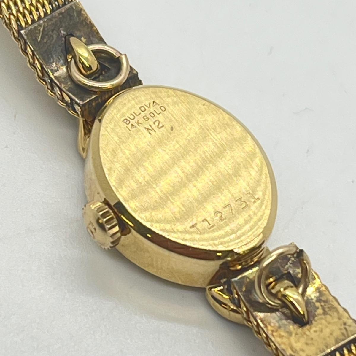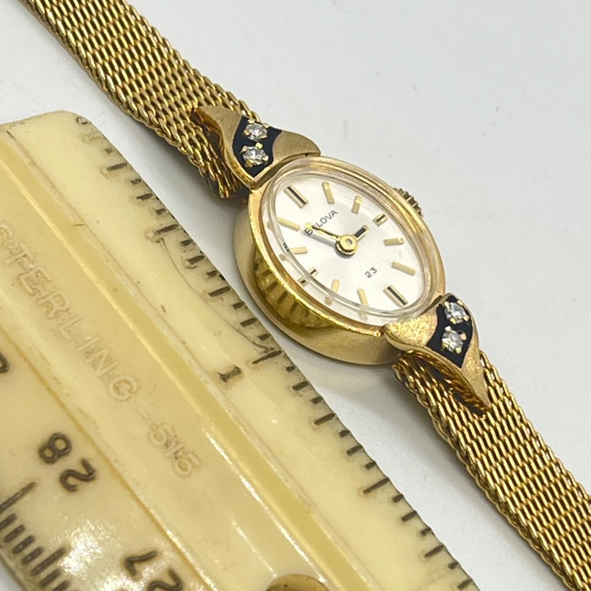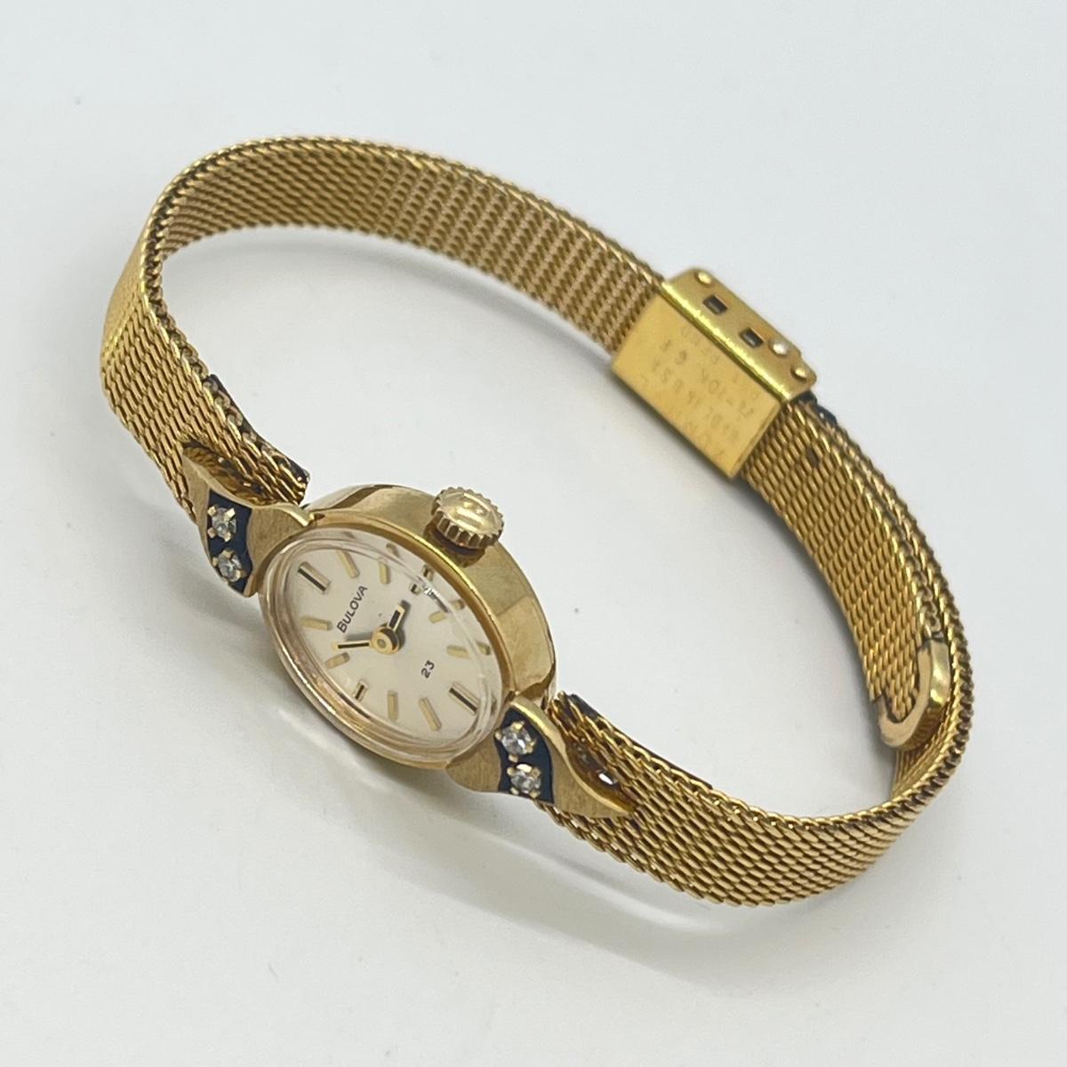 LOT 12: 14K Gold Bulova Ladies Watch w/ Diamonds on Gold Filled Band - Winds and Ticks
