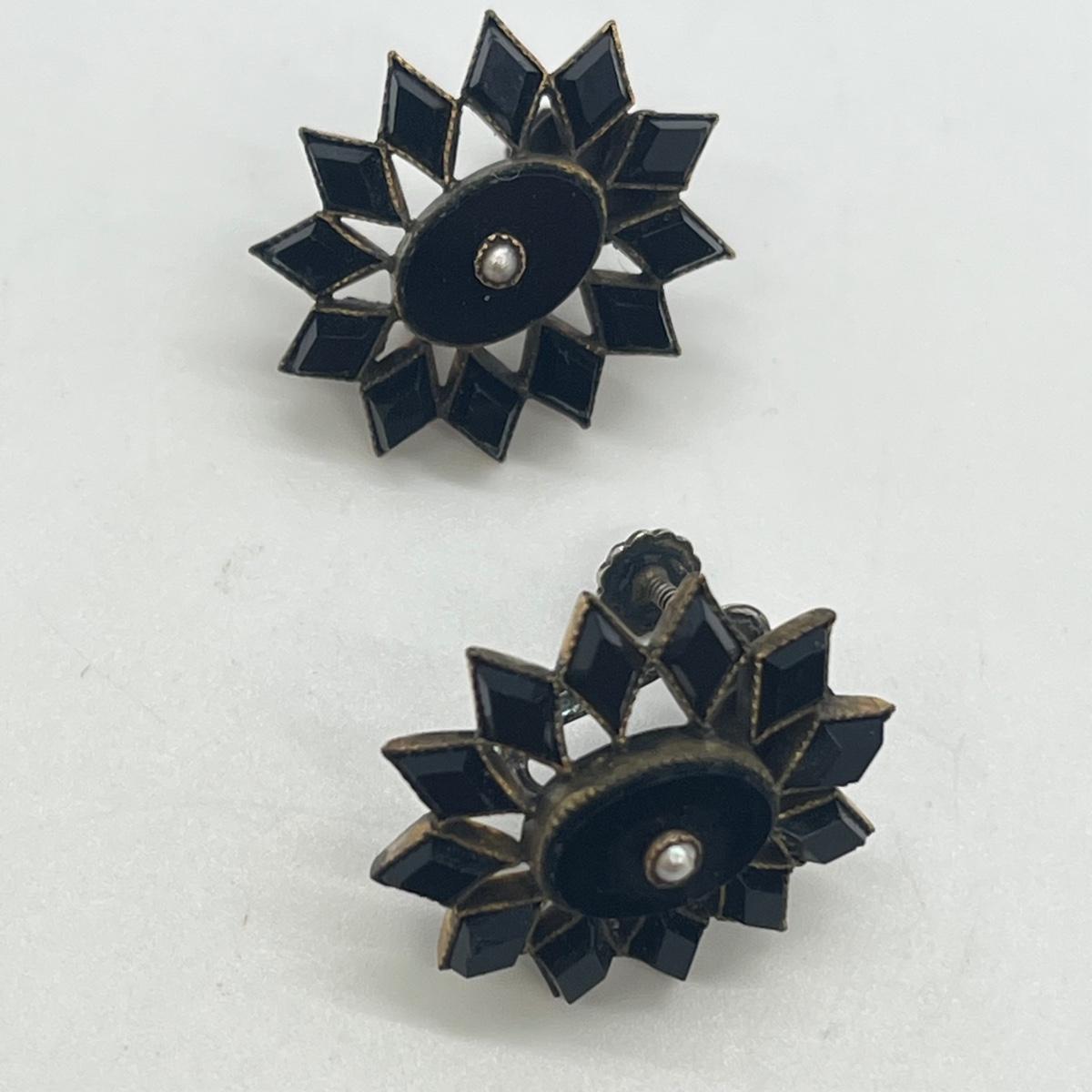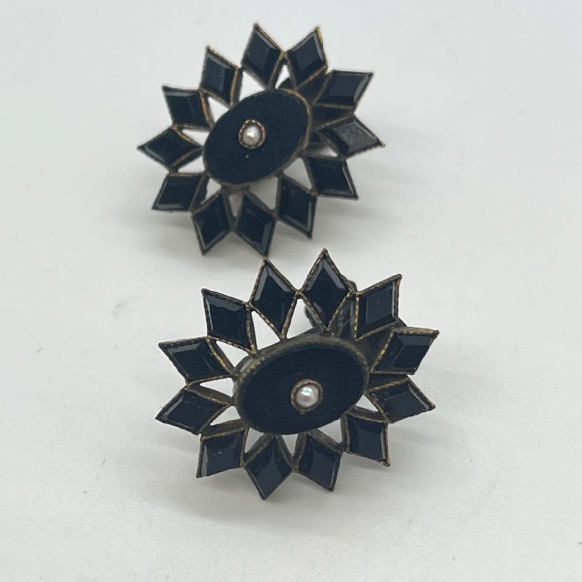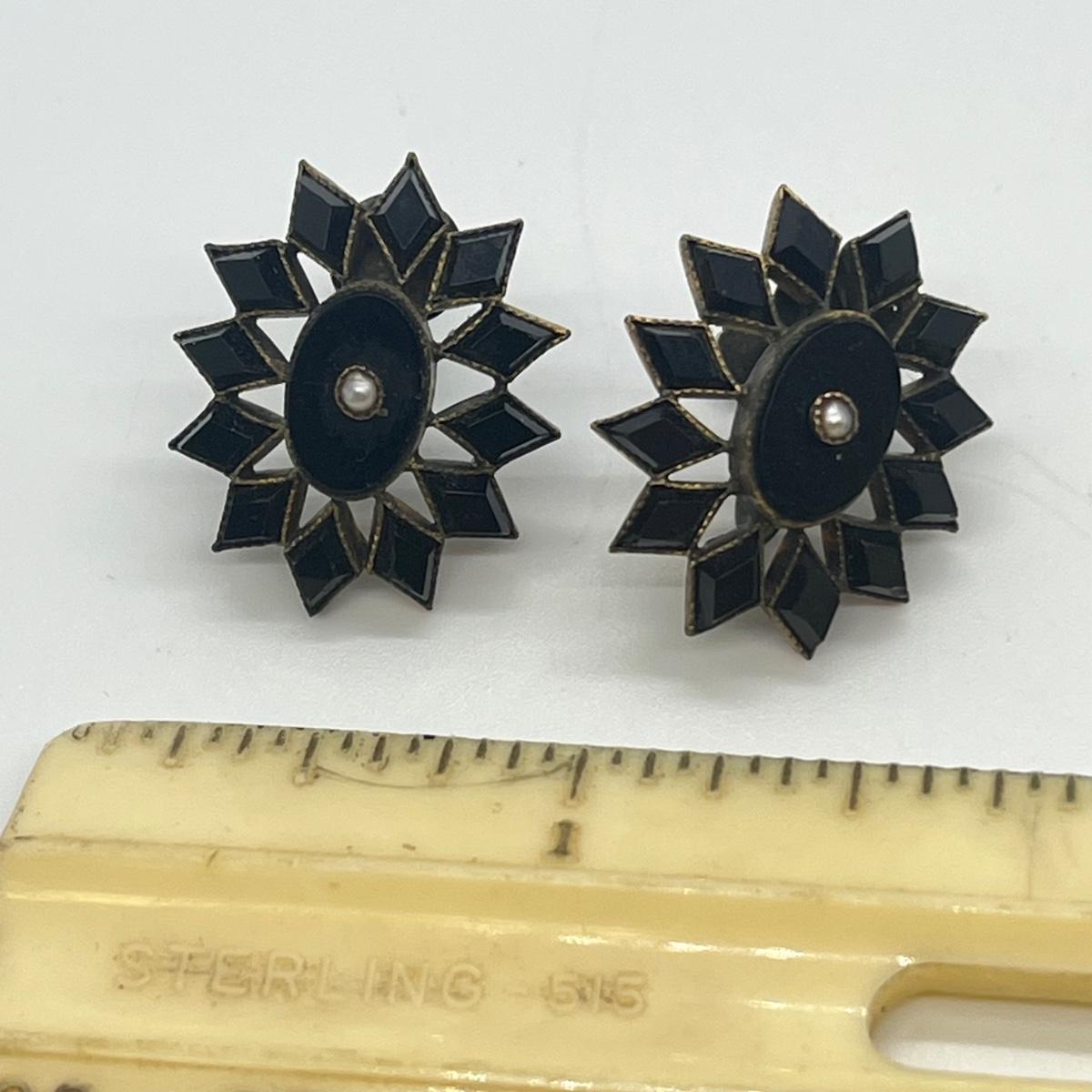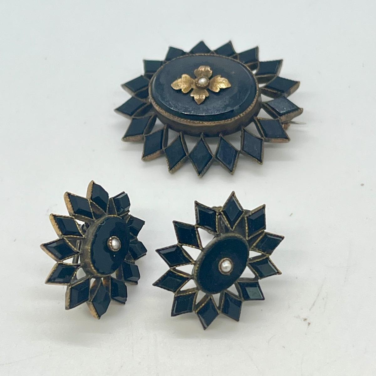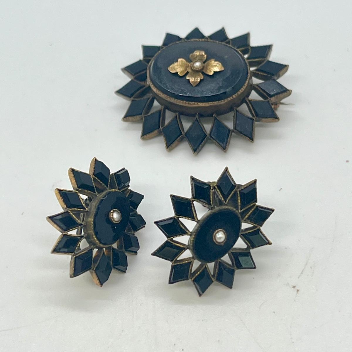 LOT 126: Vintage Mourning Pin and Screwback Earrings