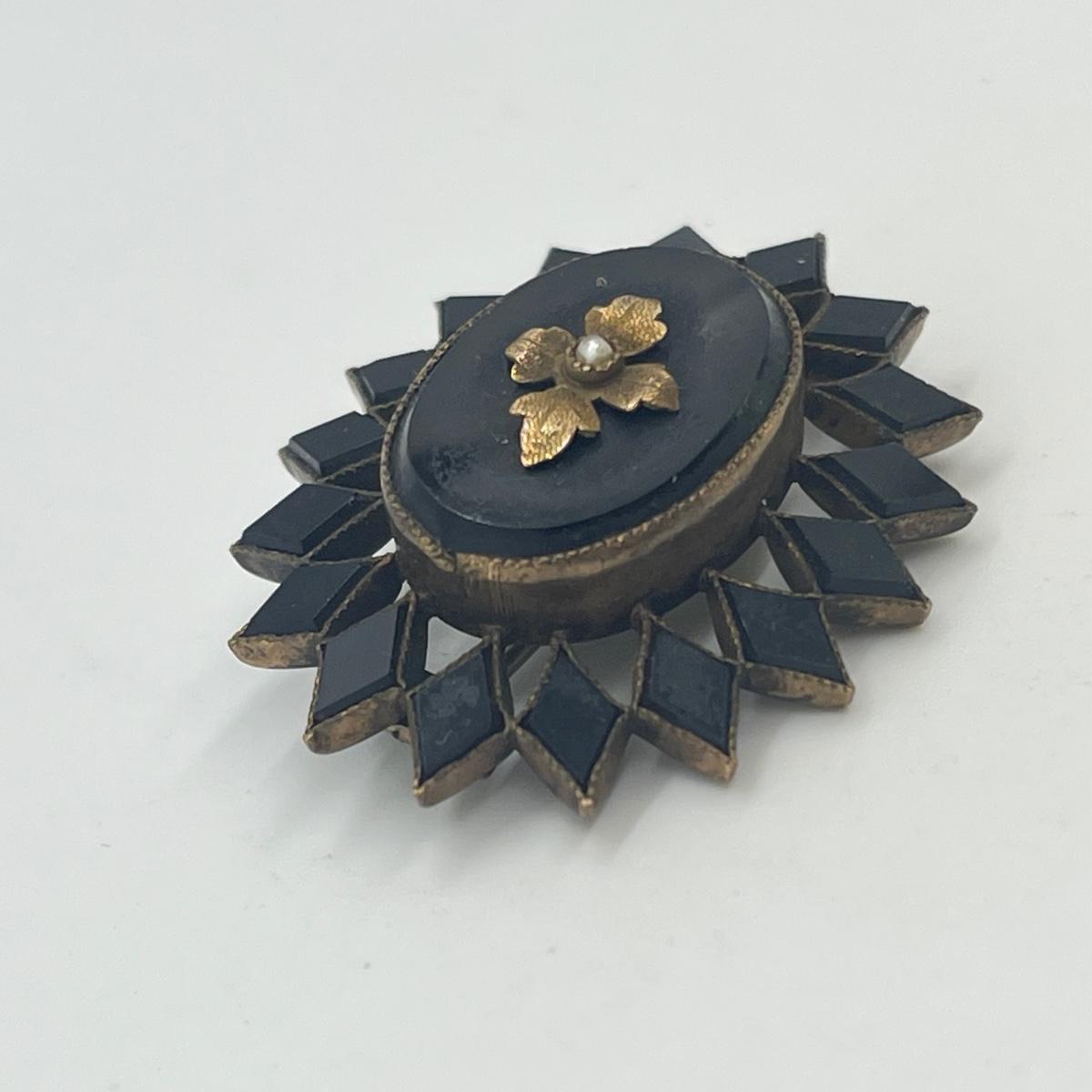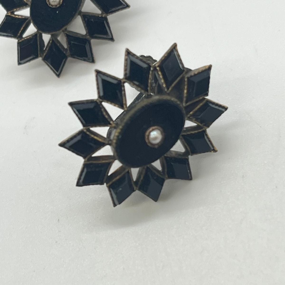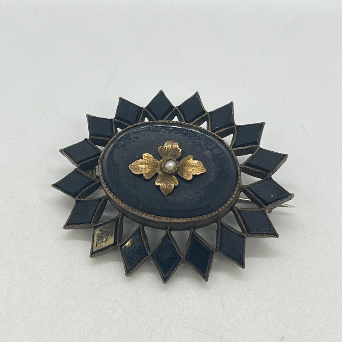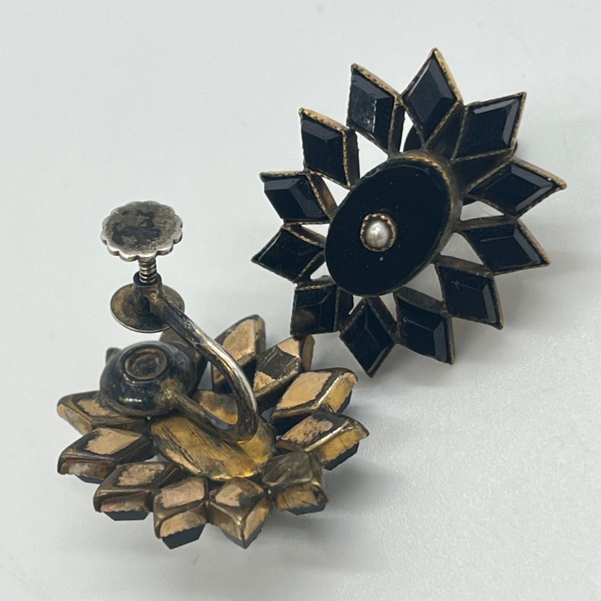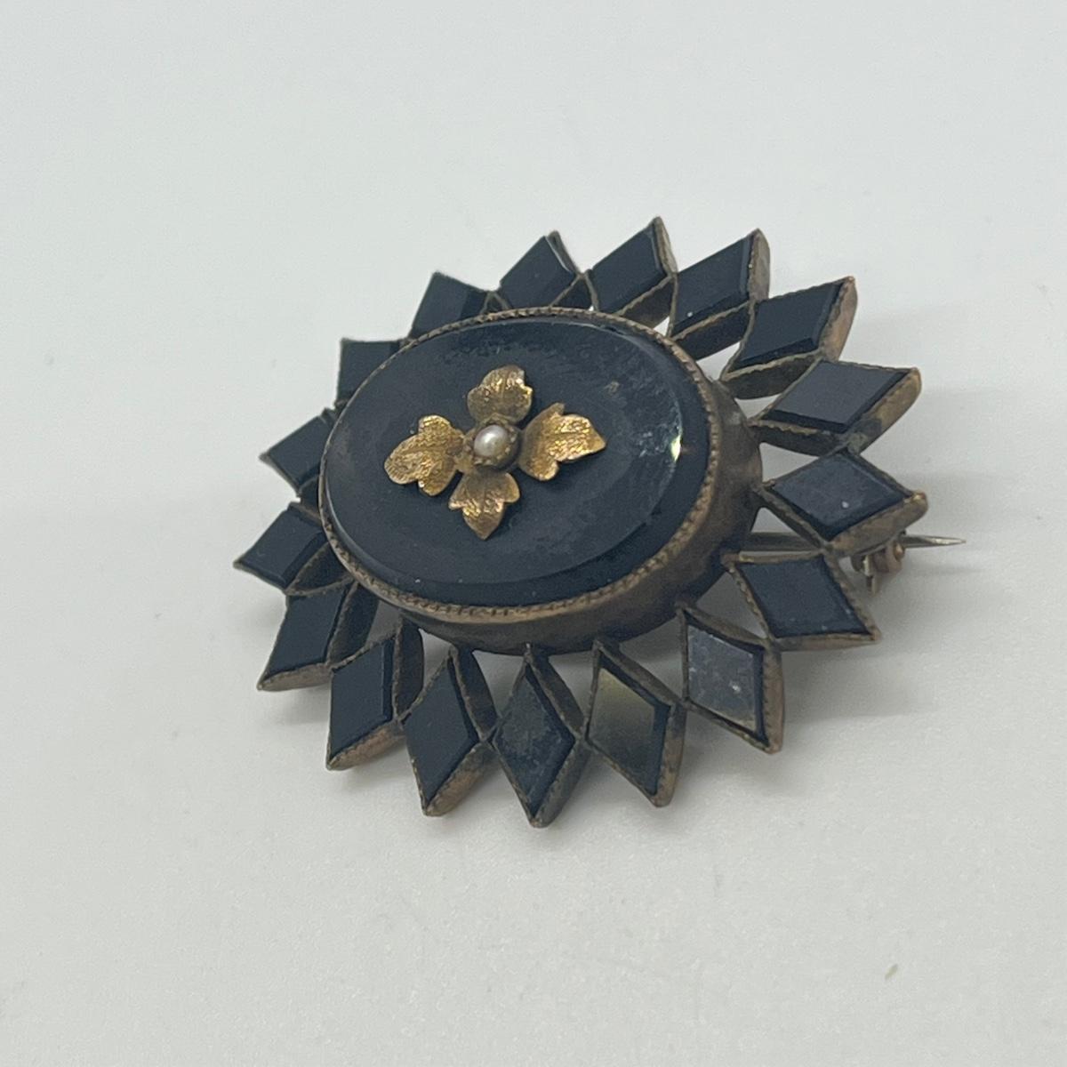 LOT 126: Vintage Mourning Pin and Screwback Earrings