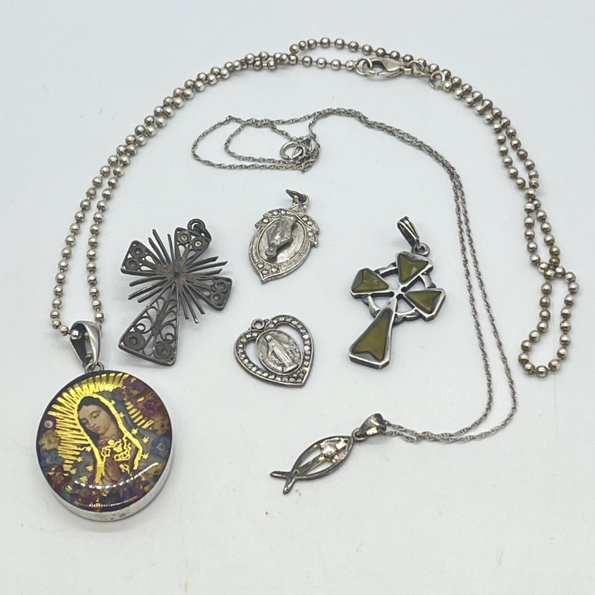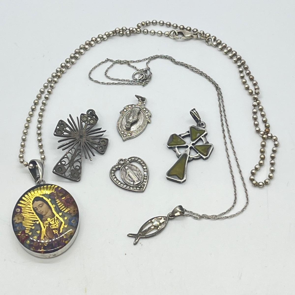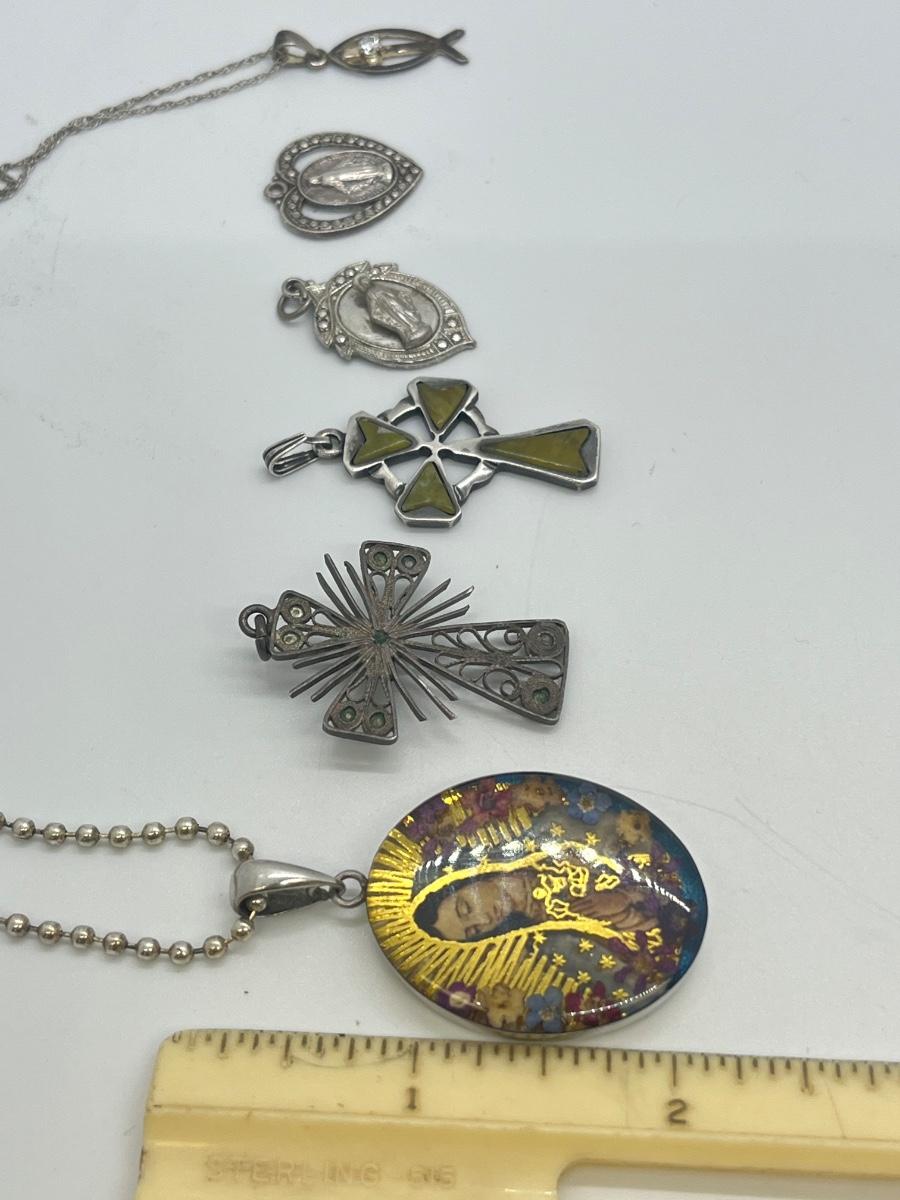 LOT 128: Sterling Silver Religious Pendants and Necklaces - 29.8 gtw