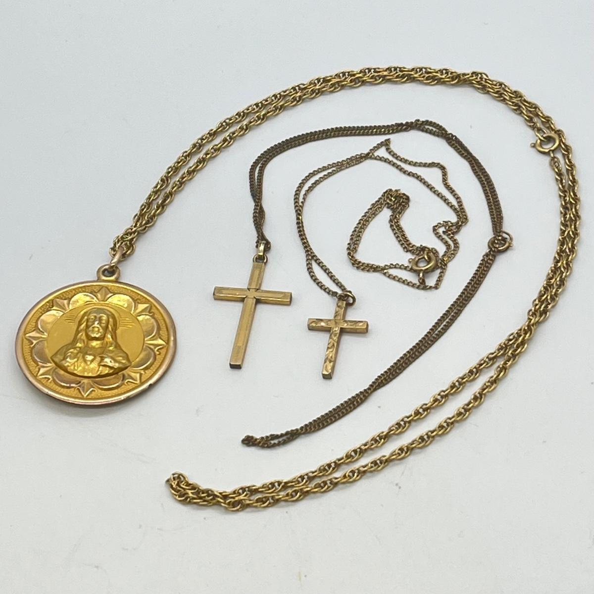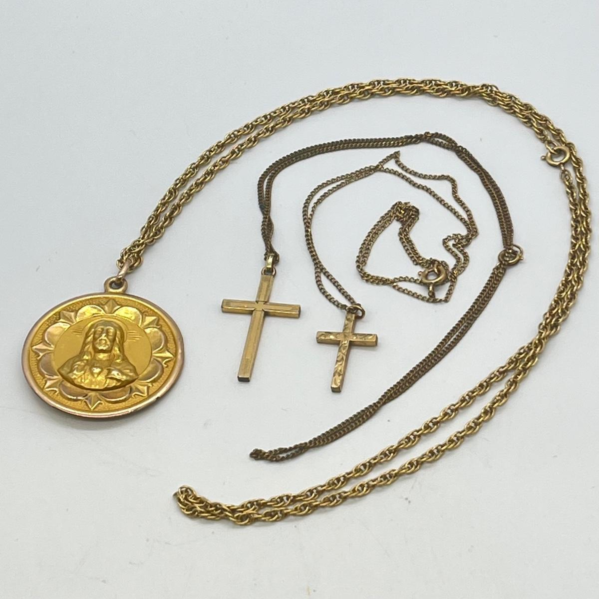 LOT 129: Gold Filled Neckaces w/ Religious Pendants
