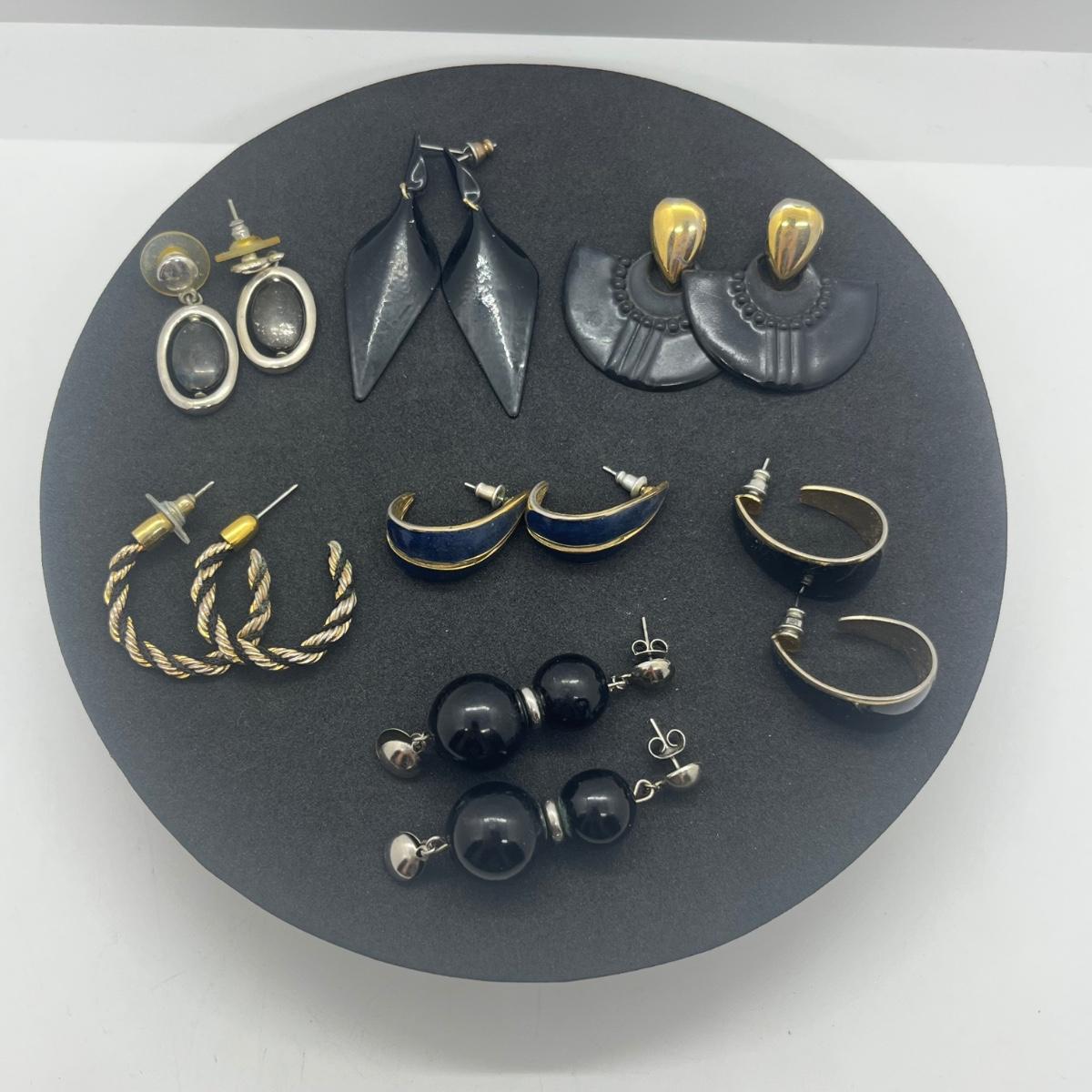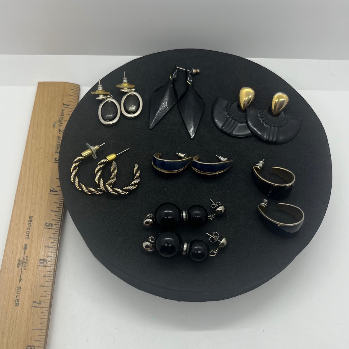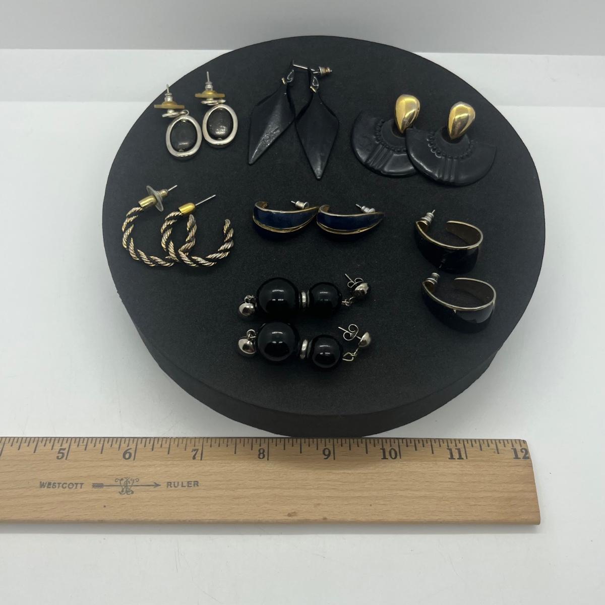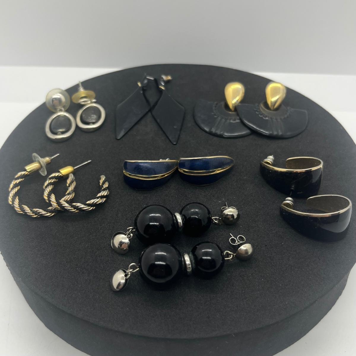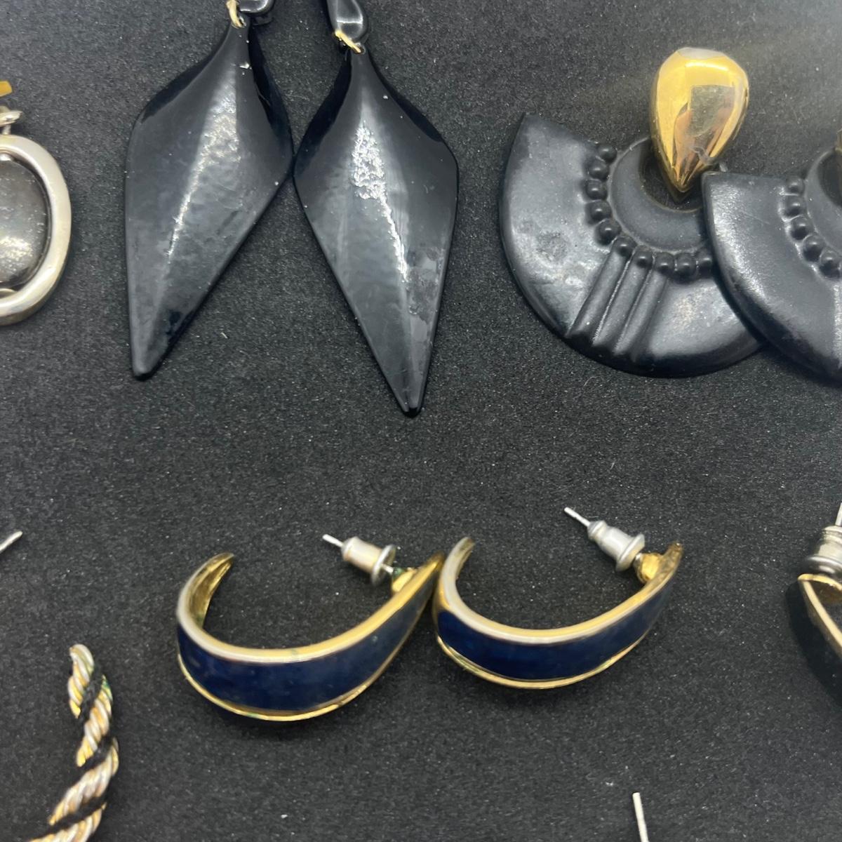 LOT 145J: Black and Gold Toned Pierced Earring Collection