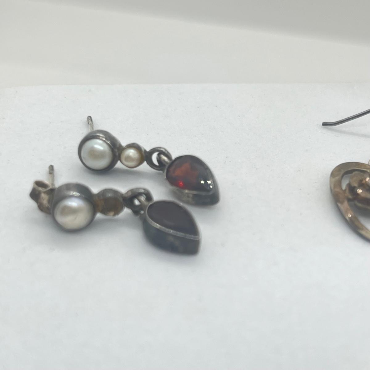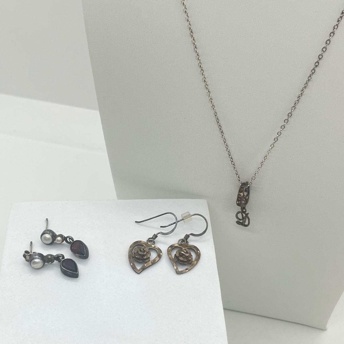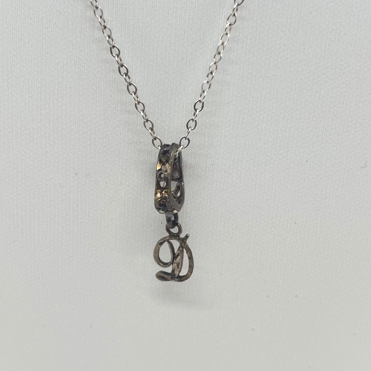 LOT 150J: Sterling Necklace with "D" Pendant and Two Pair Sterling Pierced Earrings - 7.4 GTW - 20" Chain