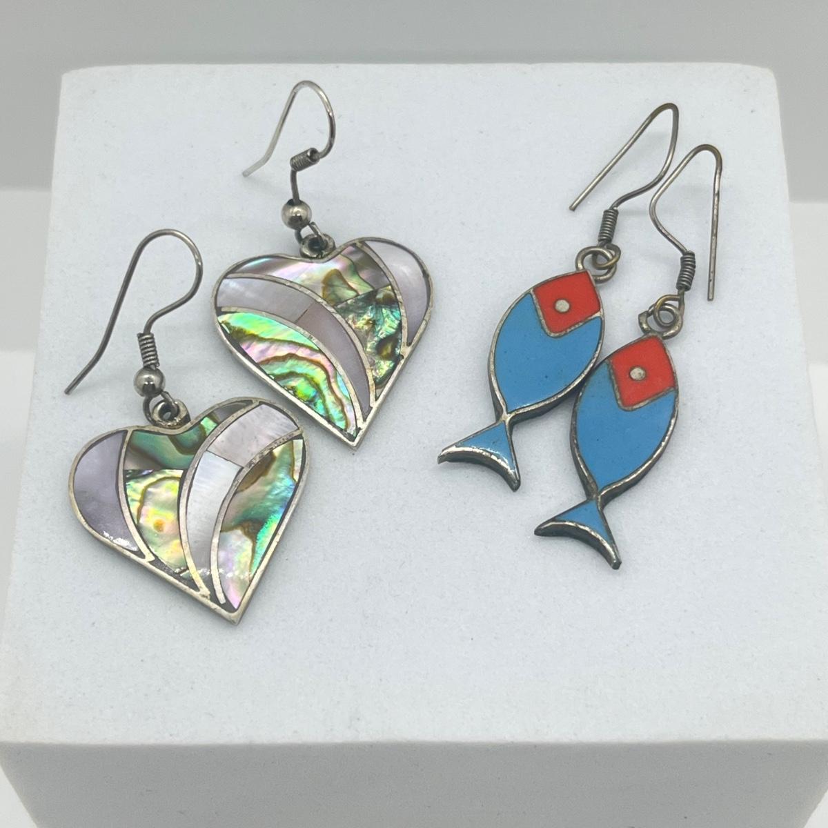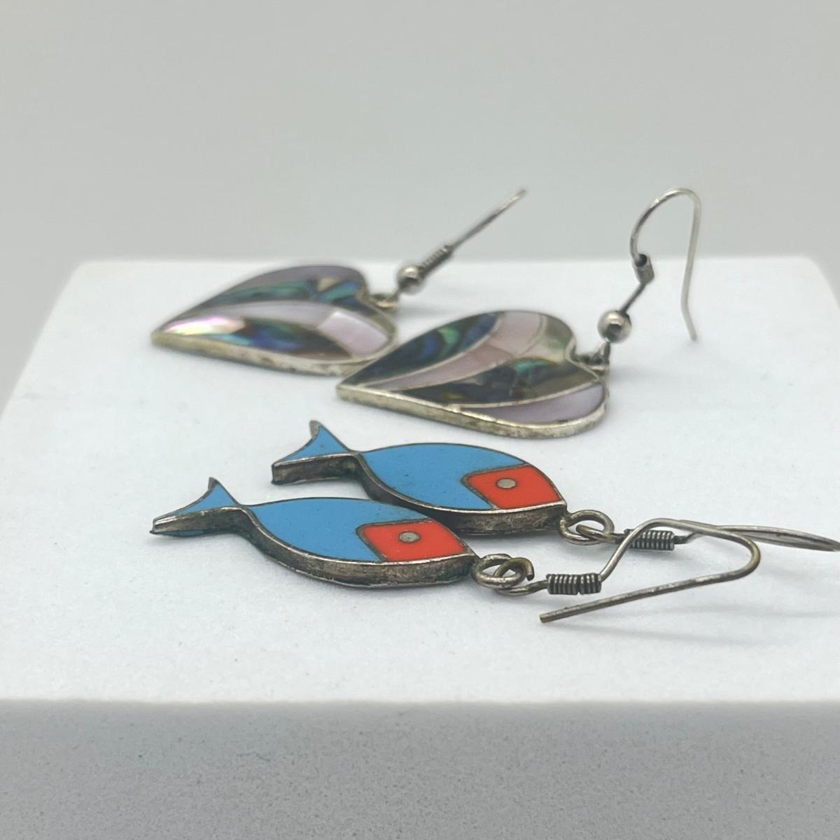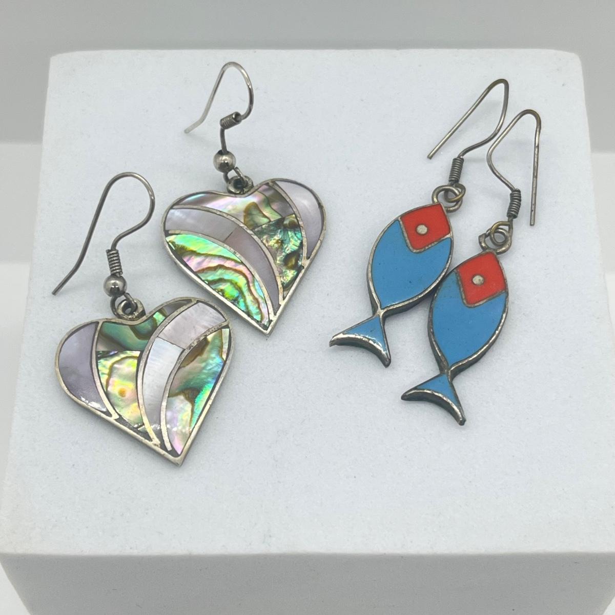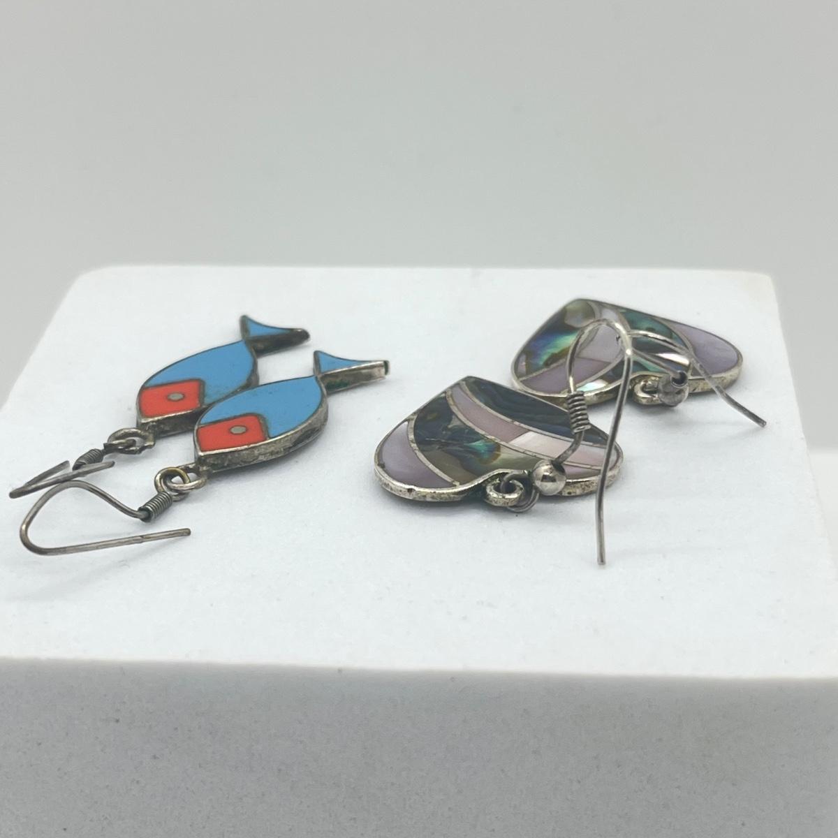 LOT 151J: Two Pairs of Mexican Sterling Silver Pierced Earrings