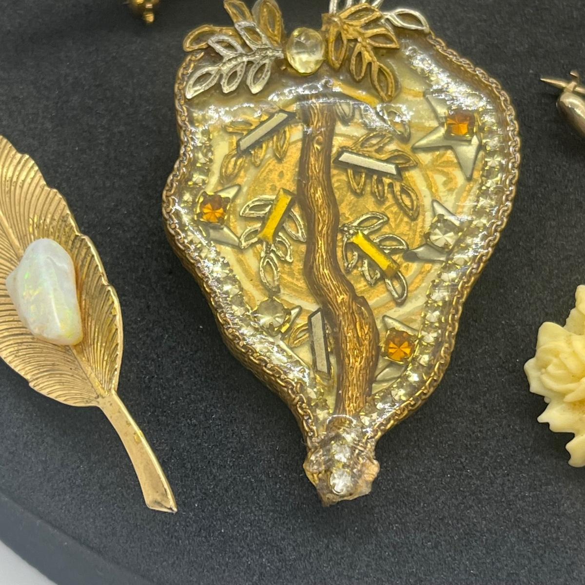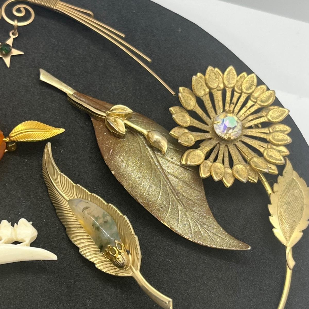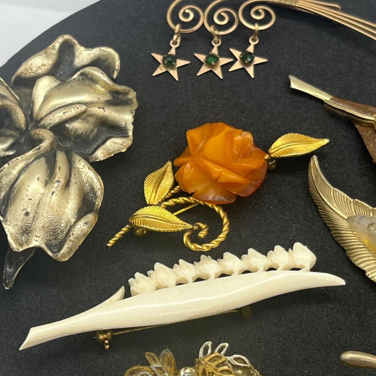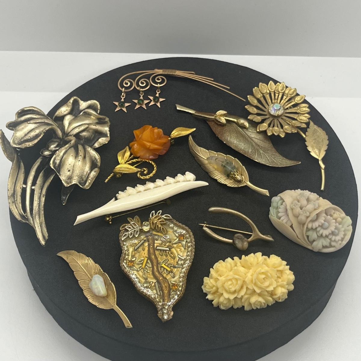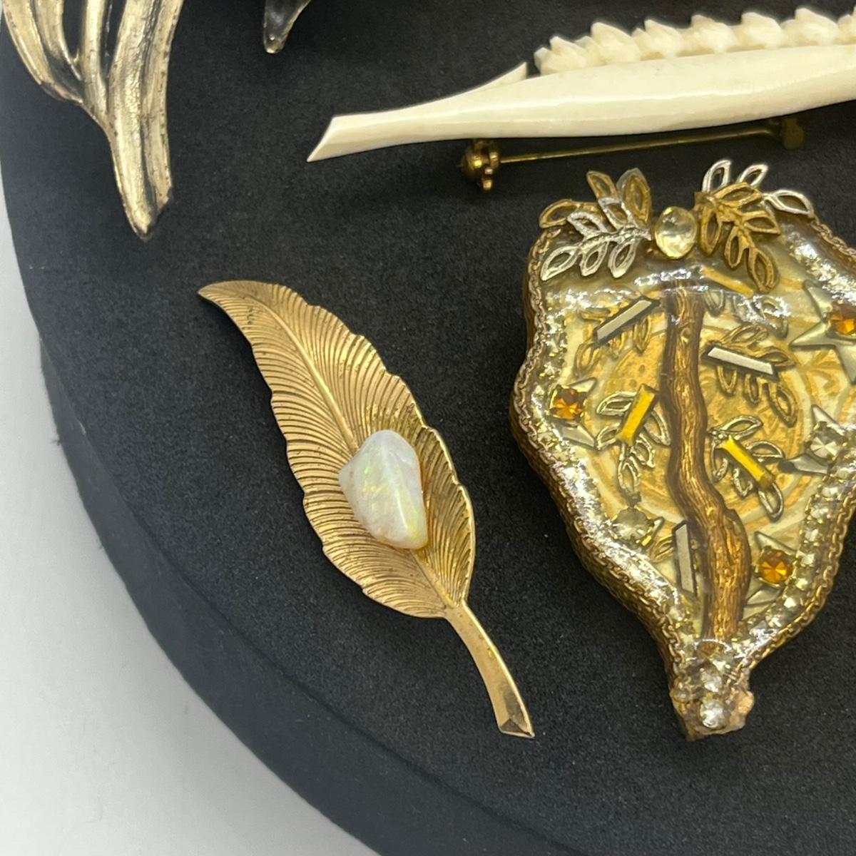 LOT 159J: 12K Gold Filled Rose Pin, Opal Leaf Pin, Wirework Pin and More!
