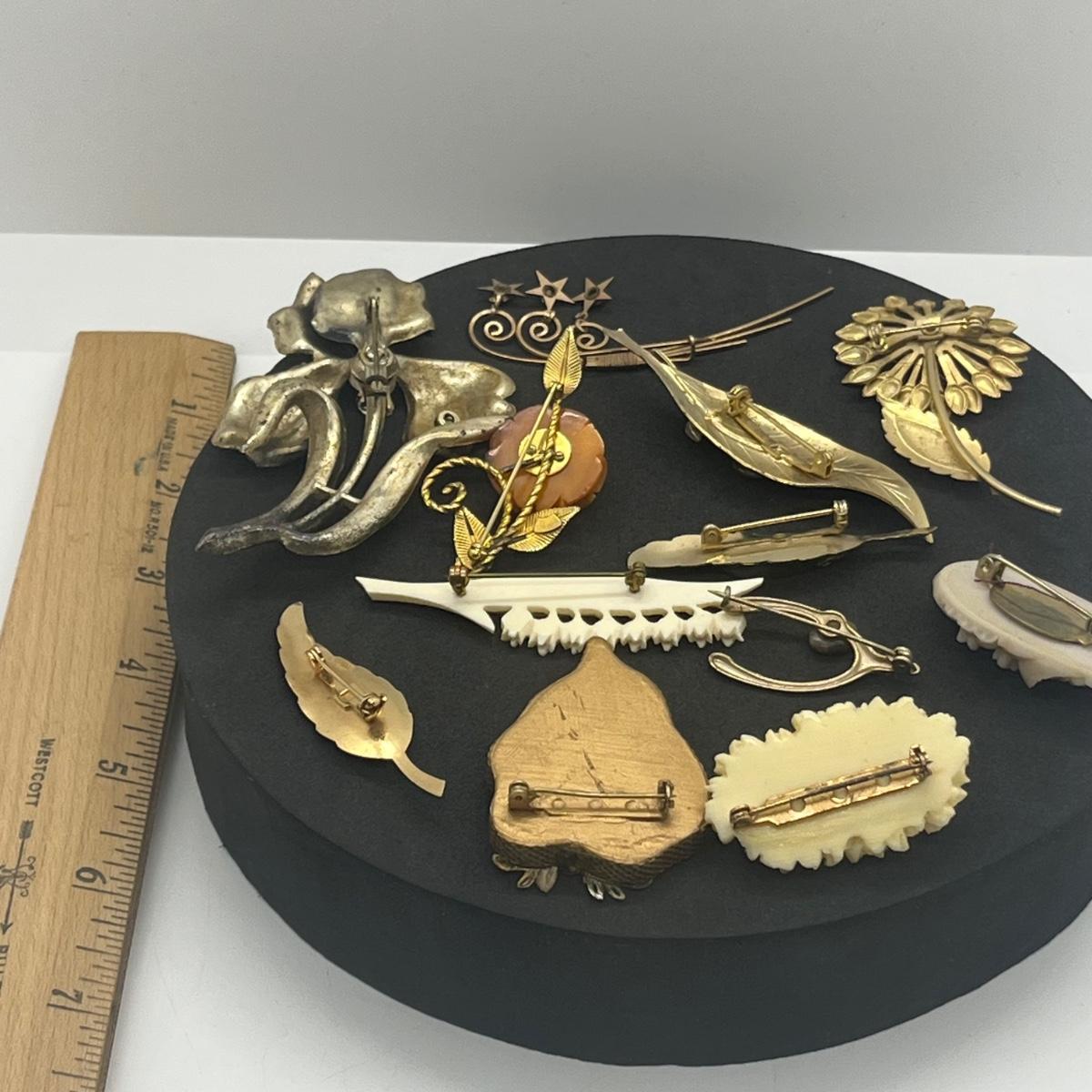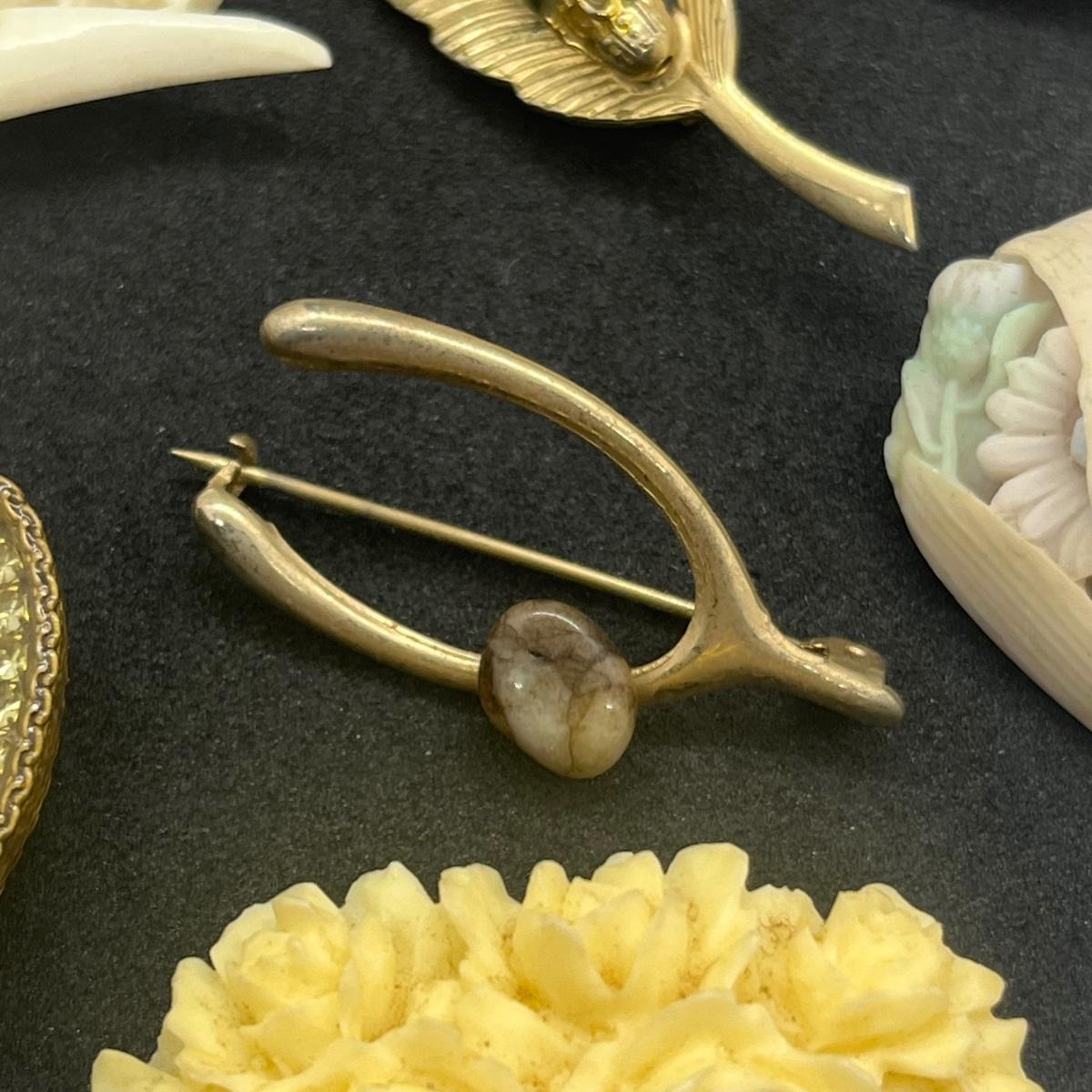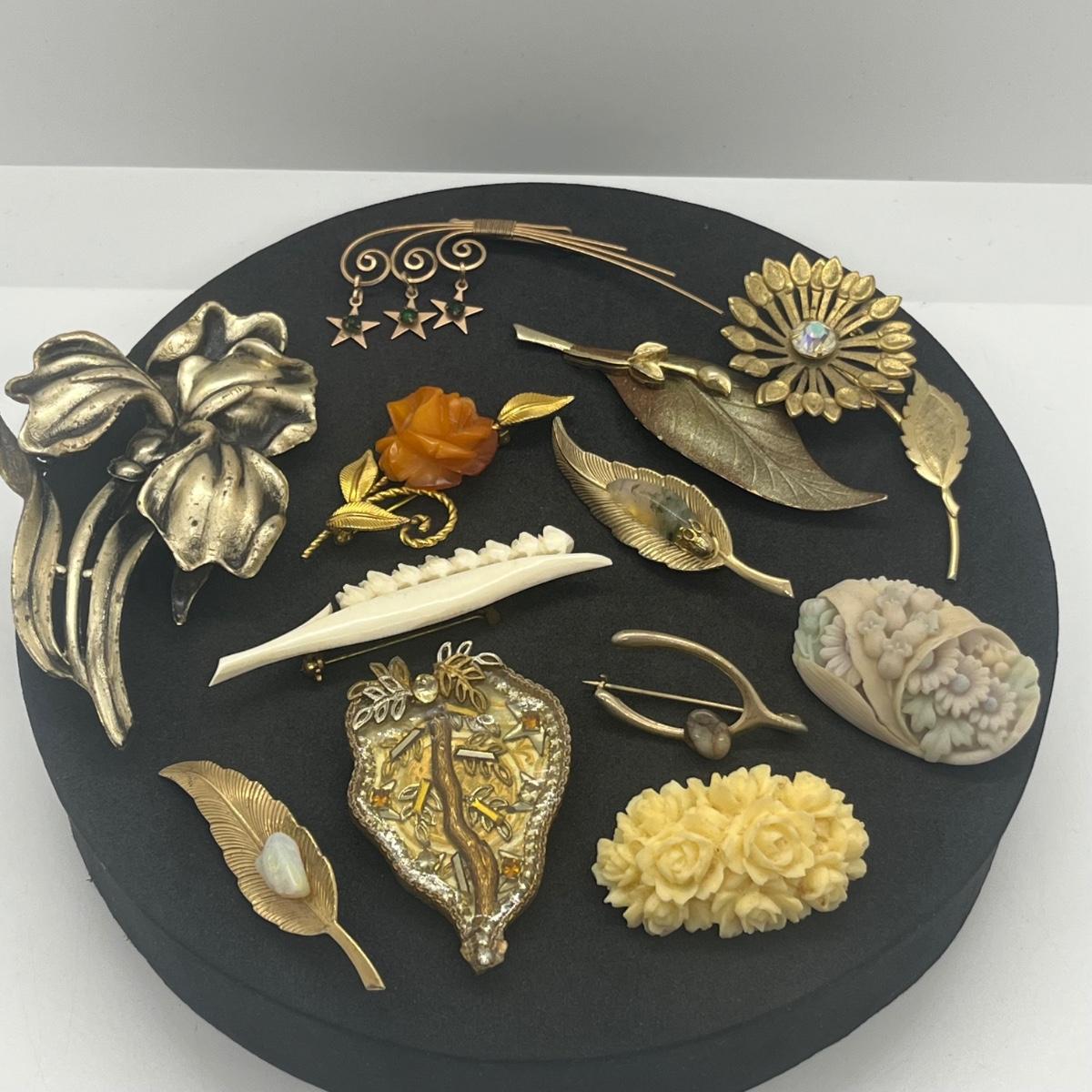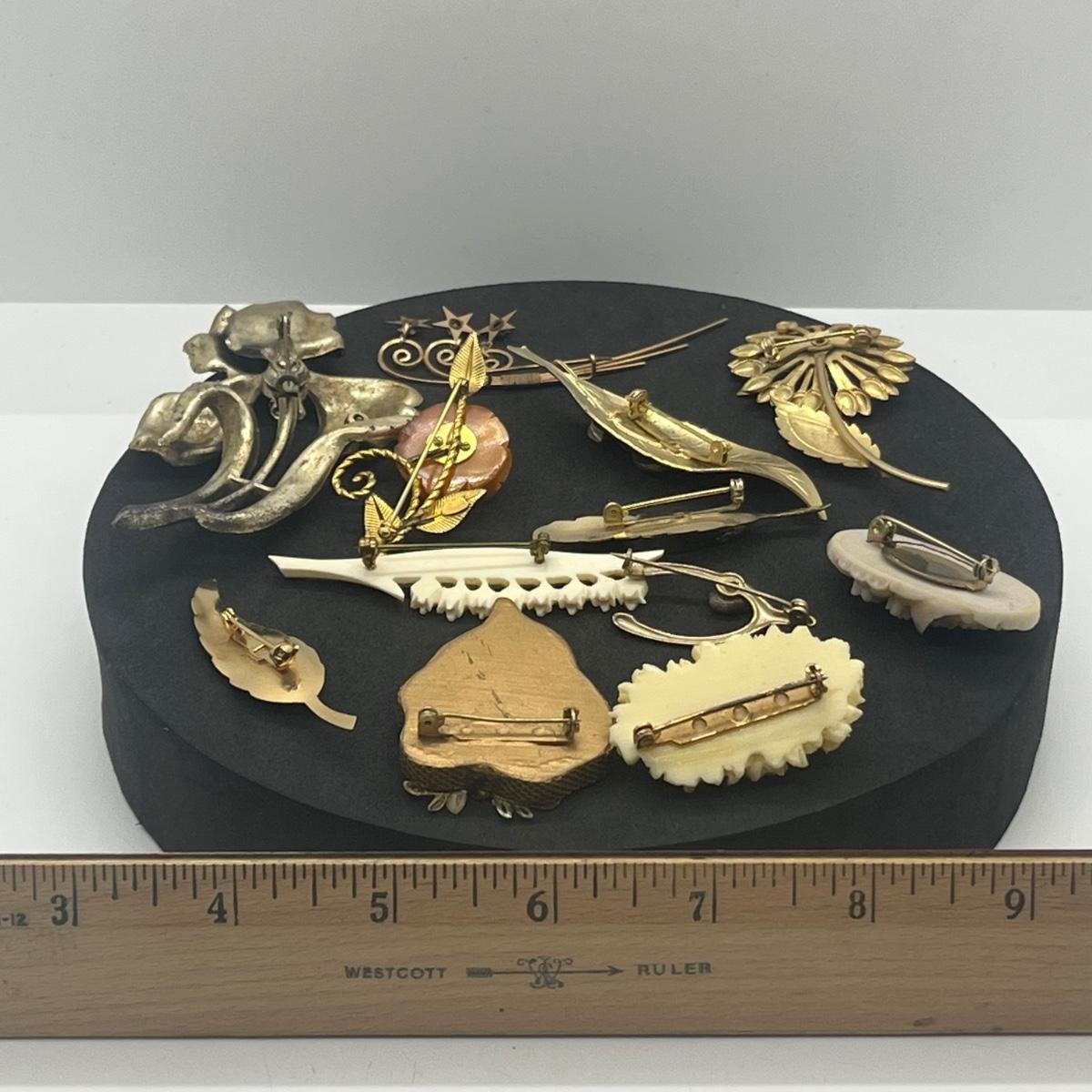 LOT 159J: 12K Gold Filled Rose Pin, Opal Leaf Pin, Wirework Pin and More!